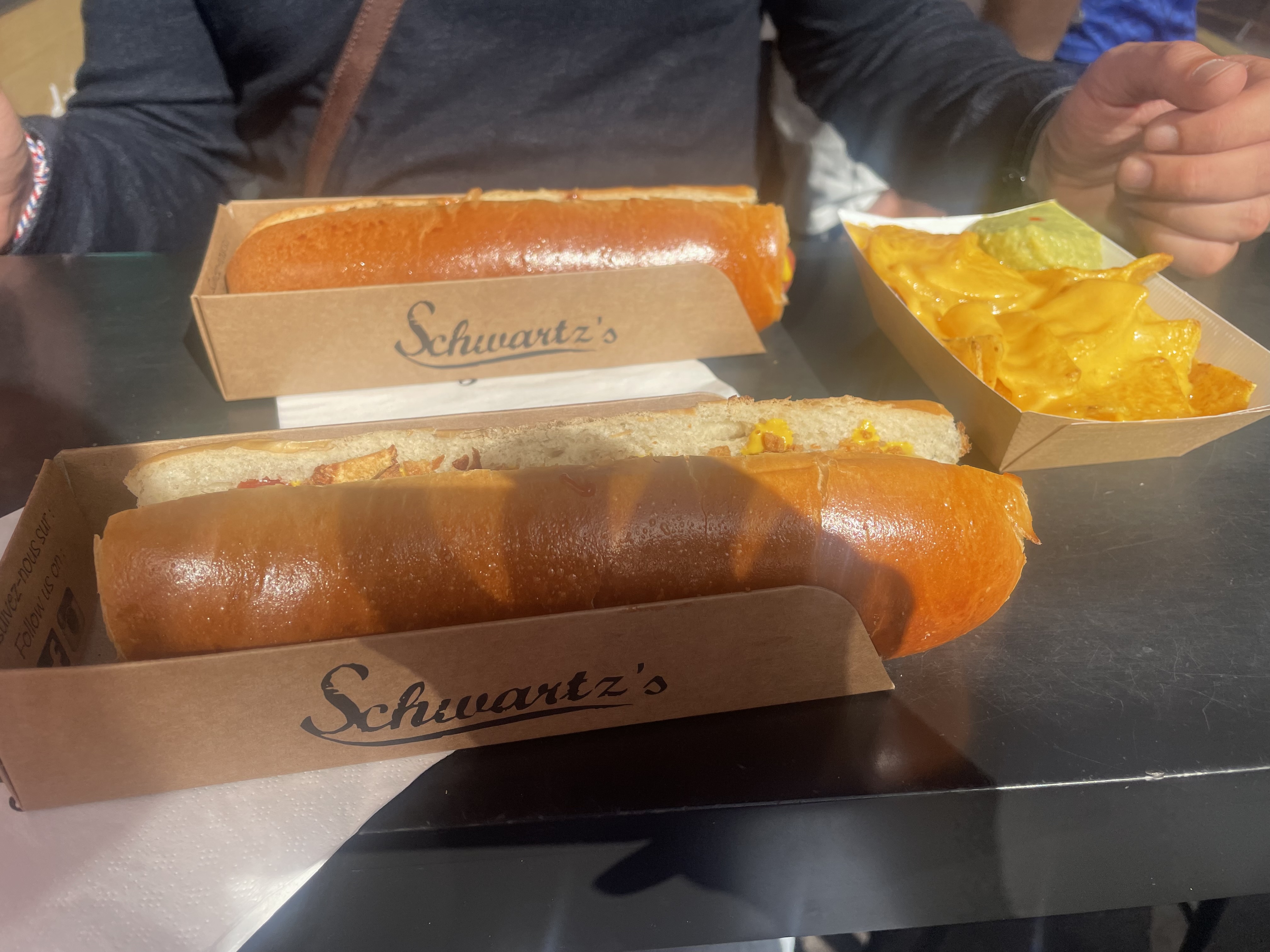 J’aime beaucoup Schwartz deli mais franchement pas du tout apprécié Schwartz hot-dogs. Les saucisses sont dures, condiments et assaisonnements pas assez étudiés, très bon buts en revanche. Ensemble PAS bon! Je ne comprends absolument pas l’engouement des commentaires et la note générale élevée. Soit ces gens n’ont jamais testé un vrai hot-dog new-yorkais (comme gray’s ppy) soit ce sont des fakes 🤔