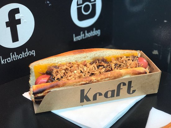 Des hot-dog aux pains moelleux, frais et gourmand. La saucisse est est croquante. La sauce ketchup-mayo, les oignons frits sont frais et craquent sous les dents. Le hot dog est généreusement servi dans un bel emballage en carton. L'équipe tenant ce nouveau magasin est les Schwartz's ! Le pain et la saucisse sont appétissant et croustillant. Niveau rapport qualité/prix, c'est 4,50 euros environ pour un hot dog et 7 euros pour la formule. Deux types de « sides » sont proposés : un coleslaw ou des nachos plein de fromage et de guacamole, tous les deux délicieux. En dessert, ceux du restaurant Schwartz : tarte tatin et panacotta fruits rouge. Tout est fait maison. Le contenant est également bien pratique.Kraft hot-dog est ouvert du lundi au dimanche de midi à minuit sans interruption.