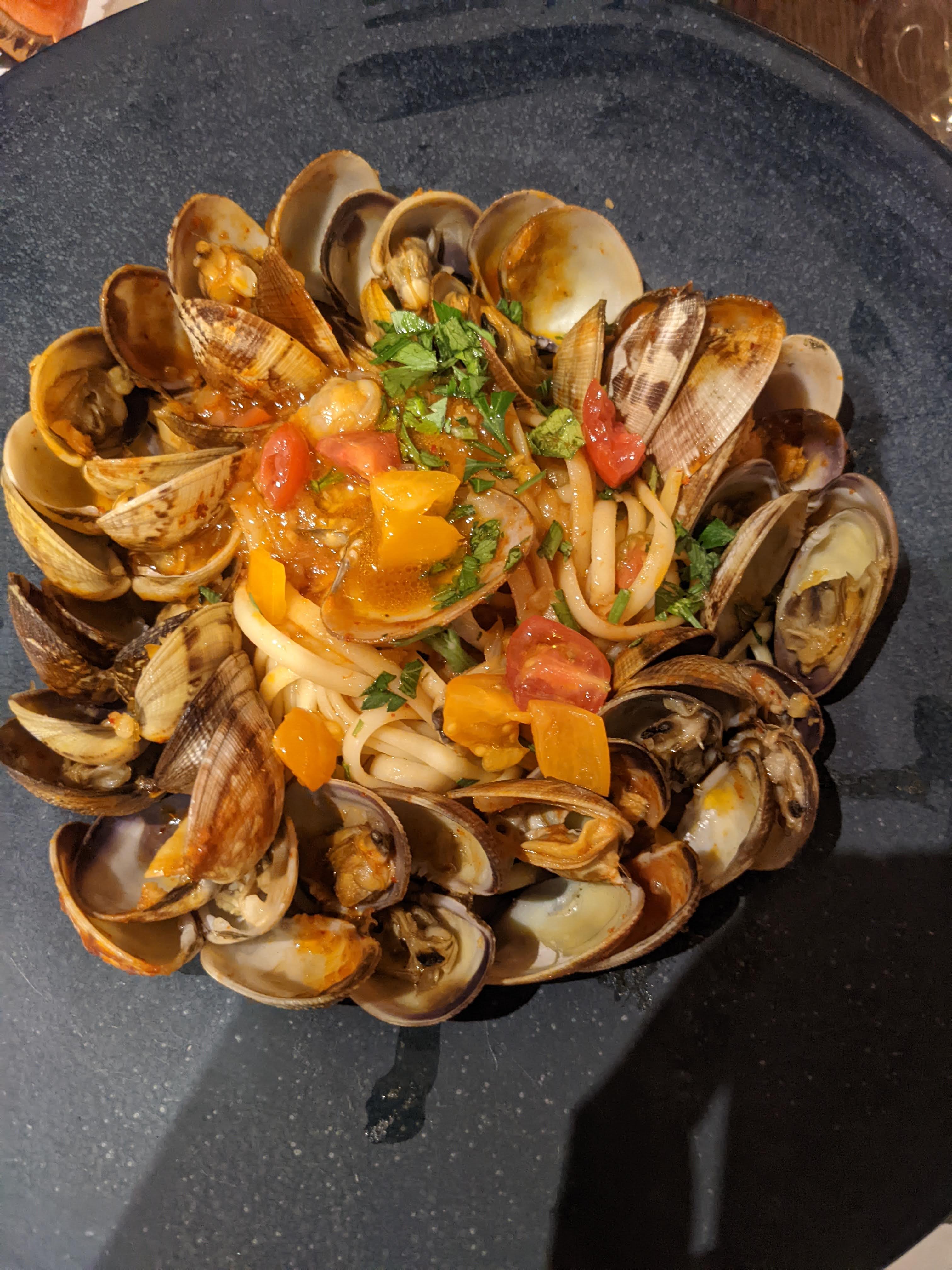 Nous avons pris les linguine langouste (95 € pour deux), je n’ai jamais goûté des pâtes en sauces avec si peu de goût.. Dommage le cadre est sympa. Mais nous avons payé et sommes partis manger ailleurs .