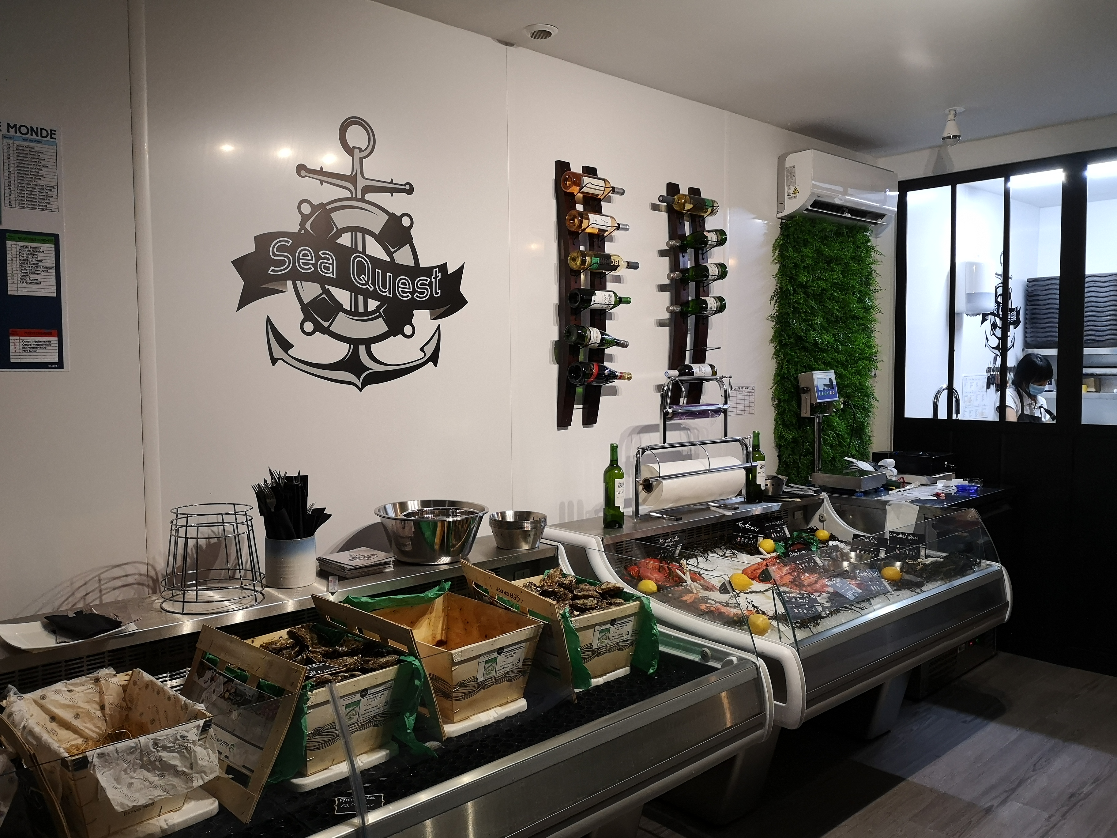 Excellent moment au SeaQuest grâce en 1er lieu à cette superbe terrasse qui surplombe la plage avec une très belle vue sur la mer. Cela coupe également bien du bruit de la circulation. Les tables sont également bien espacées. En arrivant, on voit directement tous les crustacés ce qui est rassurant et à l'avantage de distraire les enfants. Nous avons pris un plateau 'Arène Cros' en modifiant les huîtres par des Gillardeau. Pour moi le top des huîtres. Tout fût excellent, les crevettes, palourdes, moules et araignée de mer. J'ai même osé un dessert et je ne fût pas déçu avec un tiramisu également très bien exécuté Pour conclure un service impeccable, souriant et agréable. Vous pouvez donc vous y rendre les yeux fermés !