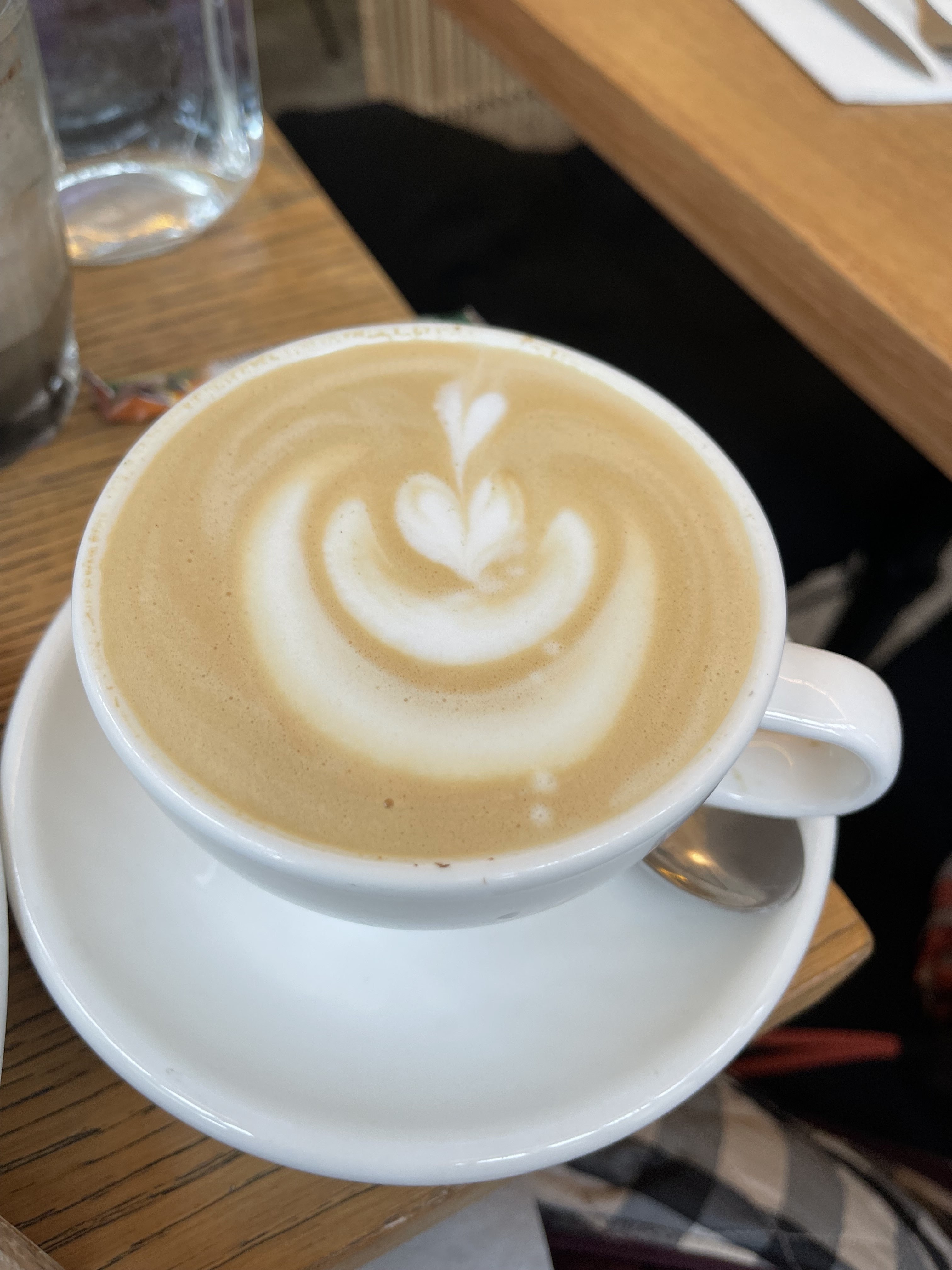 6 € pour un café horrible. Trop de lait, très plat avec une mauvaise mousse. Normalement, l’expérience est meilleure, mais cette fois très mauvaise. Le prix est fou..! Et avec un couvercle en plastique non recyclable.