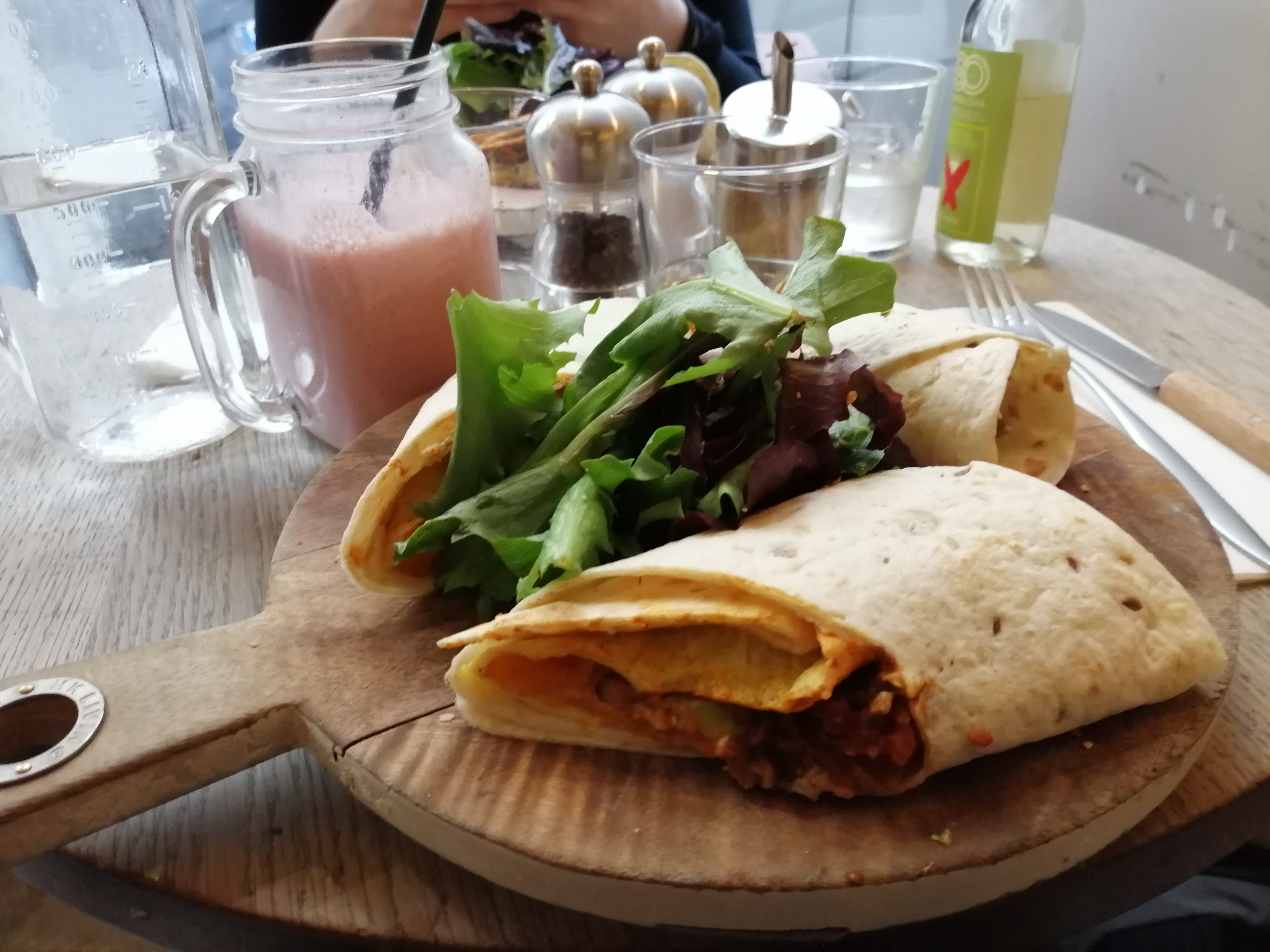 Lieu sympa, bien situé. Dîner un vendredi soir vers 21:30, pas de queue. Service très agréable. Les plats étaient délicieux, copieux (j’ai pris un burrito). En dessert, j’ai pris le banana bread avec son glaçage mascarporne, délicieux. Mention spéciale pour le sans gluten. J’y retournerai.