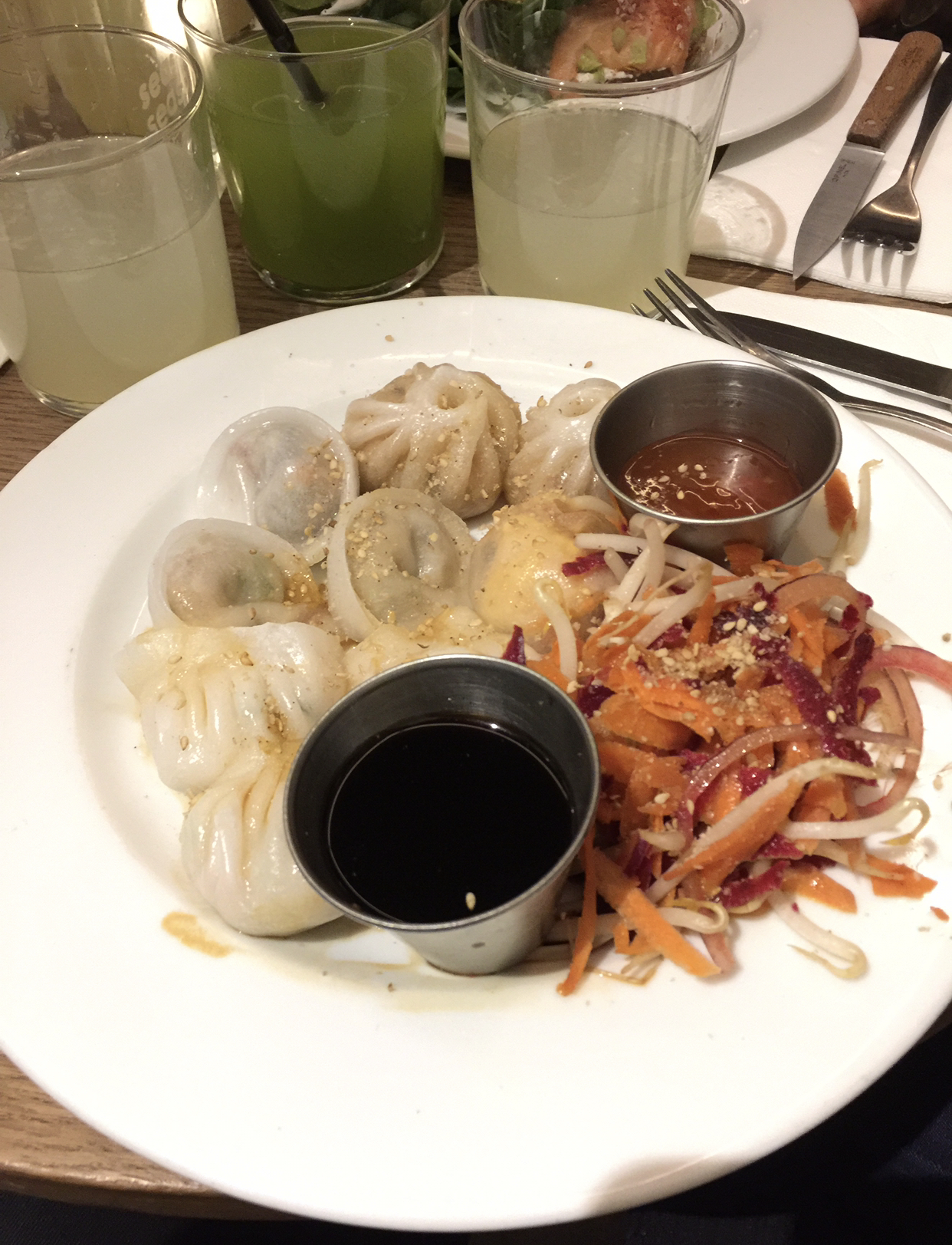 La serveuse est sympa, je n'ai pas attendu par contre la propreté de la vaisselle laisse à désirer, les dim sum sont un peut trop huileux pour moi, la salade saumon mangue gingembre est sans plus. Le saumon a cuit avec l'huile et franchement c'est pas top. J'en suis restée là et n'est pas pris de dessert. La théière était fêlée et le verre d'eau sale. Je n'y retournerai pas