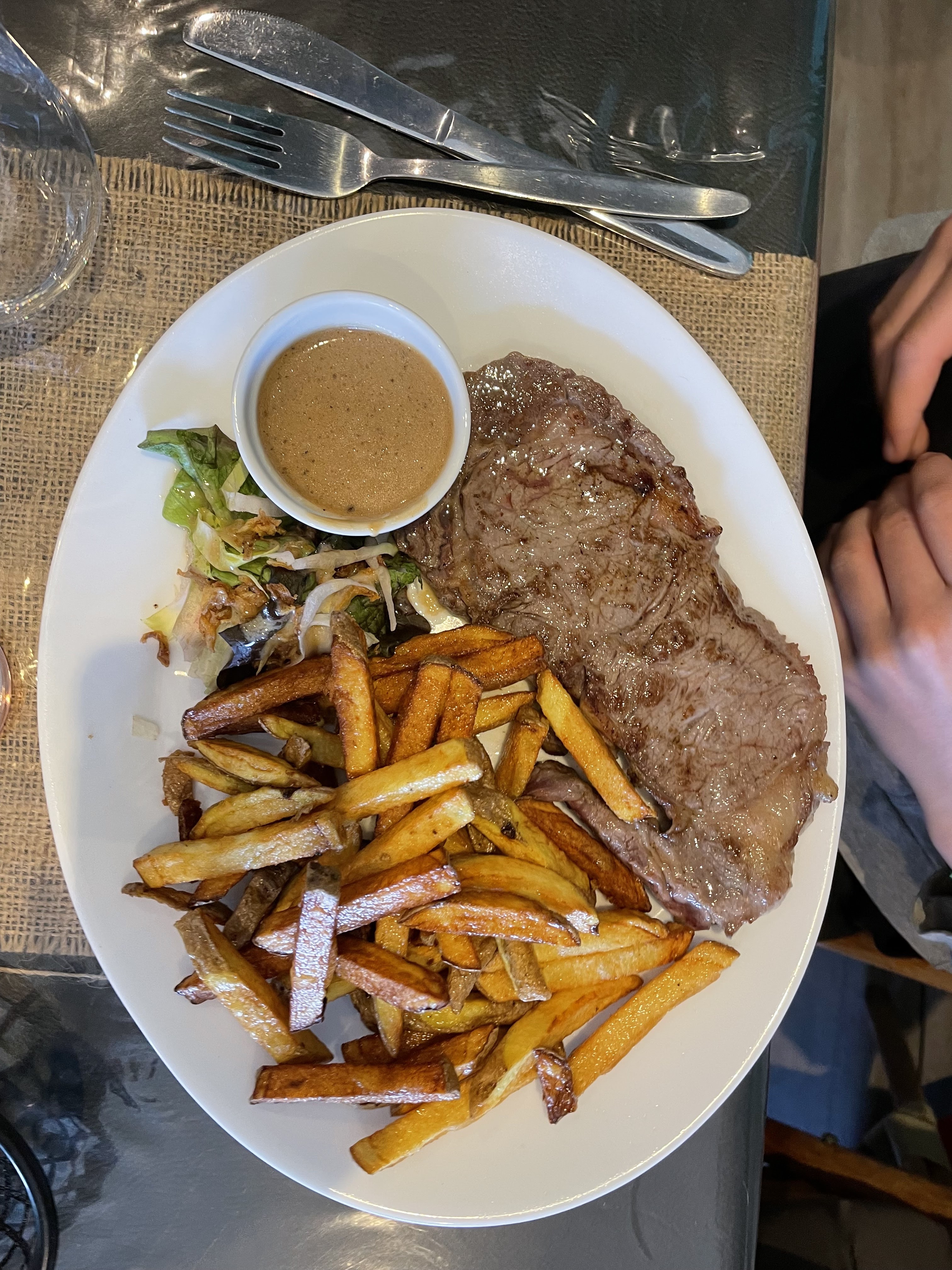 Je suis déçu car mon ressenti concernant ce restaurant ne correspond pas à la note de 4,6 dans les commentaire. La viande était trop cuite et peu gustative. La sauce poivre était insipide et directement dans le fond de l'assiette. Malheureusement, il s'agit d'un restaurant quelconque