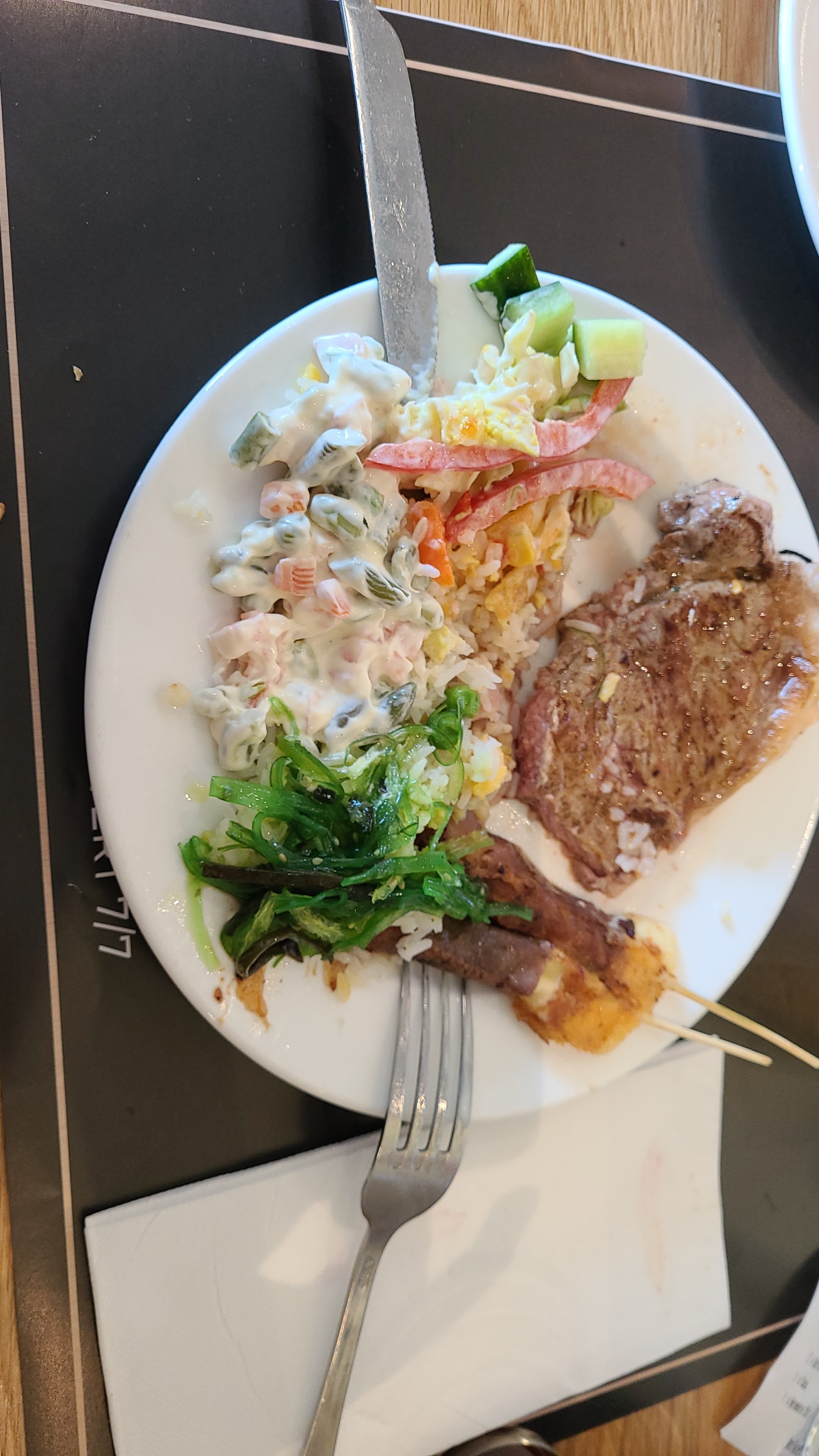 Nourriture et buffet top, tout est très bon 👍🏼 Attention : Samedi soir (arrivée 18h50) : 55 minutes d’attente pour entrer dans le restaurant Aussi, le restaurant est bruyant (entre la musique, les gens qui parlent, les enfants, les anniversaires).