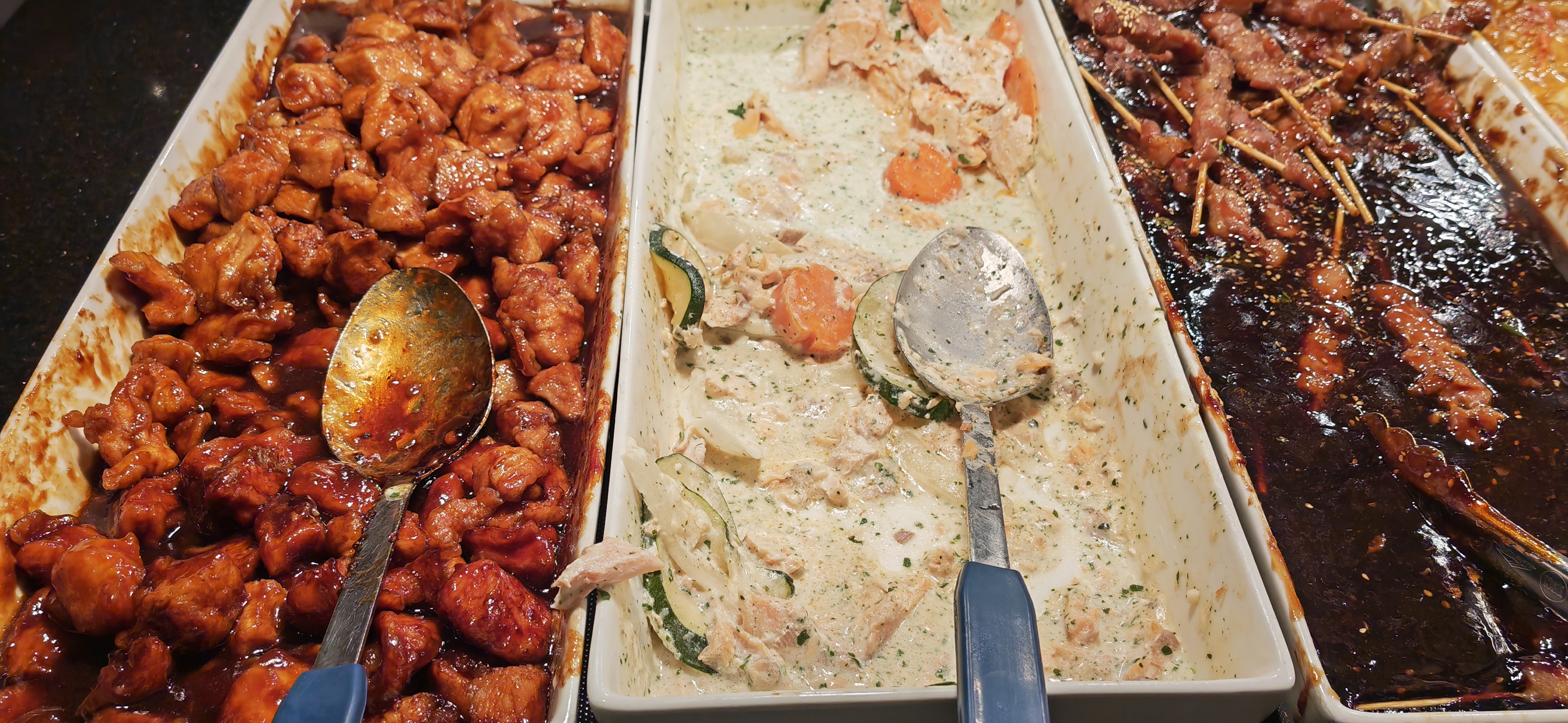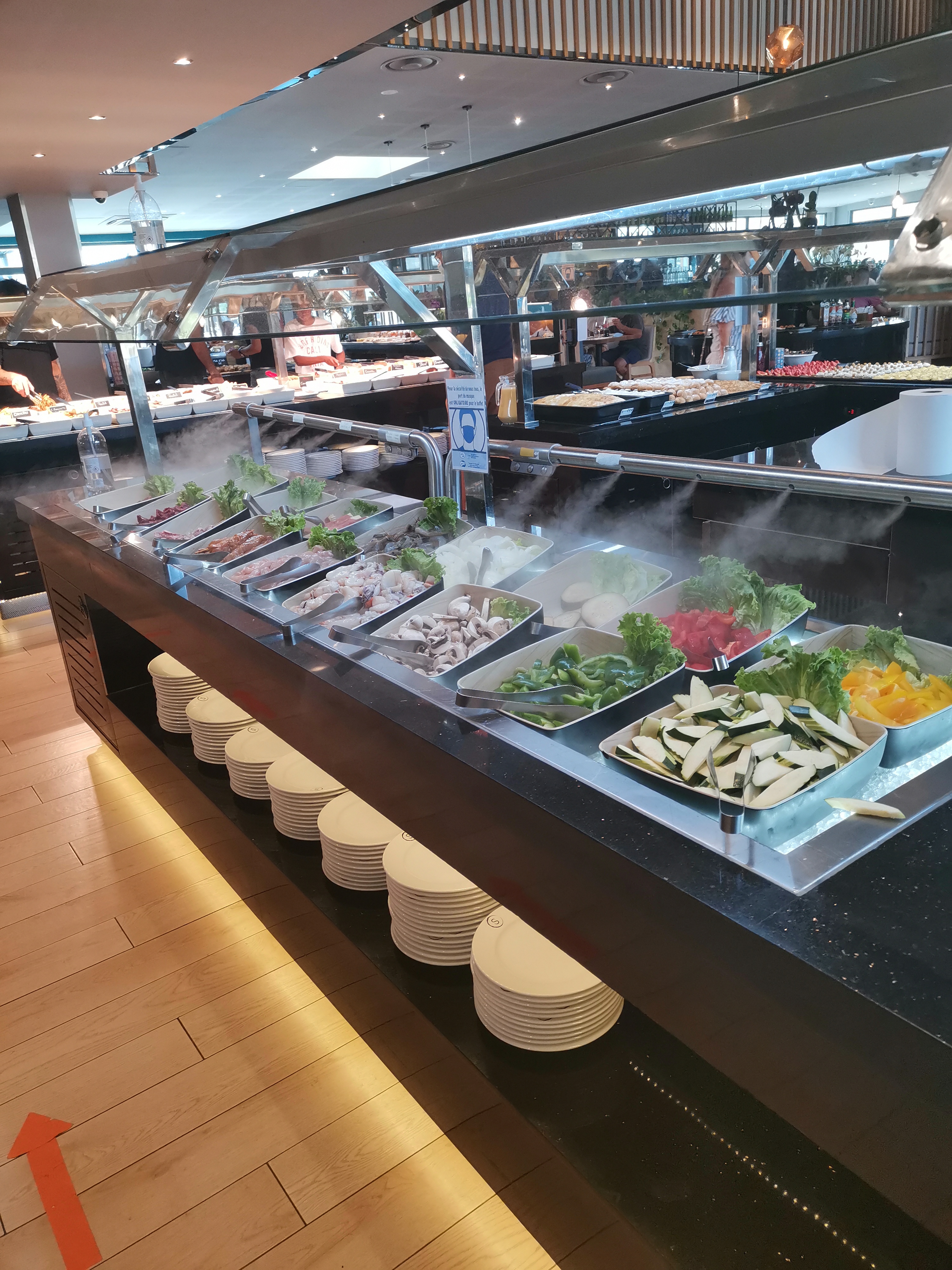 Grand buffet avec beaucoup de choix, il y avait la queue à l’ouverture mais nous avons pu être placé rapidement. Par contre gros problème de propreté qui gâche le repas ! Les piles d’assiettes « propres » ne le sont pas. Taches, restes de nourriture mal nettoyée (problème en cuisine ou du lave vaisselle ?!) mais ça coupe l’appétit. Le sol colle et les chaises sont aussi crépie de reste de sauces… c’est dommage car le cadre, le personnel et la nourriture étaient plus que correct !