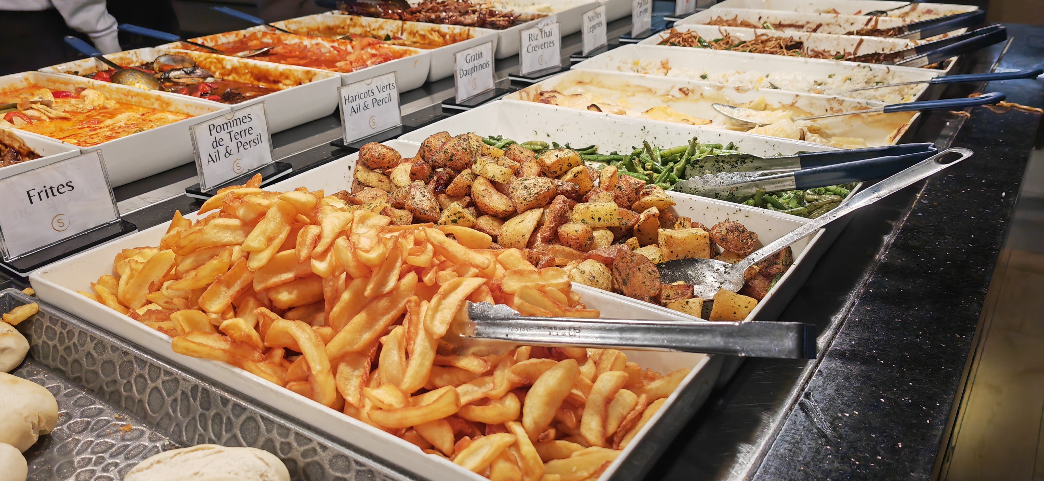 Large choix de mets, buffet a discrétion, très bon, frais. Très demandé.