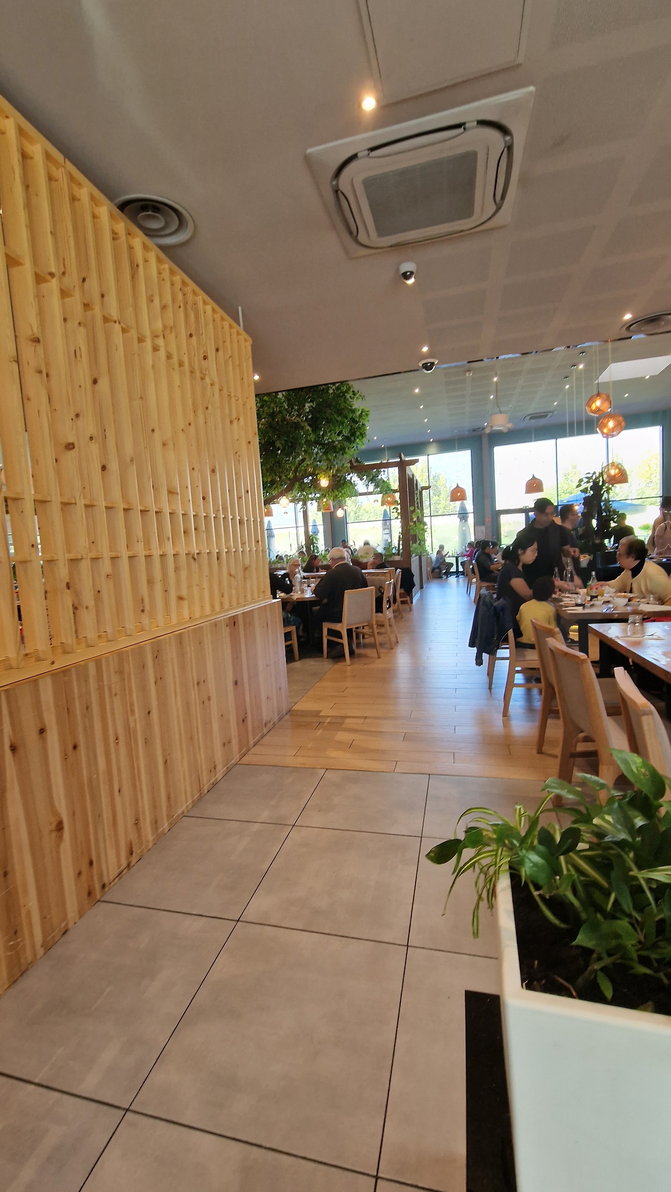 Le restaurant paraît agréable selon l’ambiance par contre le buffet mis à par les sushis rien ne me paraissait frais plus que ça les goût sont très fade par contre le service est très fluide malgré une queue à l’arrivée nous avons pas attendu énormément de temps La cuisine est à revoir