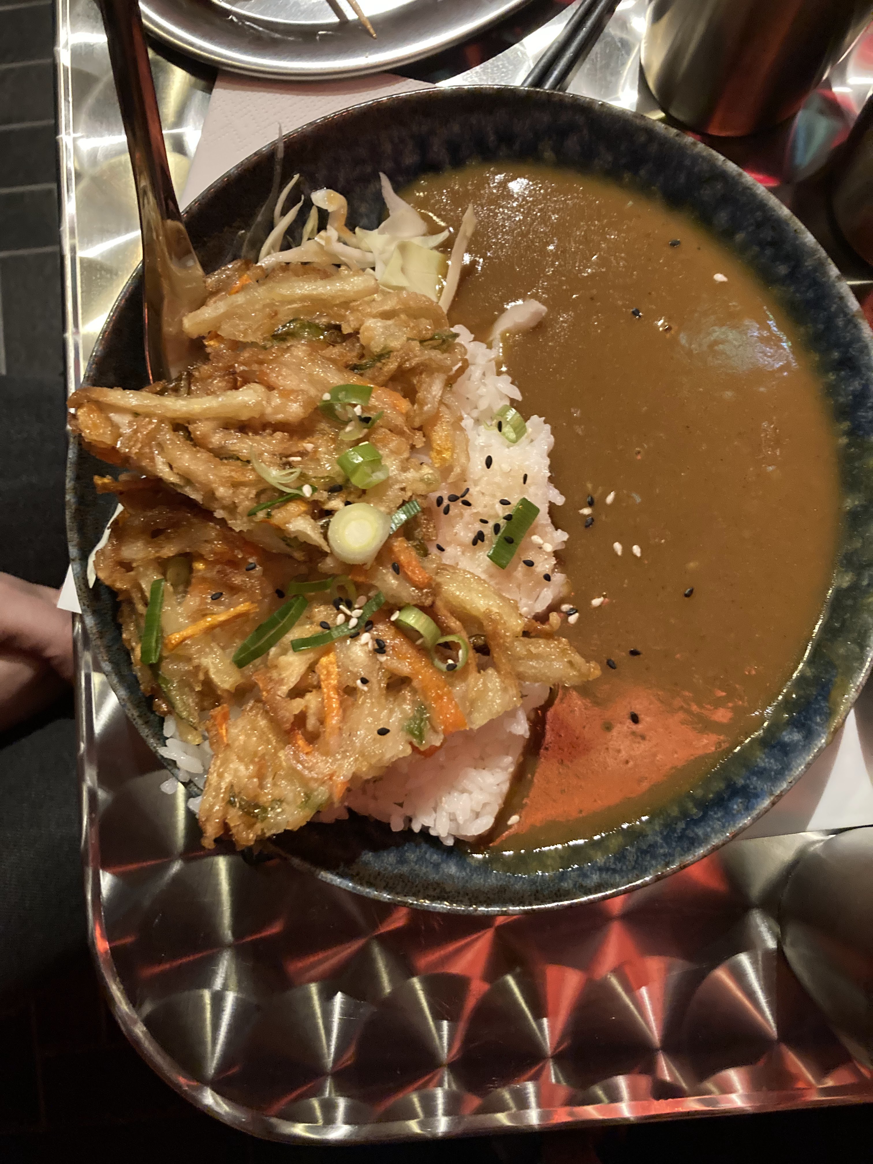 Premier repas chez Sekitan : super expérience! Les brochettes sont excellentes (on aimerait en avoir un peu plus) et le curry bien relevé. Service au top.