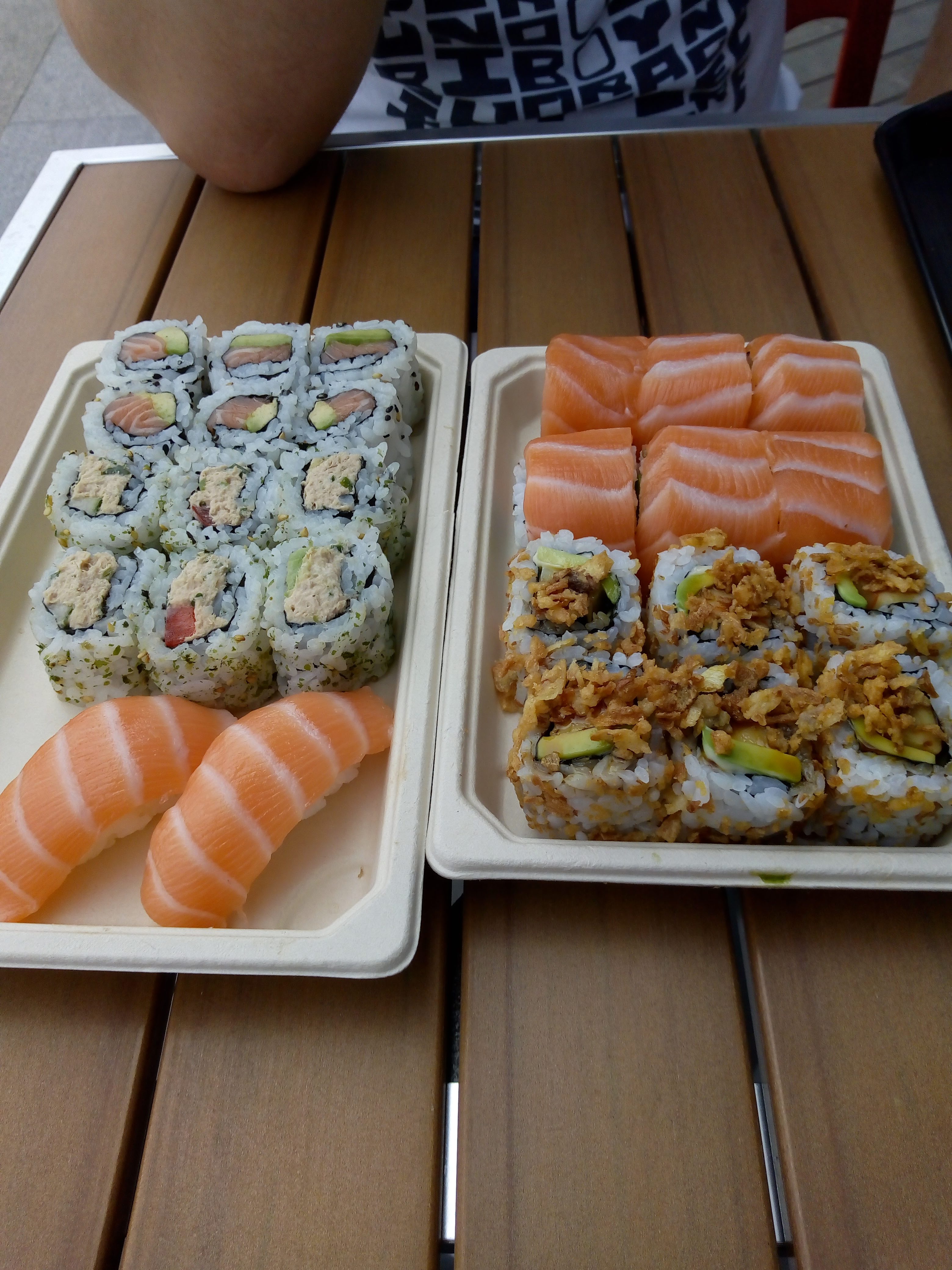 les sushis et maki sont bon, la salade de choux mériterait un peu plus de sauce(pas grand chose) et des mochis en dessert ! 🤤