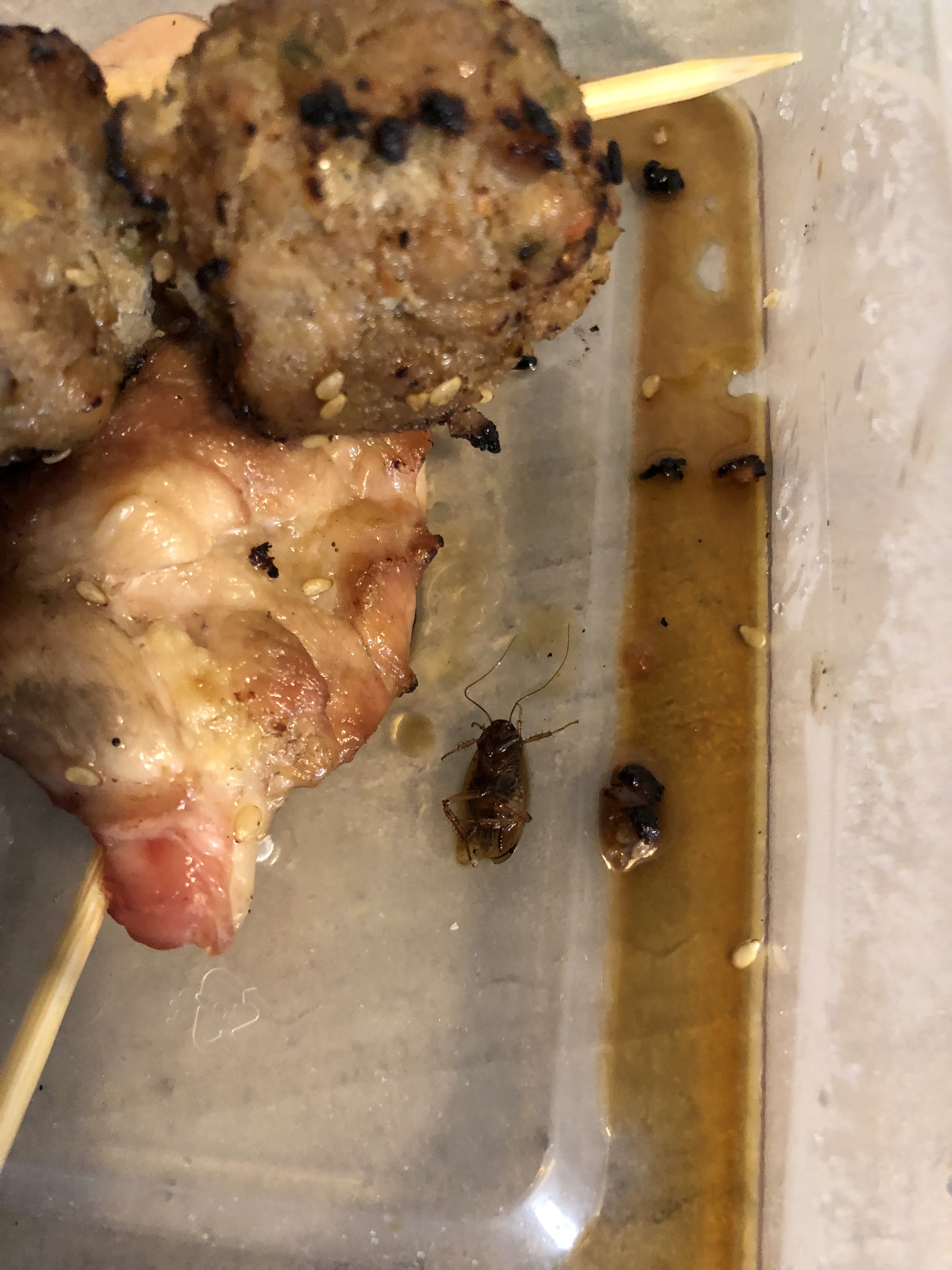 Dévasté et déçu ... Ma famille et moi étions, et je dis bien étions car je n'y remangerai plus jamais, des habitués. La déception est encore, et toujours, plus grande quand il s'agit d'un restaurant que l'on avait l'habitude d'aimer. Je ne parlerai pas de leur pseudo identité japonaise (restaurant se voulant japonais mais proposant des plats chinois et des employés ne parlant pas japonais) car cela ne me dérange pas néanmoins je tiens à le préciser puisque certaines personnes pourraient leur en tenir rigueur. Venons-en au fait, je commande par téléphone et viens chercher ma commande à 22h. Arrivant chez moi, content de pouvoir savourer leurs plats, je commence à manger. Tout se passe bien, le même goût que d'habitude, mis a part les nems qui ont, une fois sur deux, un goût douteux (et je ne préfère pas savoir si j'avais raison ou non, vous comprendrez dans la suite) ... je commence à manger mes brochettes, et c'est à ce moment que je fus dévasté (et ce n'était que le début de mes surprises) : Une jolie blatte/cafard dans mes brochettes (je vous laisse voir les photos). Dégoûté, je prends mes affaires et pars directement en direction de senkichi. J'arrive sur les lieux avec la boite, on me rembourse immédiatement et on m'affirme qu'ils ne comprennent pas comment c'est possible et vous voulez savoir la meilleure ? J'aperçois un cafard sur le sol et sur l'ordinateur. Je fus stupéfait par une telle négligence que je qualifierai de trahison. Ma famille et moi avions une totale confiance dans l'hygiène de ce restaurant qui en plus possède un label de confiance affiché à l'entrée (voir les photos). J'espère que c'était un cas isolé et qu'ils feront le nécessaire cependant je n'y remettrai plus les pieds !
