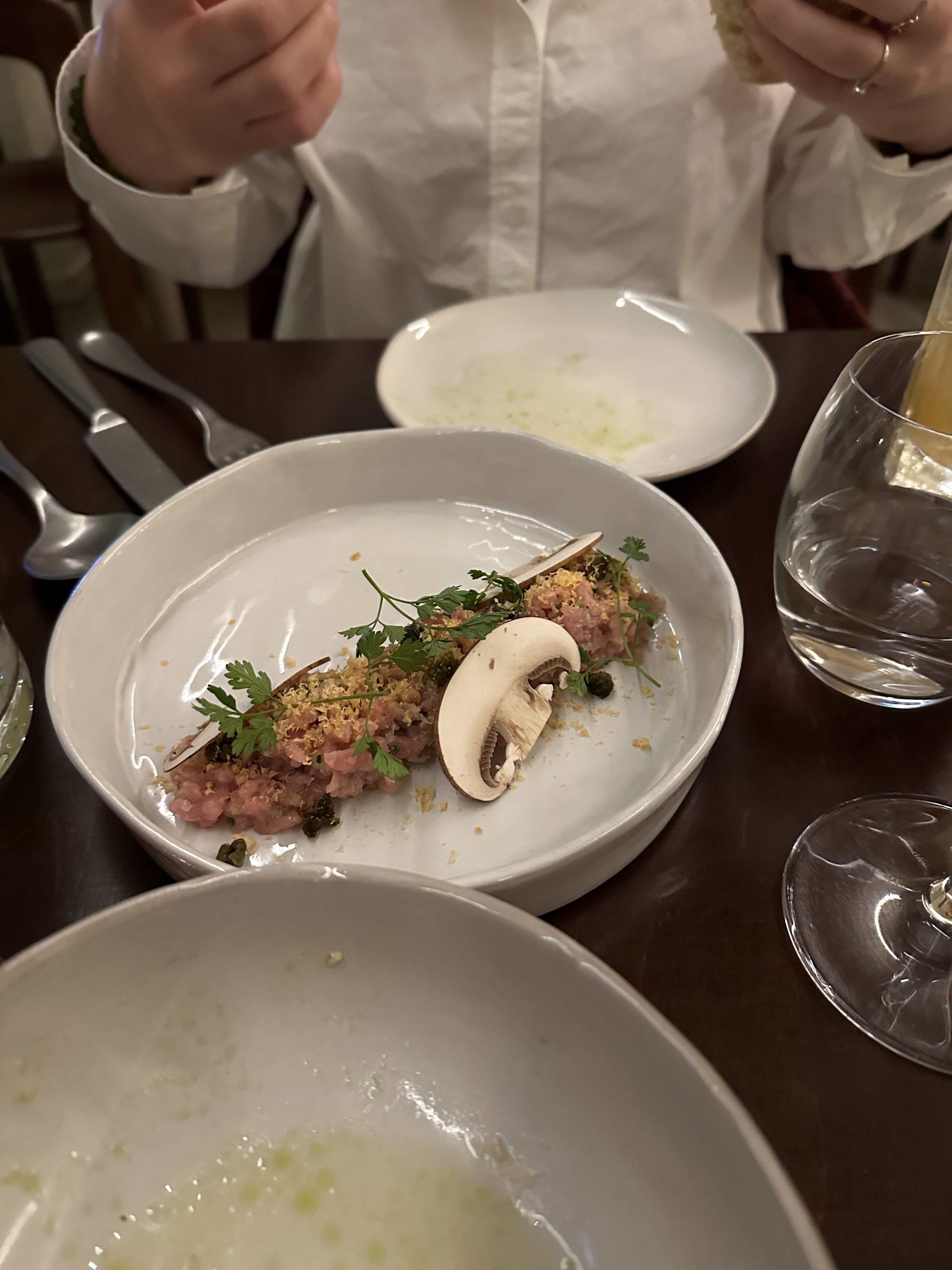 Très belle adresse, la cuisine était parfaite et raffinée, le vin délicieux... un sans faute ! Mention spéciale pour le crudo de thon et le dessert aux olives : un délice ! Le tout dans un cadre très soigné, je recommande vivement.