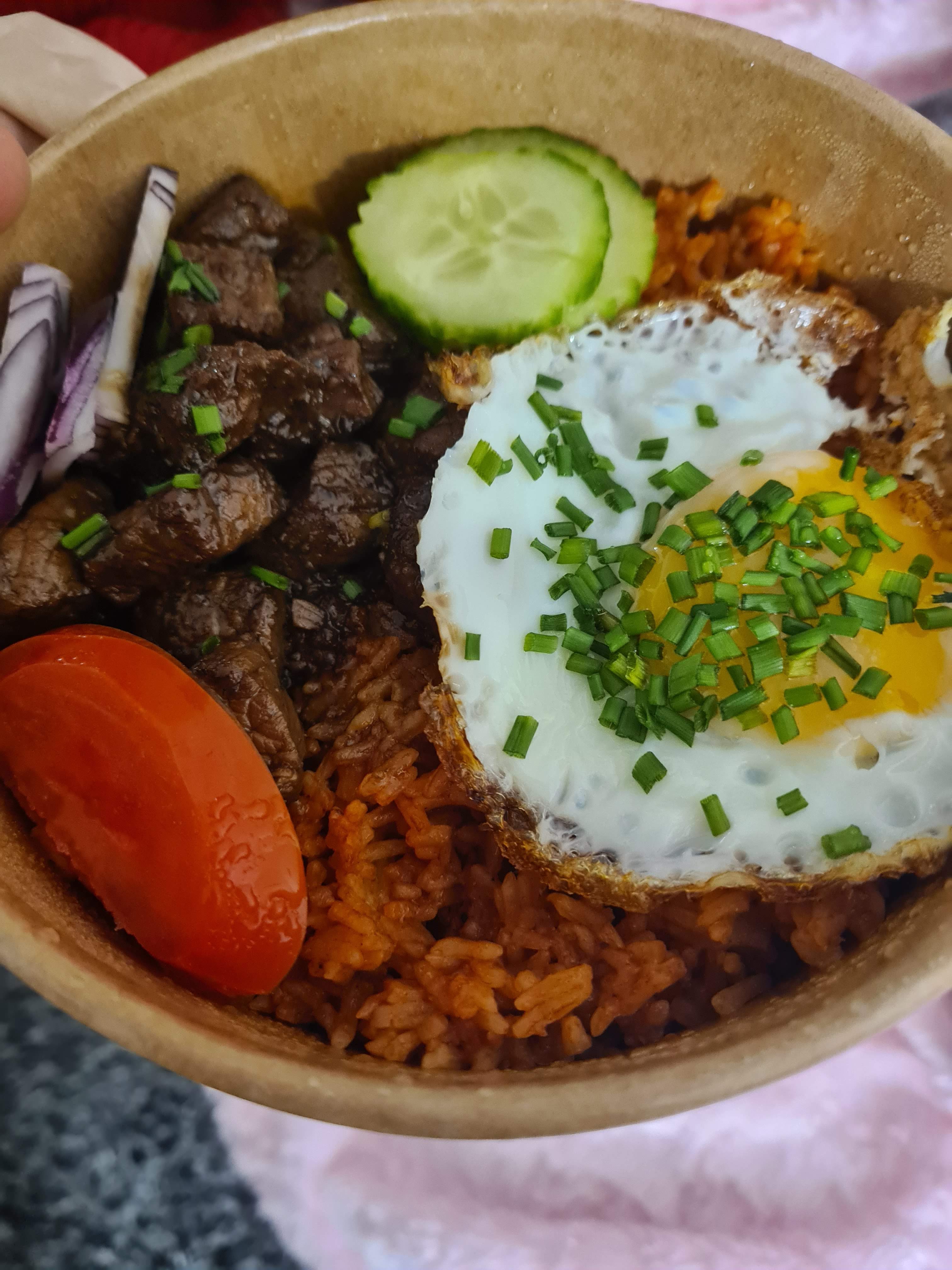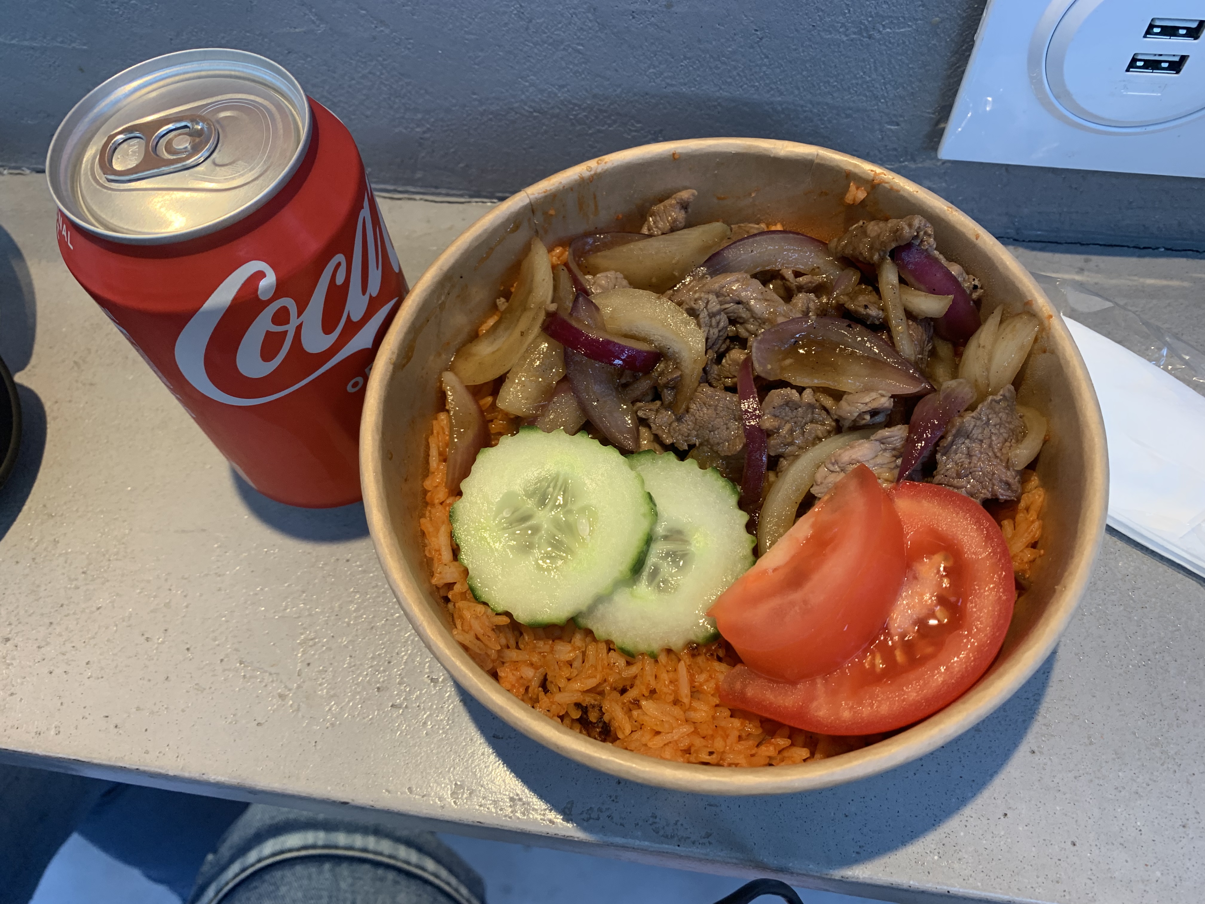 Le plat était trop simple et pas à mon goût. C'est du riz nature à 80%, je suis un peu déçu. L'hygiène a au moins l'air propre.