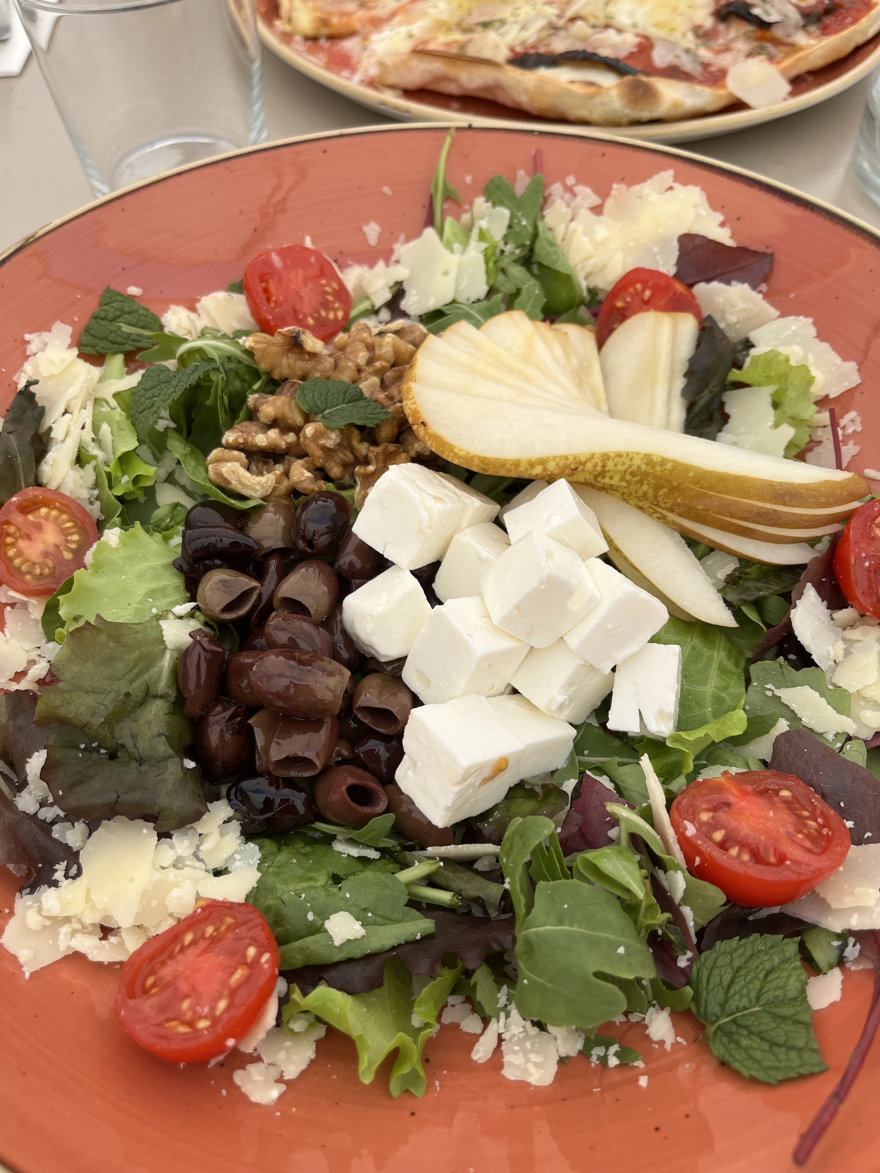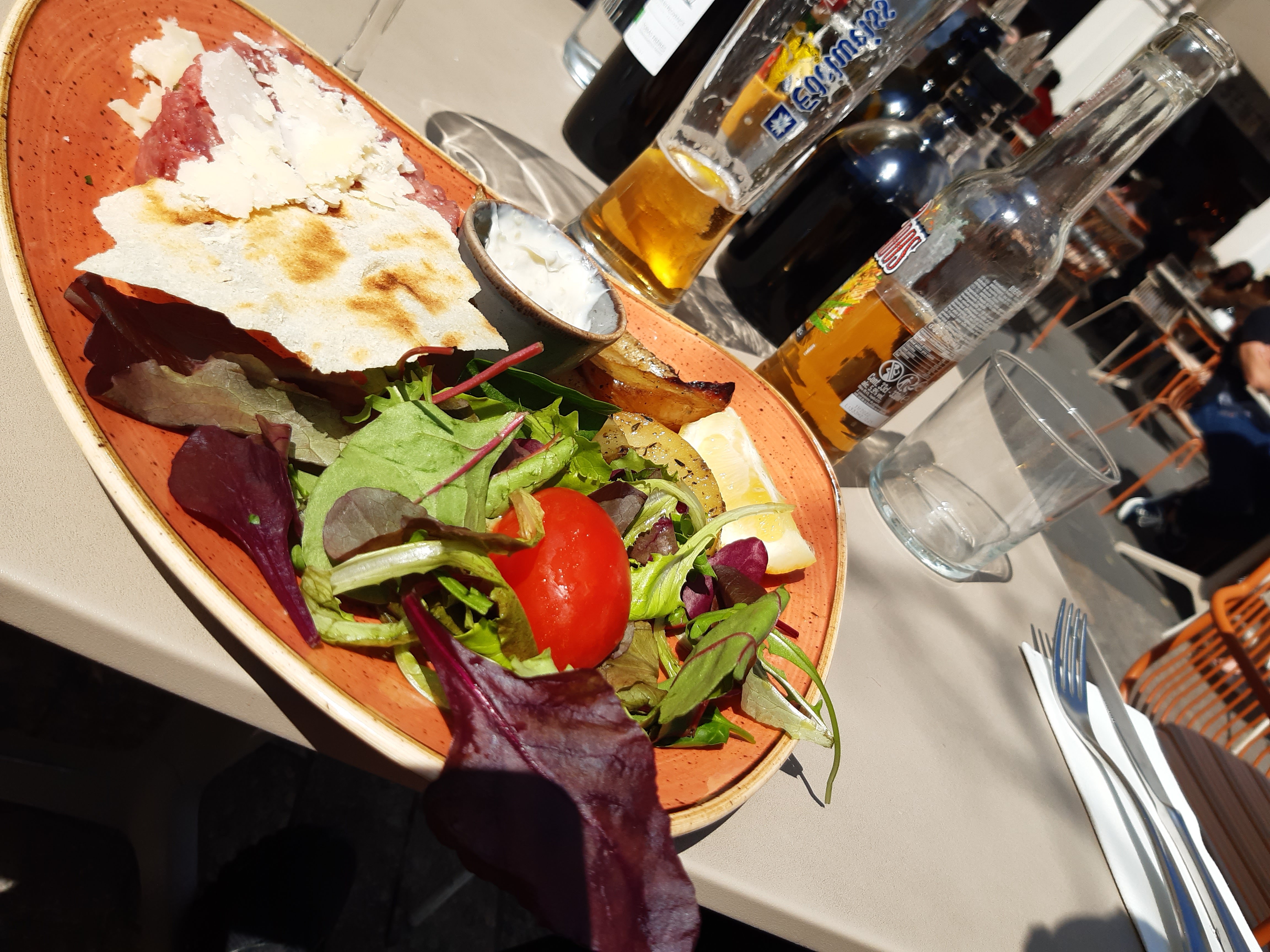 Salade fraîche et pizza fine faîte sur place. Les produits étaient frais et les serveurs étaient serviable et souriant dans l'ensemble. Bonne expérience :)