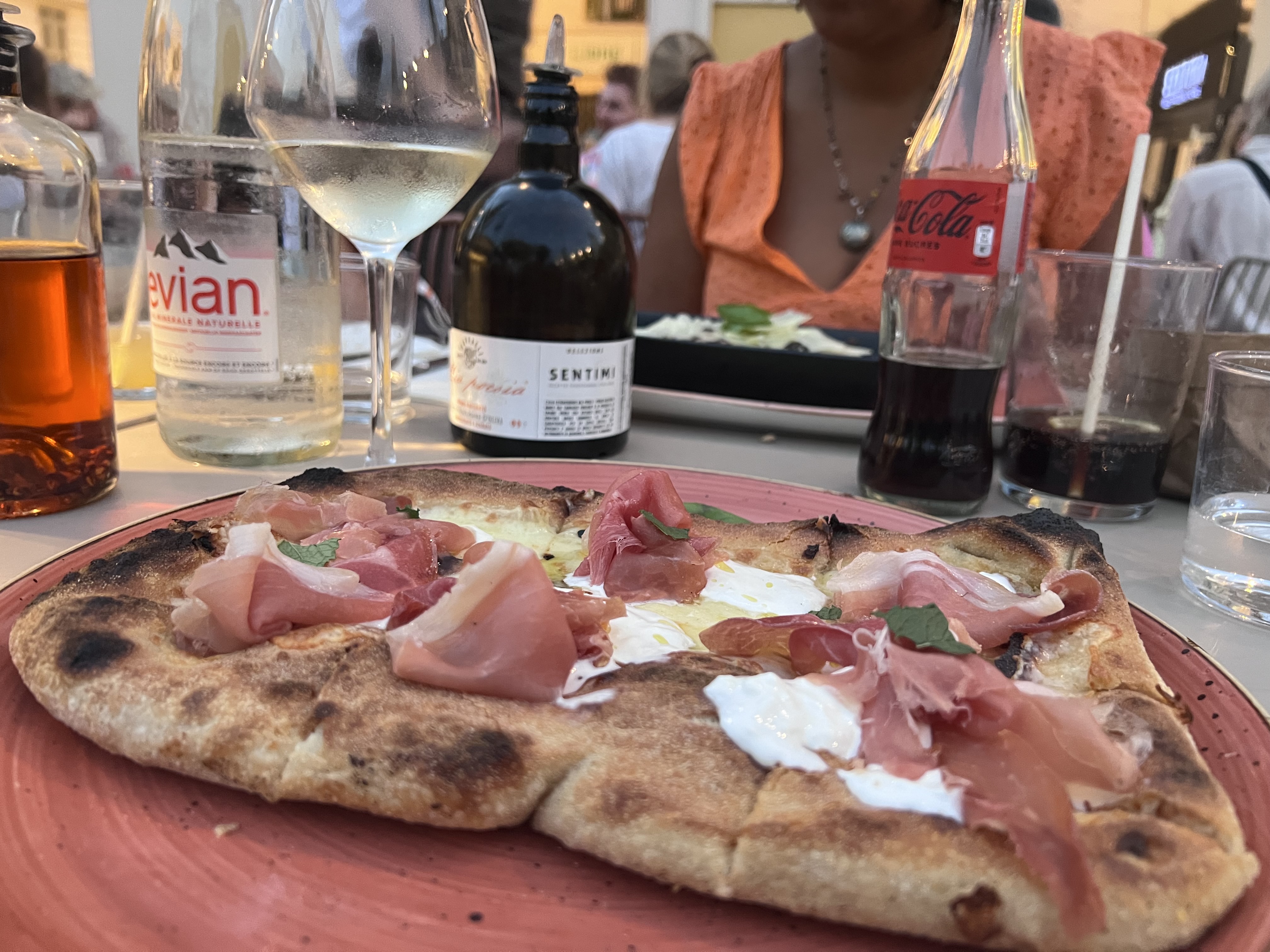 (Dîner le 8 mai 2024, veille d'ascension) Très bonne cuisine italienne oui, grand choix (les végétariens apprecieront !), les pizzas Sentimi (à double fine pâte garnies de Crescenza) sont incroyables. Service moyen par contre, mais rapide, en tout cas ce soir là. Je recommande toutefois quand même ! Ça change des restaurants usuels, on y retournera quand on reviendra à Nice.