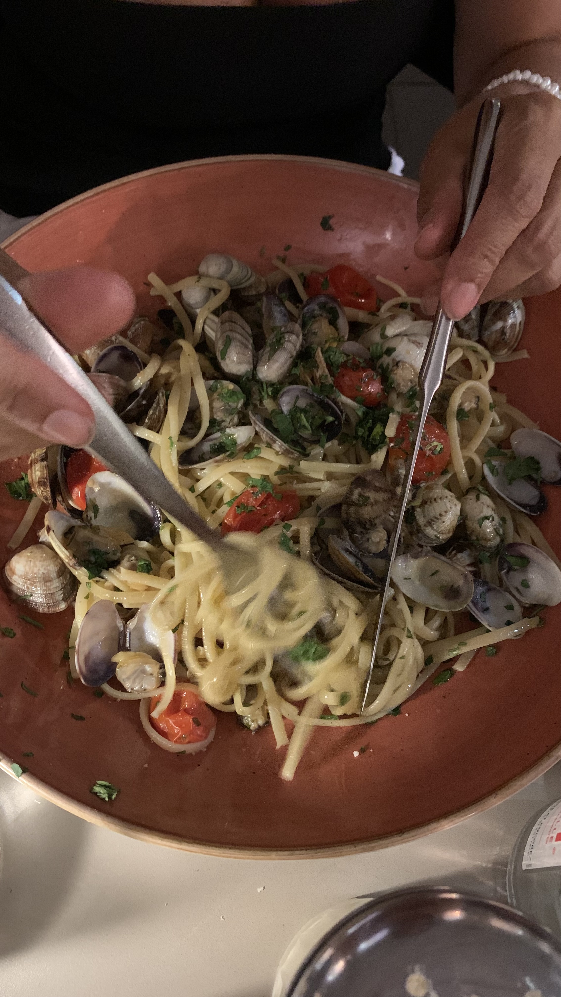 Pizza,spaghetti vongole,tartare, café gourmand et surtout le tiramisu plus que excellent. Monsieur le Directeur très professionnel .se faire servir par Monsieur Nicolas un vrai plaisir, sympathique souriant,d'humeur très agréable.Les 2 heures passées dans ce restaurant nous font oublier nos soucis quotidiens. Je recommande vivement. BRAVO