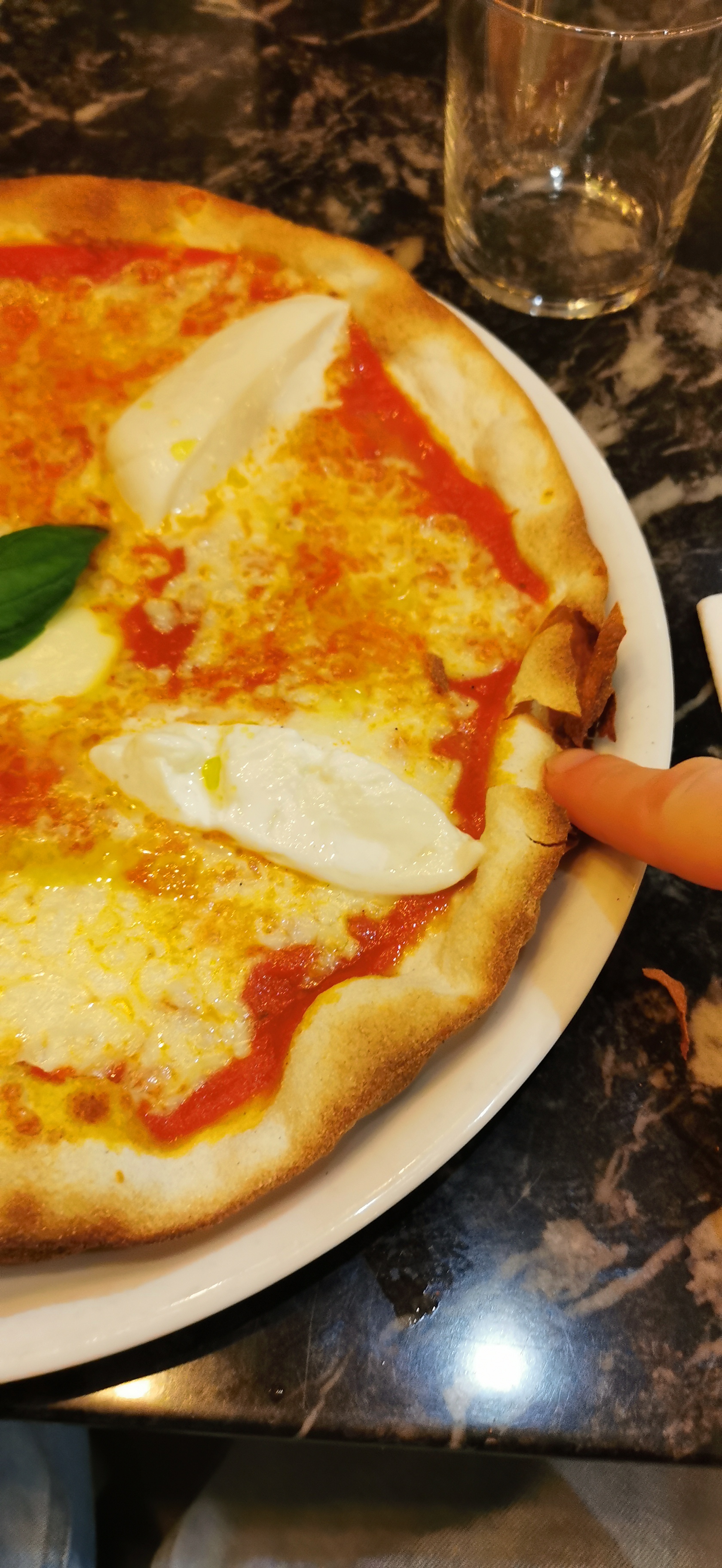 Quand j’ai vu la pizza, je pensais ne jamais la terminer, surtout parce qu’elle était énorme et que je n’avais pas trop faim, mais elle était d’une légèreté incroyable, du coup finalement je n’ai pas de soucis à la terminer heureusement 😝 Le service était impeccable on m’a directement installé, et dès que je cherchais un serveur des yeux on me demandait ce que je voulais, TOP 👍 PS: J’ai pris une TROPEA mais sans fromage