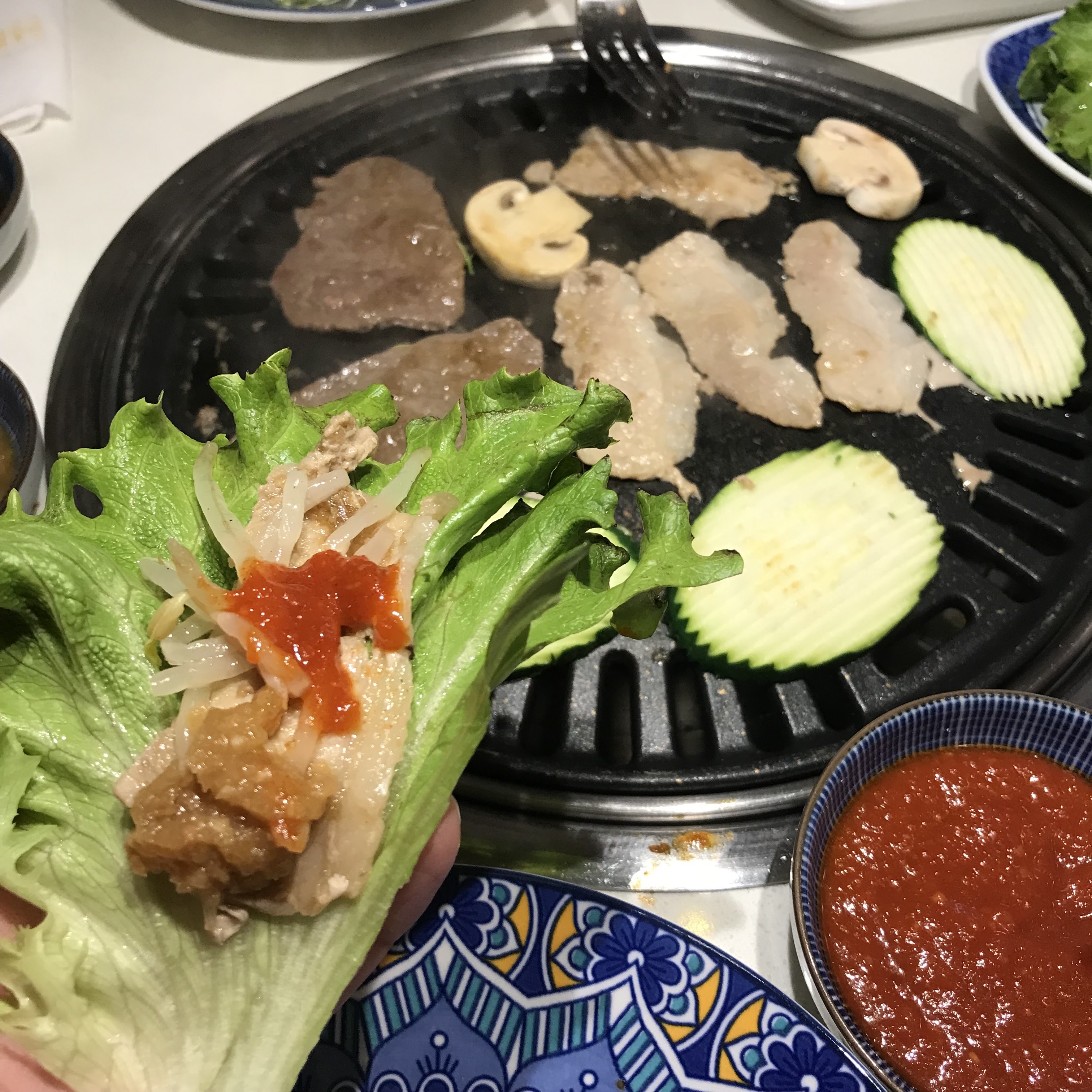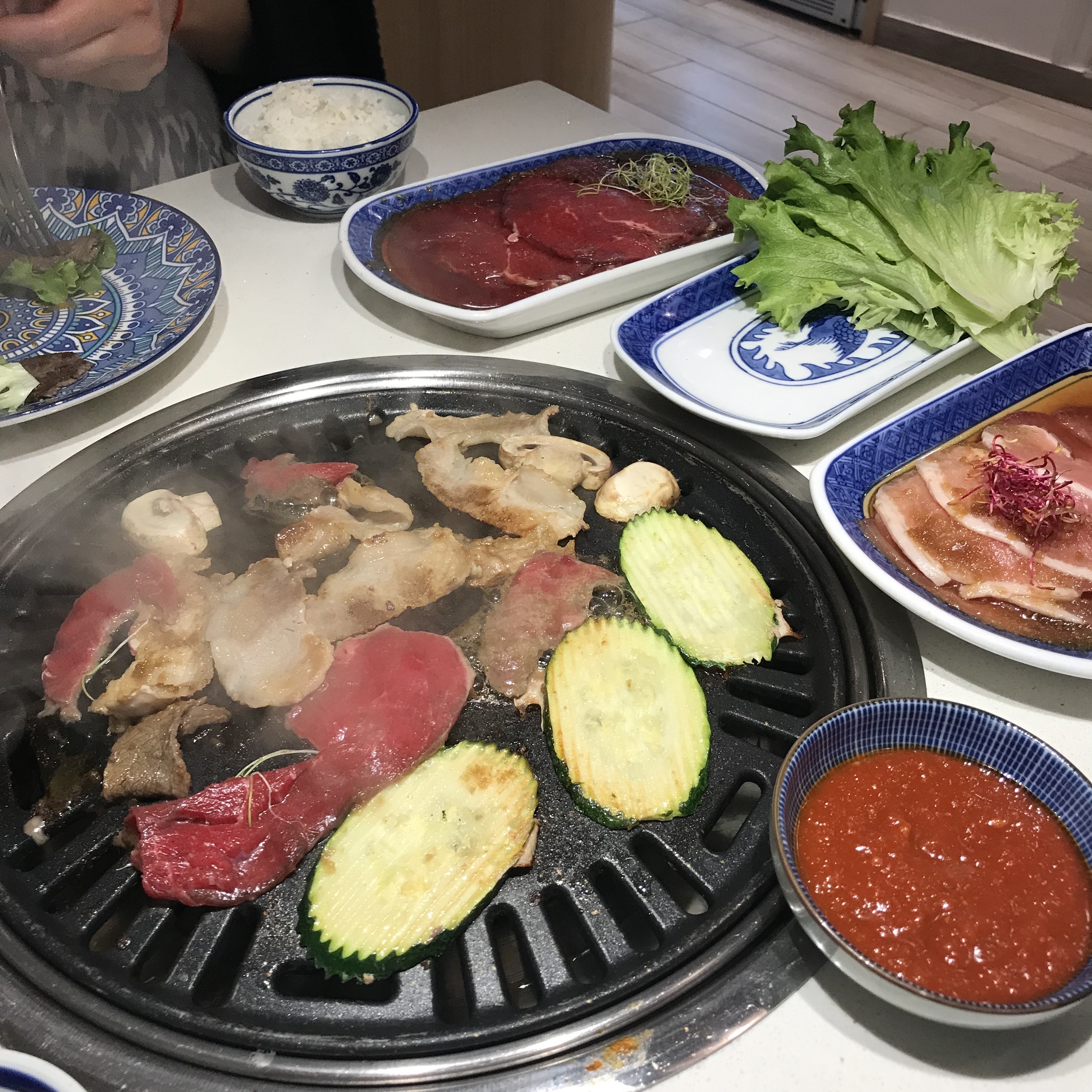Barbecue coréen plutôt bon même si les quantités sont un peu justes pour le prix (quelques légumes ou champignons en plus seraient appréciables). Service gentil. Gros plus : les hottes sont super efficaces et on ne sent pas le graillon en sortant !