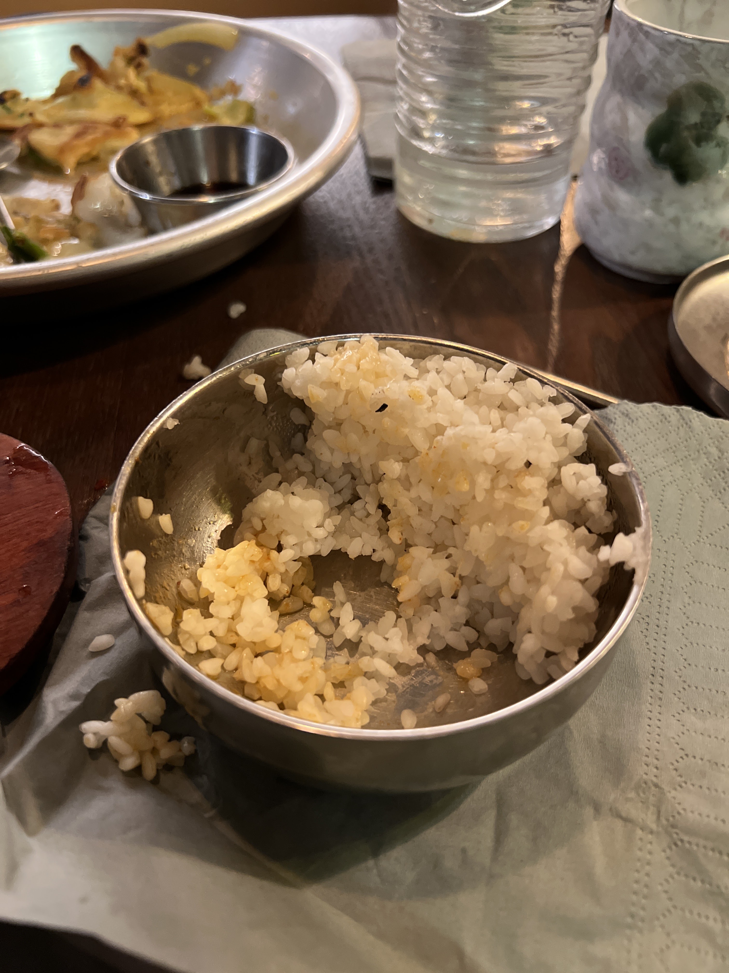 Nous étions ici pendant 3 jours et avons entendu beaucoup de bonnes critiques alors nous sommes venus. Peut-être parce que c'est dimanche et qu'il n'y a que deux personnes qui travaillent ici, nous nous sommes assis et la serveuse a pris la commande des autres avant nous alors que c'est nous qui nous sommes assis en premier. Et nous avons attendu 45 minutes pour que l'eau arrive. Et quand la nourriture est là, mon riz est littéralement cru et la serveuse nous a dit qu'ils n'avaient pas de cuiseur à riz… alors pourquoi vous ouvrez un restaurant coréen sans bon riz… de toute façon, l'attente est longue, nous avons mangé à 8 et l’expérience n’était vraiment pas bonne. Ne venez pas dimanche.