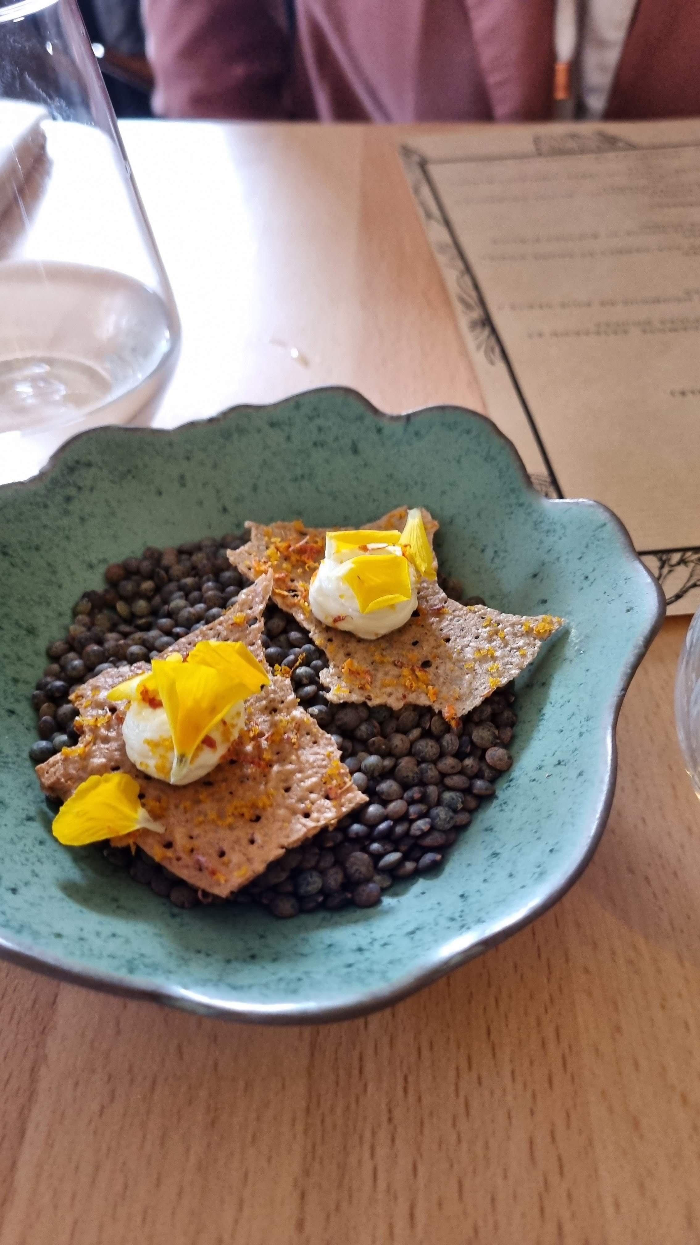 C'était super ! On a tout pris : les 4 propositions végétales et les 4 animales et c'était un ravissement pour les papilles ! Une panoplie de saveurs dans chaque plat, des textures, des couleurs, des senteurs... Un vrai feu d'artifice sensoriel. La qualité des produits est remarquable, le circuit court est privilégié visiblement. Les surprises sont au rendez vous aussi, j'ai adoré le labneh et sa tapenade d'olives et figues en dessert. En salle, les 2 garçons hyper actifs présentent les plats sans accrocher, avec passion et bonne humeur. Les vins sont maitrisés, locaux (bravo !). J'ai vu toute la soirée la cheffe Lucie et ses 3 filles virevolter en cuisine, Dieu que ça bosse ! Un regret : à défaut de venir prendre le pouls de la clientèle en salle, et même s'il semblait y avoir un peu d'électricité hier soir, Lucie pourrait adresser un petit au revoir ou merci en nous regardant régler la note... (150€ : 2 menus, 2 apéros, 2 verres de vin et 2 cafés)