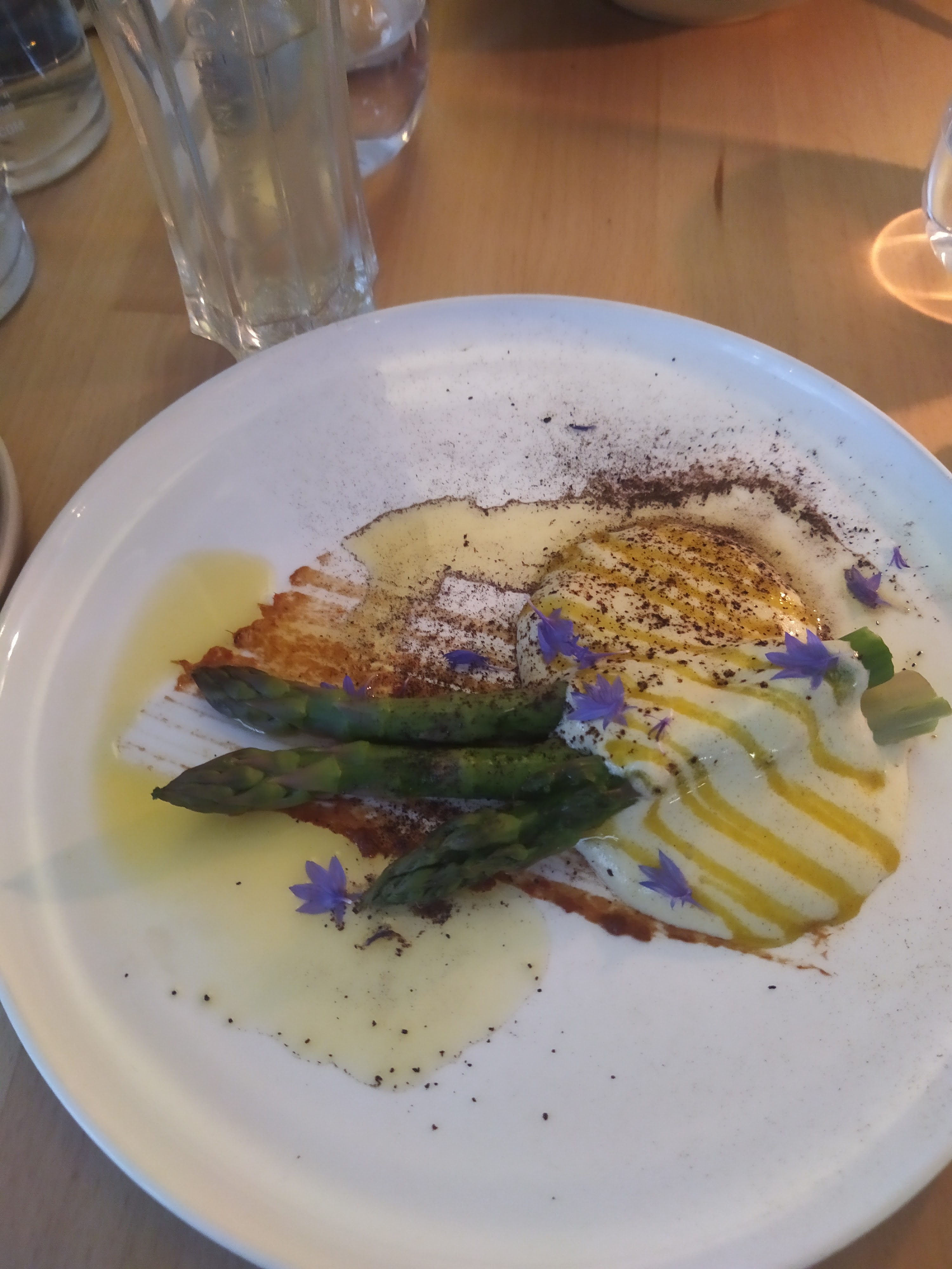 1ère visite pour deux le midi séquences animales : Entrée du menu plutôt positive au niveau découverte des saveurs le tout équilibré... ça s’est gâté au plat principal :tranche de veau froide un peu épaisse dure impossible à couper avec un couteau à beurre à bout rond et fourchette design tordue .asperges à peine cuites sauce orange ne se mariant pas du tout avec câpres et moutarde. Dessert : 3 fromages blancs et autour trop de choses ne se mariant pas ensemble ( sureau calamata citron noir zahtar pétales de roses en abondance) Pas de retour avec la cheffe restée en cuisine...
