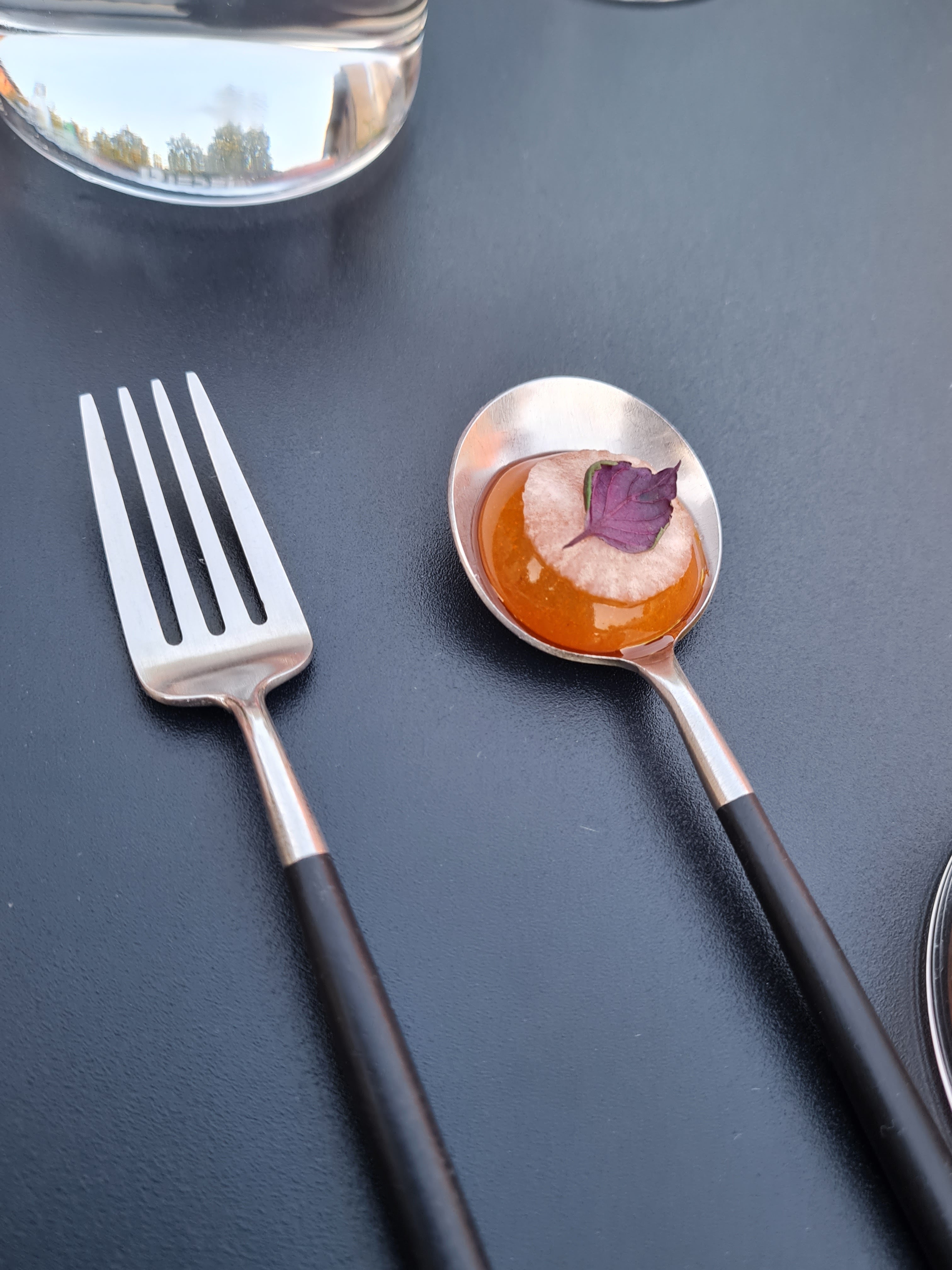 Quelle surprise! C'est le thème du menu. On se laisse guider, après avoir dit si on a des allergies ou pas. On y a mangé des plats mémorables, ils resteront gravés, là 💆