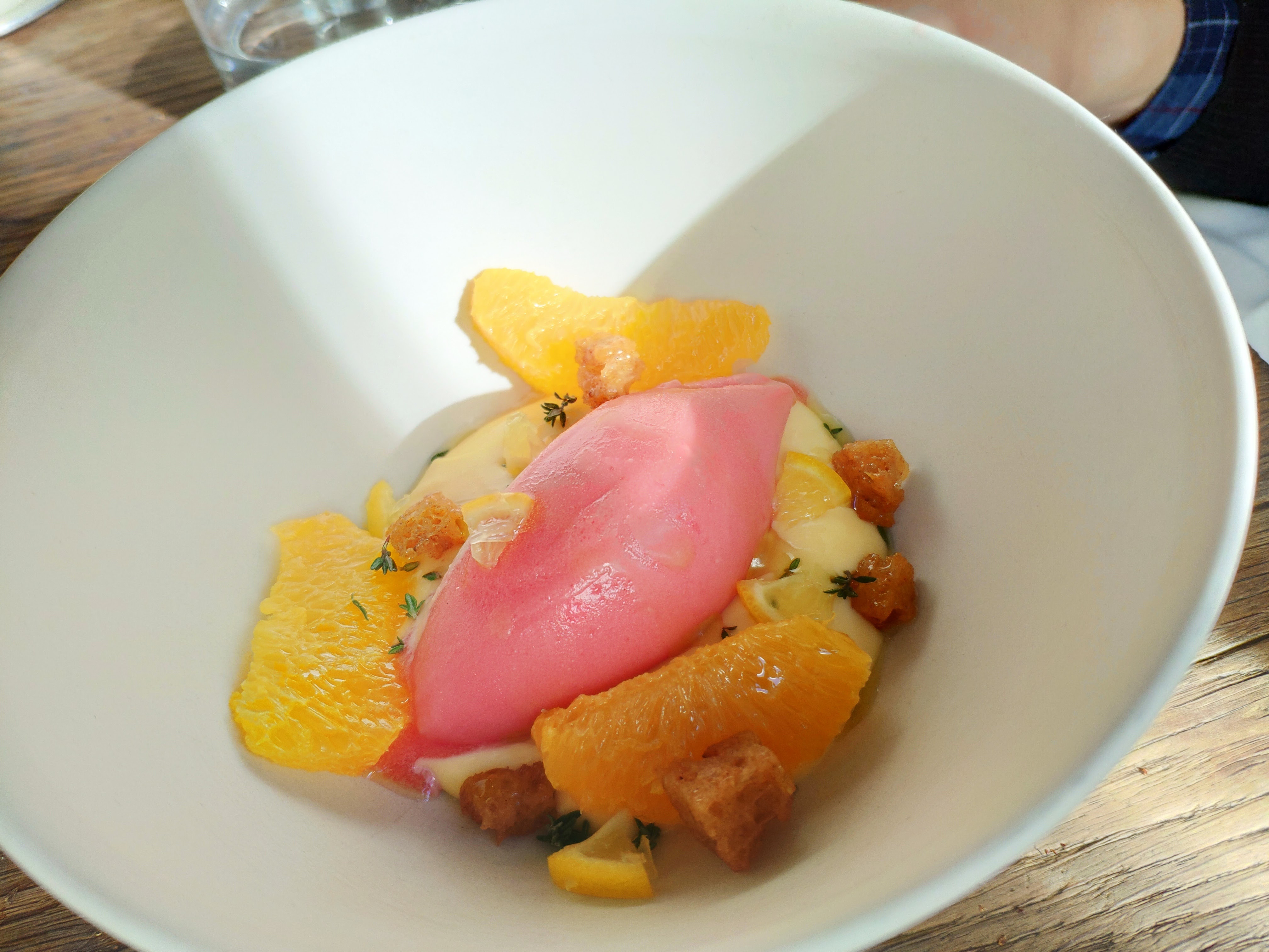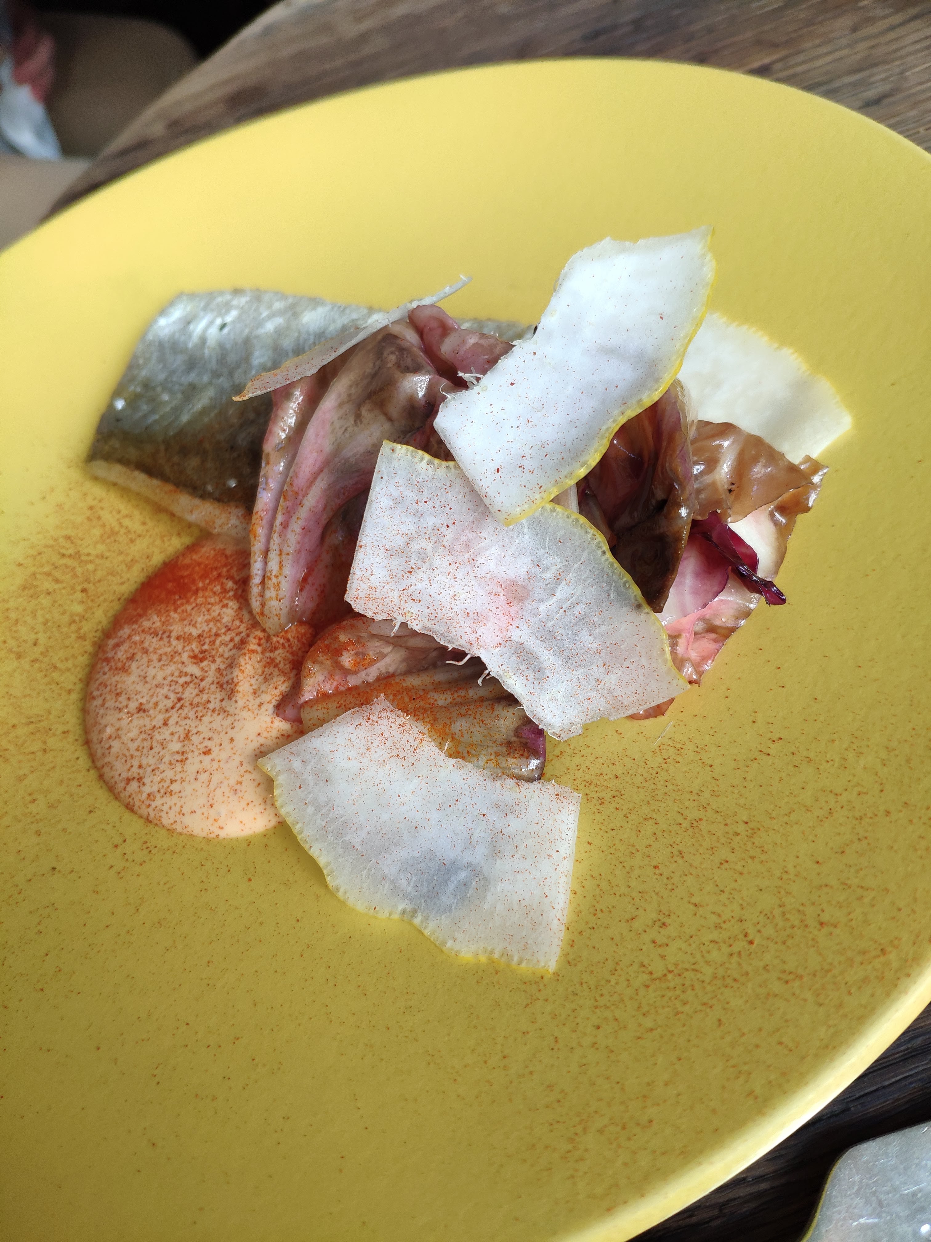 Mouais... le menu déjeuner bien qu'à prix accessible, n'était pas à la hauteur : peu de saveur, une cuisine assez linéaire et neutre. Les cuissons et la technique étaient parfaites mais on regrette un manque de franchise et de relief dans cette cuisine somme toute très sage.