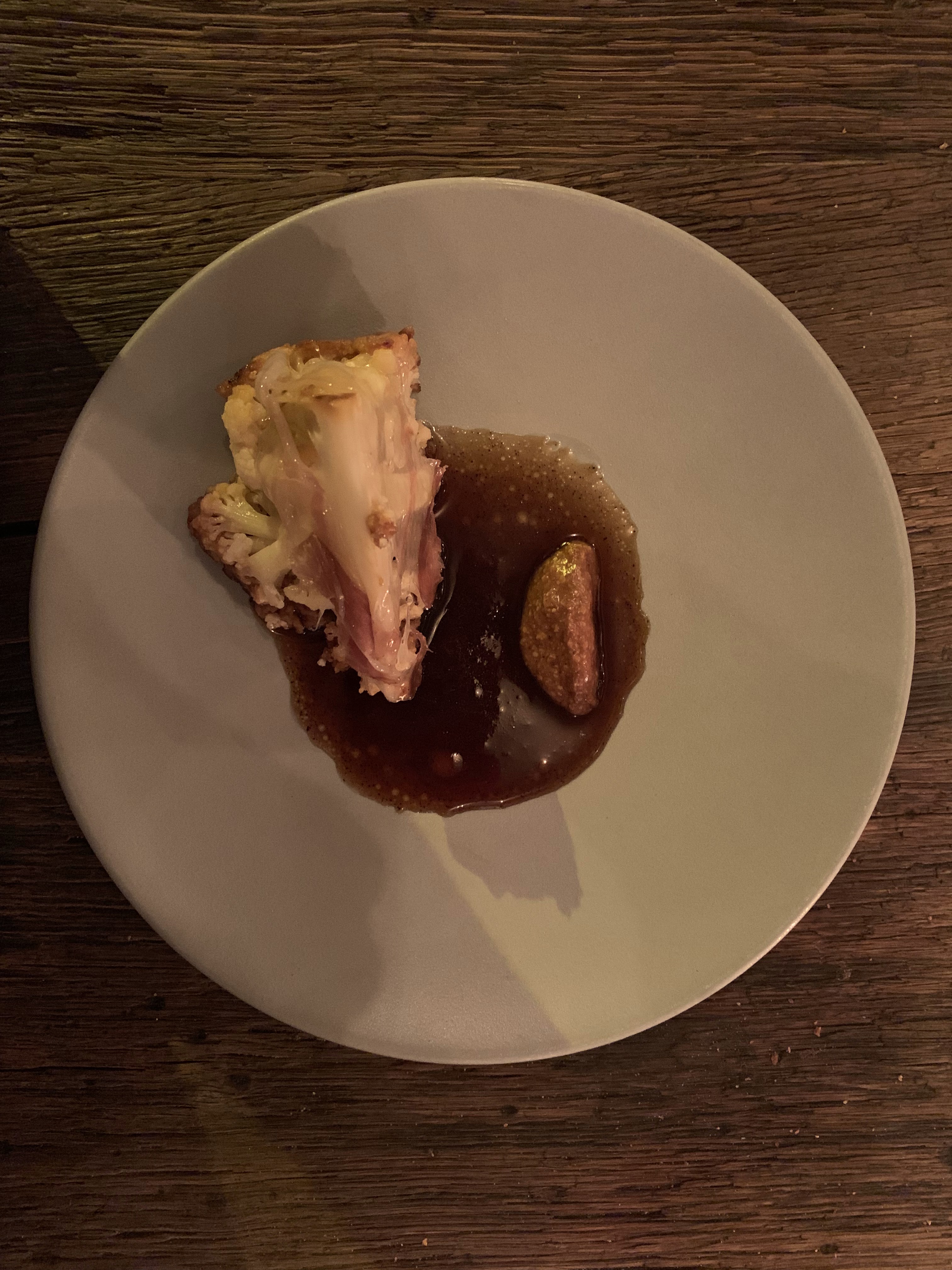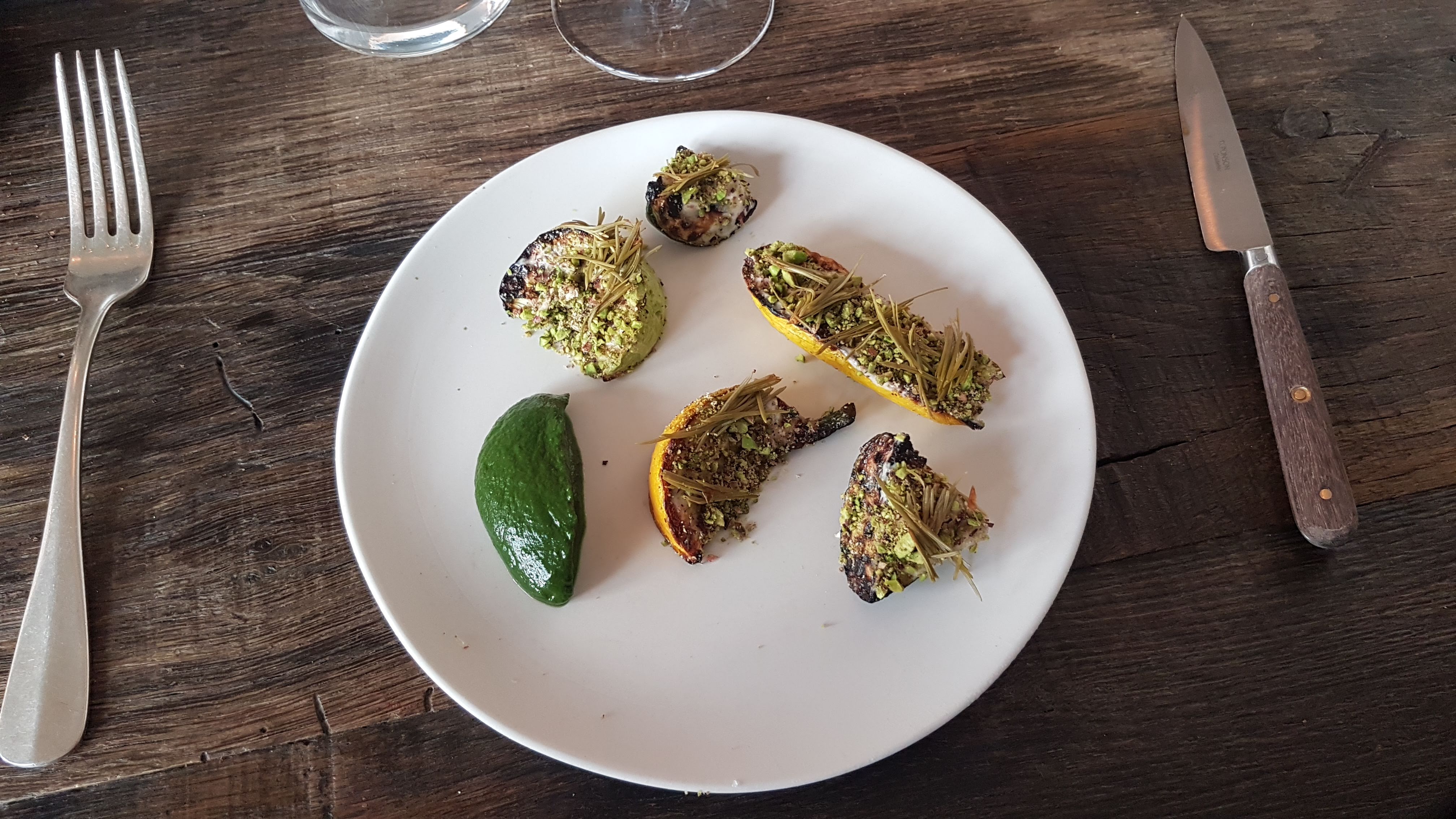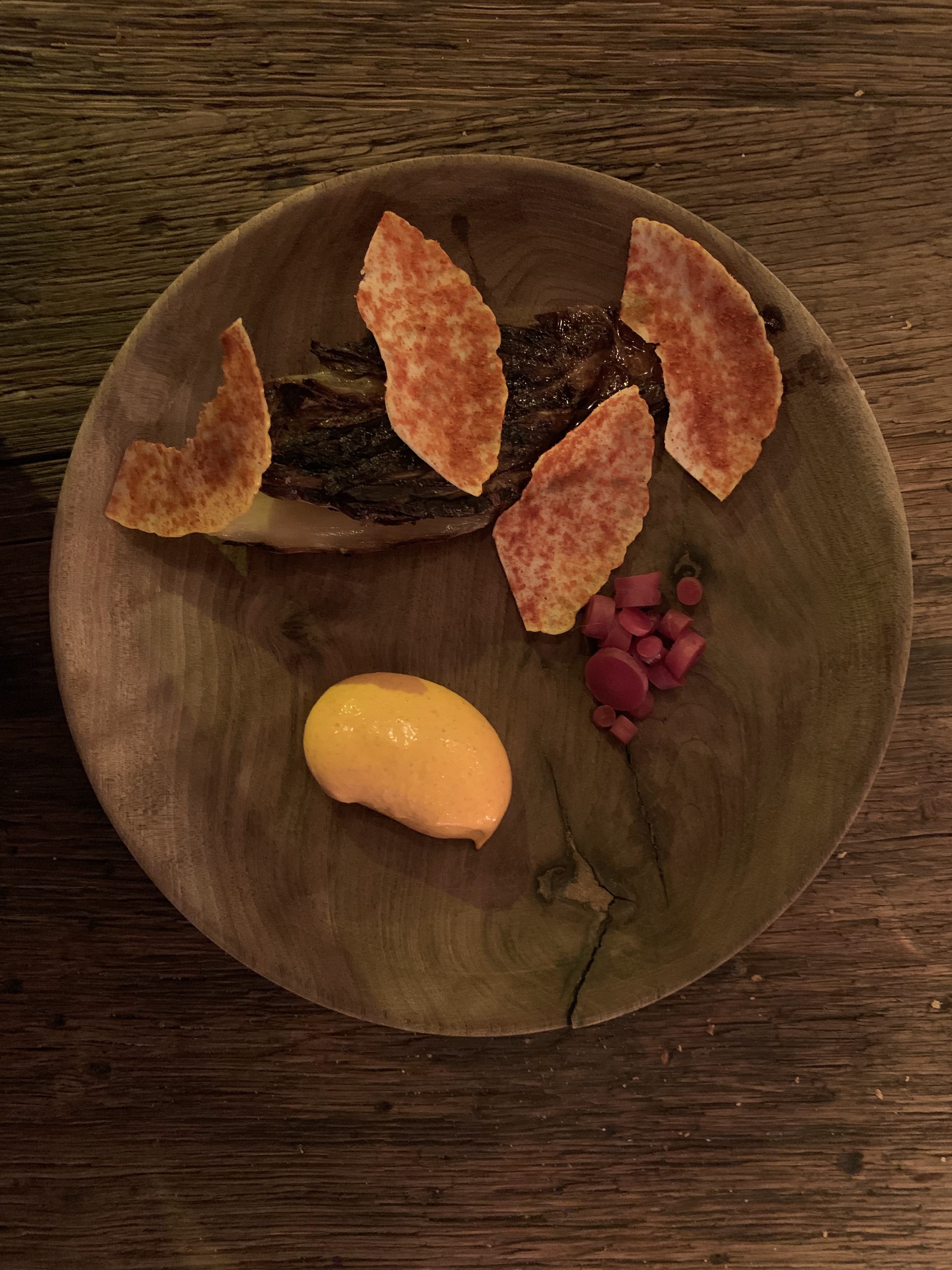 Habituée de la cuisine carnée, je ne peux que féliciter les chefs pour ce menu très orienté vers le végétal et pourtant pas frustrant du tout en termes de goût. De l’endive brûlée et sa poêlée de trompettes de la mort, au « ramen » de calamar dans son jus corsé, nos papilles ont été ravies. Points négatifs : le vin proposé pour accompagner le repas était peut être un peu trop excentrique à notre goût et donc à côté de la plaque. De plus la présentation de certains plats manquaient parfois un peu de finesse. Le jeu n’en vaut peut être pas la chandelle au de la difficulté de la réservation mais il s’agit tout de même d’un menu abordable pour un restaurant étoilé, c’est très bien pour une première approche.