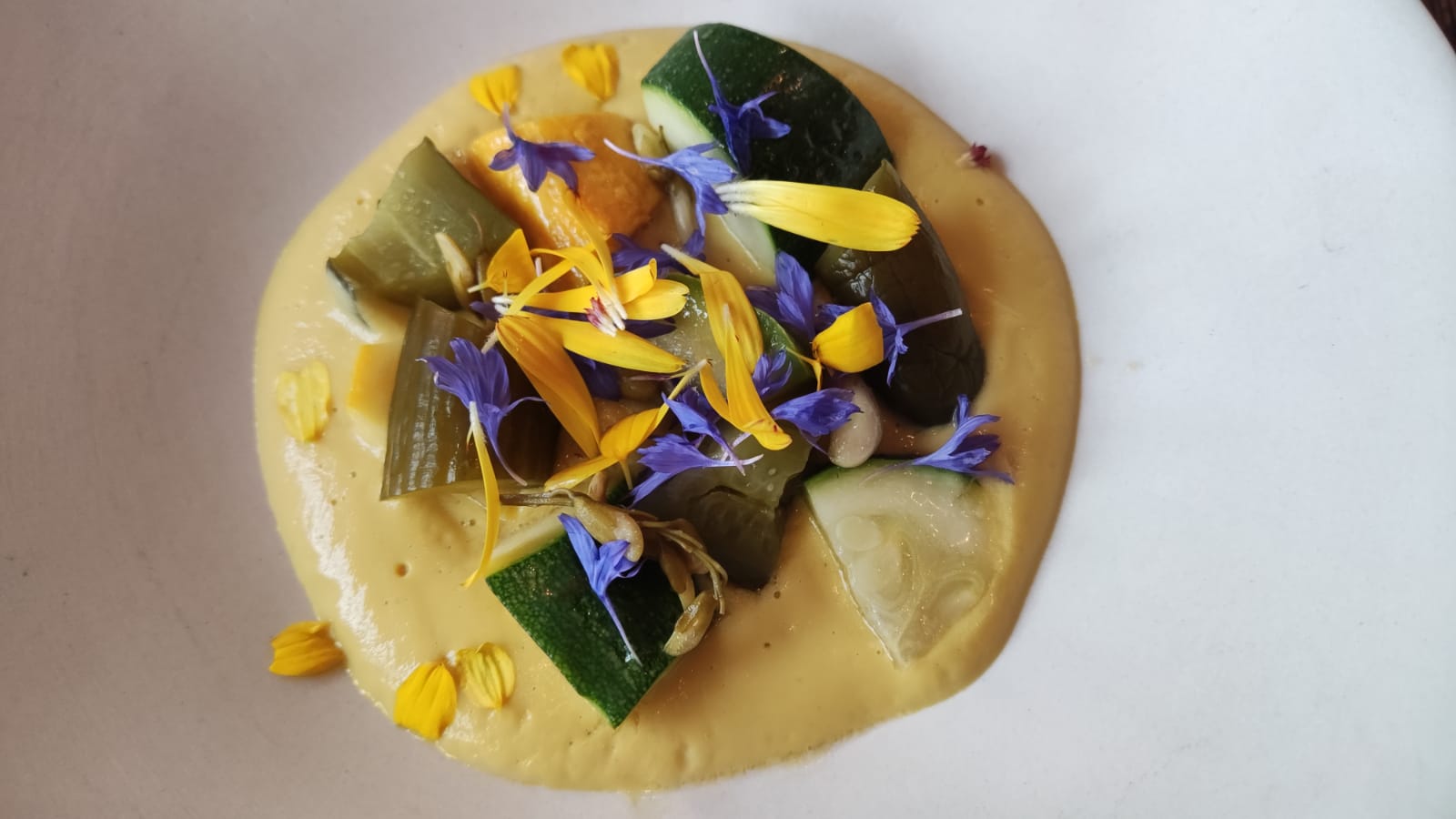 Aucune découverte côté cuisine. Menu végétarien: pour 42 € pas très inventif petite quantité dans un grand plat Vins nous avons commandés blanc, rouge, rosé soit disant d'un petit producteur un peu cher Salle bruyante Je ne suis pas sûr que celà mérite une étoile surtout pour un chef cuisinier qui a travaillé au côté de Monsieur Alain Passard. Il ne faut pas se reposer sur ses acquis.