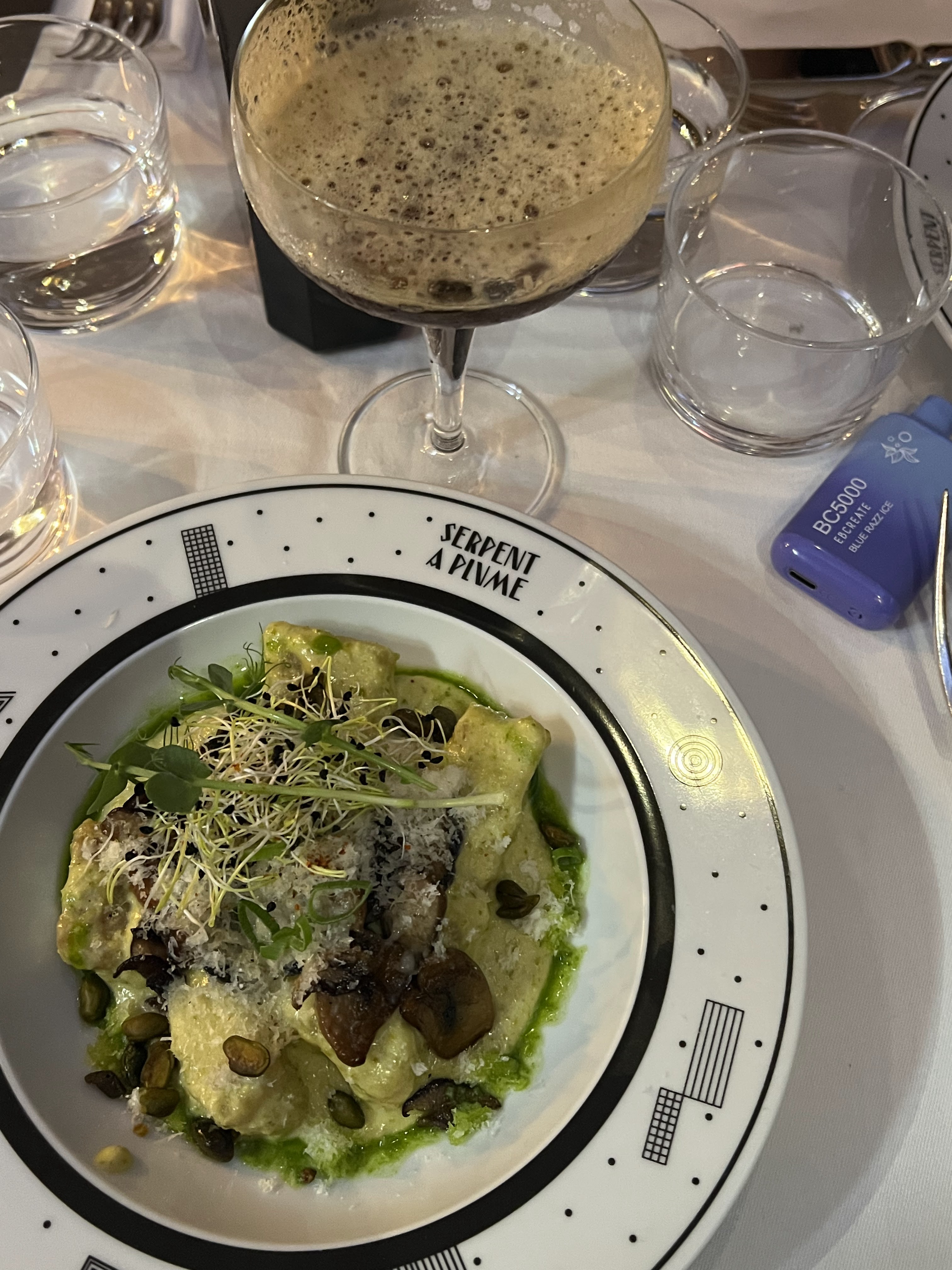 J'ai récemment eu le plaisir de dîner au Serpent à Plume à Paris, et l'expérience a été tout simplement exceptionnelle. Dès l'entrée, on est immédiatement séduit par l'ambiance sophistiquée et chaleureuse du lieu, mêlant élégance parisienne et touches contemporaines. La carte, bien pensée, propose une sélection de plats raffinés qui raviront les papilles des gourmets les plus exigeants. Chaque plat est une véritable œuvre d'art, aussi bien visuellement que gustativement. J'ai particulièrement apprécié les gnocchis, parfaitement assaisonnés et d'une sauce divine. Le service est à la hauteur de la cuisine: irréprochable. Le personnel est attentif, professionnel et sait mettre les convives à l'aise tout en restant discret. Mention spéciale pour les recommandations de vins qui se marient parfaitement avec les plats proposés. Le Serpent à Plume ne se contente pas d'offrir une excellente expérience culinaire, c'est aussi un lieu festif par excellence. La soirée que j'ai passée là-bas a été rythmée par un set de DJ exceptionnel, créant une ambiance électrisante qui a transformé le dîner en une fête mémorable. En outre, les sessions de jazz en live ajoutent une touche de sophistication et de charme indéniable, parfaites pour ceux qui cherchent à se détendre tout en savourant de la bonne musique. Enfin, le cadre intime et la décoration soignée font de ce restaurant un lieu idéal pour un dîner romantique ou une soirée entre amis. En somme, Le Serpent à Plume est une adresse incontournable à Paris pour ceux qui cherchent une expérience culinaire exceptionnelle dans un cadre unique. Je recommande vivement ce restaurant et j'y retournerai sans hésitation !