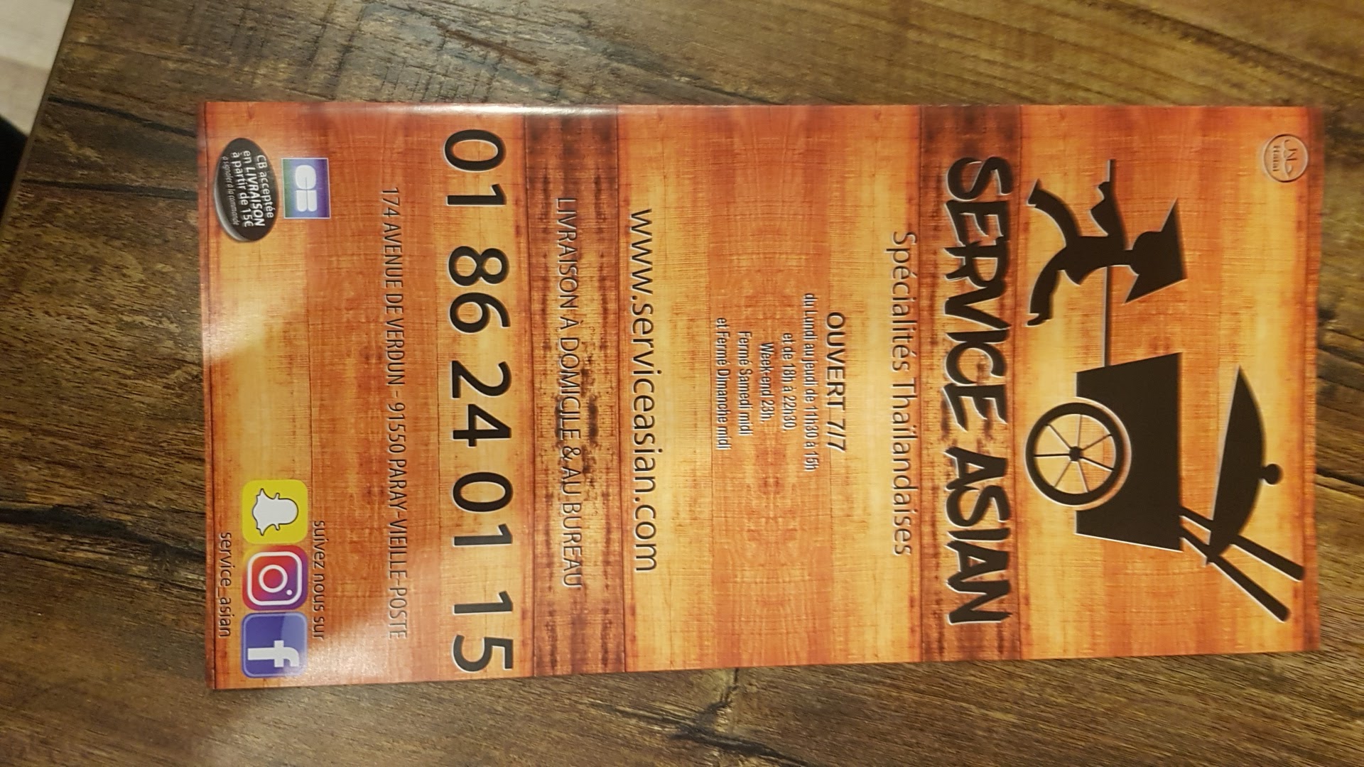 Voici toutes les informations sur le Restaurant thaï Service Asian qui ce trouve au 174 Av. de Verdun, 91550 Paray-Vieille-Poste (91). Sur cette fiche vous trouverez les photos, l'adresse, les horaires d'ouverture, le numero de téléphone et les avis clients.Vous pouvez églement rédiger un avis si vous le souhaitez en bas de page.