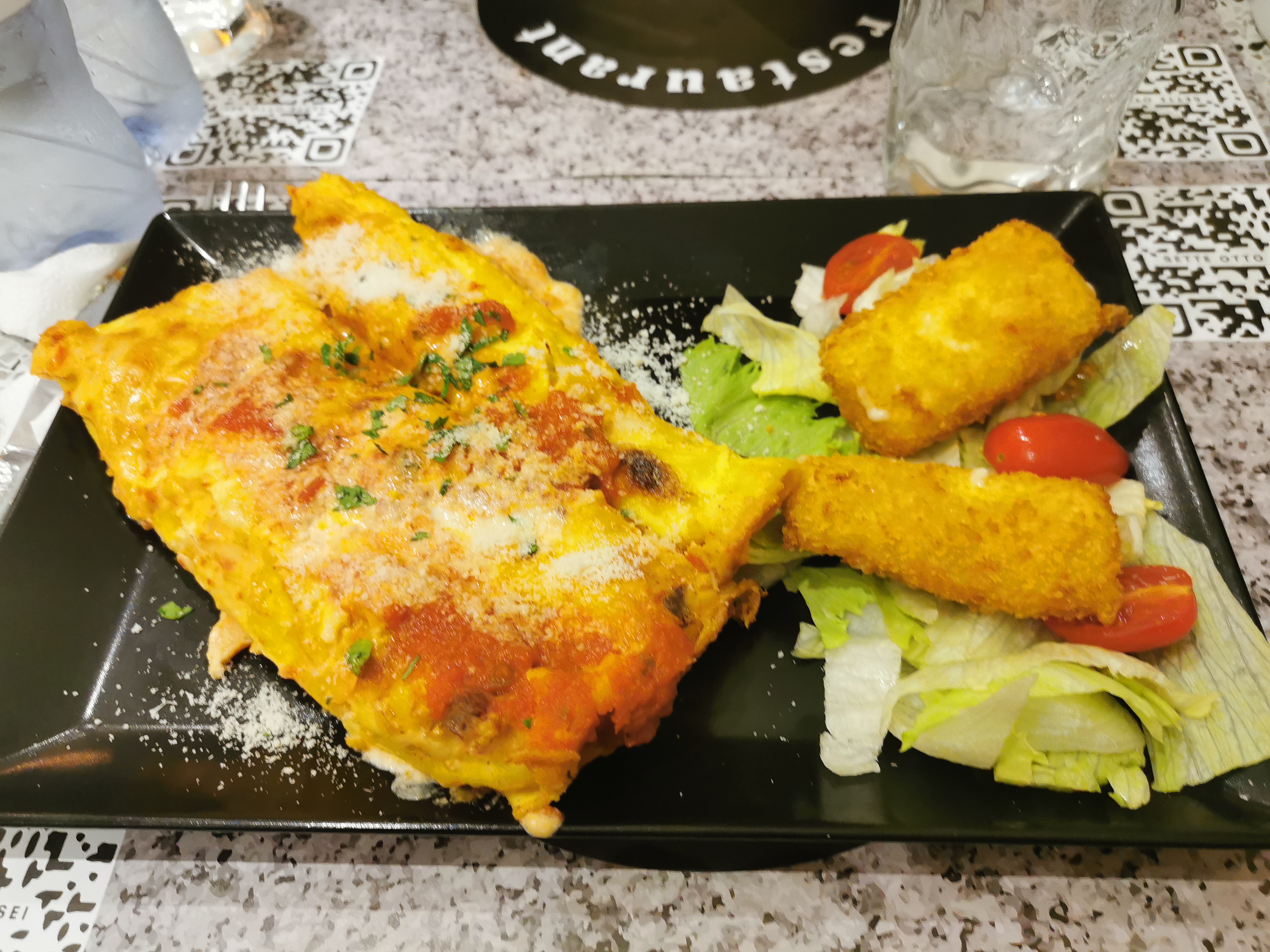 J’ai commandé hier sur Ubereats: des lasagnes bolognaises, de la mozarella stick, une mousse au chocolat, un tiramisu et une pizza Nutella. • les lasagnes : sachez que le surgelé en supermarché et bien meilleur !! Comment un resto italien aussi bien noté peut-il faire cette qualité médiocre ? • la pizza au Nutella était cramé ça gâchait le goût de la pizza, et le Nutella je ne suis pas sure que ça en était tellement c’était trop cuit … * mozzarella stick : 3 pieces, fromage pas assez fondu gros blocks dans la bouche, dommage que cela n’était pas chaud sachant qu’il n’y a que 6 minutes de transports jusqu’à chez vous… • tiramisu : trop petite dose !! Pratiquement aucun boudoir imbibé et beaucoup beaucoup de mascarpone ! * mousse au chocolat : seul point positif, elle était très bonne ! Je ne recommande pas ce resto à mes proches dommage …