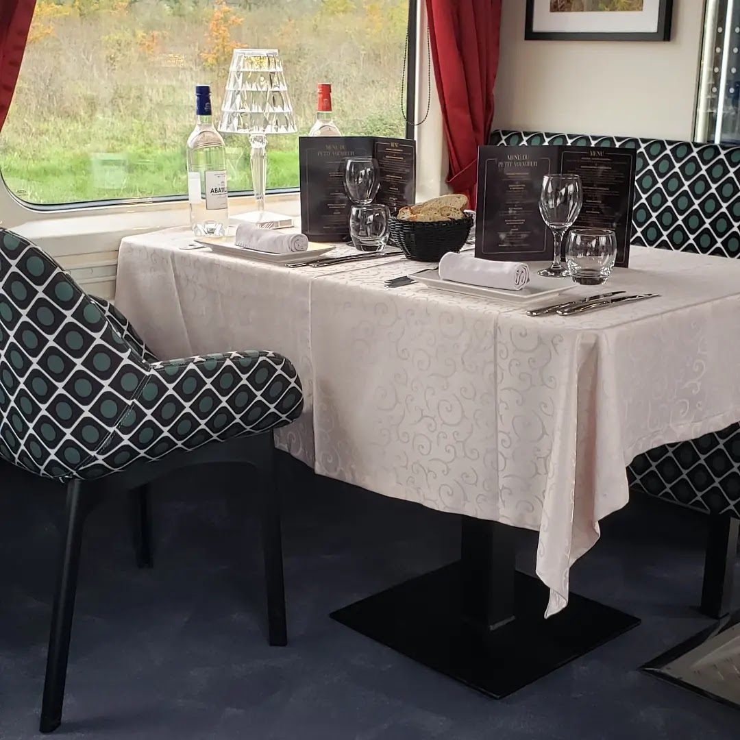 Un restaurant mobile !!! Une très bonne idée, on y mange très bien, un personnel sympathique et disponible ! Rien à dire !!! Seul bémol, je rédige cet avis en Janvier et j’ai eu l’impression que nous étions en Août !!! Rangez vos polaires et vos vestes, il fait très chaud du côté soleil dans le wagon ! Merci pour ce moment !!