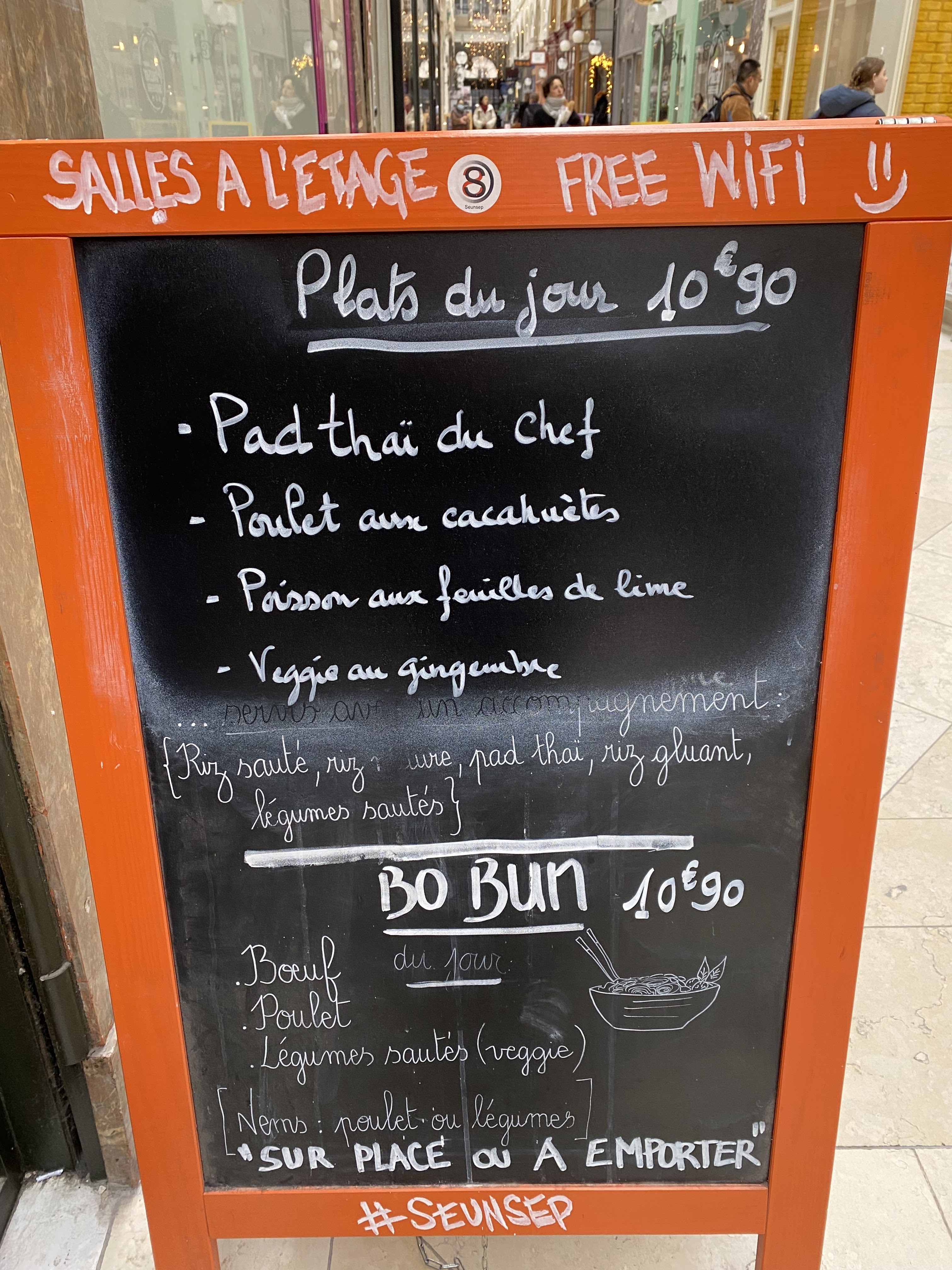 Super restaurant lao thaï dans la galerie Choiseul. 2 étages pour manger sur place