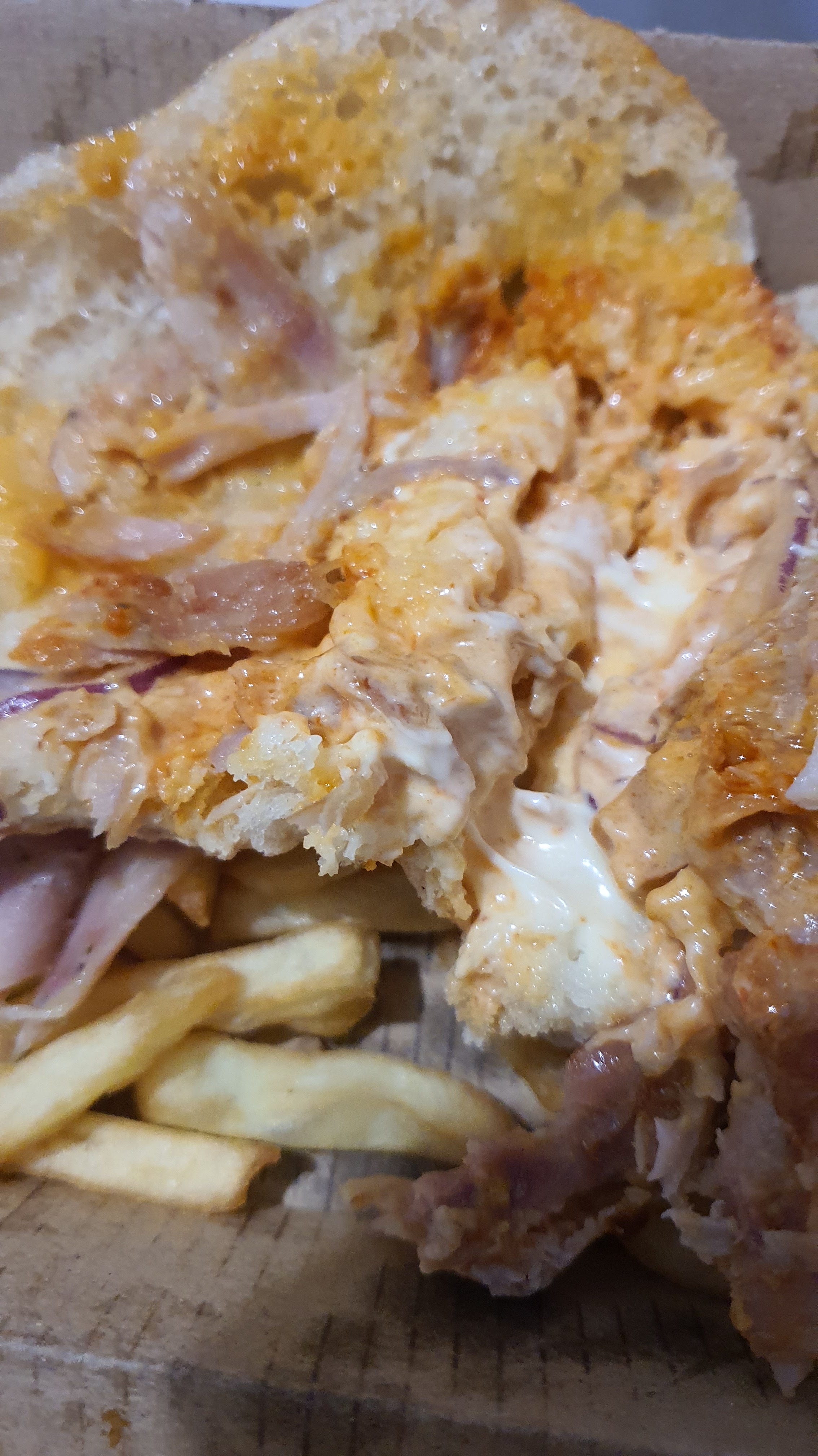 Savoureux mais viande kebab très grasse, leurs frites maison sont de simples potatoes surgelés avec des tranches de cheddar industriel.