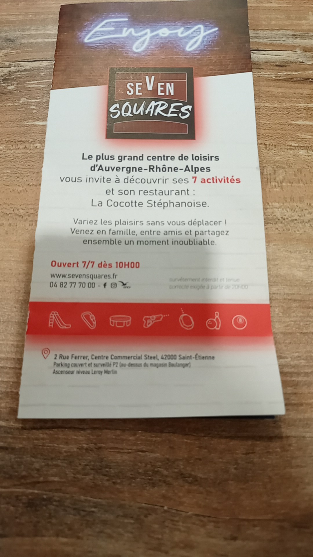 Nous voulions faire plaisir à notre fils de 15 ans en l'amenant au Seven Squares pour jouer en famille au bowling après une semaine de boulot intense. Mais on se voit alors refuser l'entrée parce que notre fils est en jogging. 😳 Quelle déception pour nous qui voulions lui faire la surprise ! Whaou ! Je n'avais pas compris que nous amenons notre fils en boîte de nuit ! Ou alors nous serions nous retrouvés sur la côte d'azur ? Non nous sommes bien à Saint Étienne. Il n'est pourtant pas une racaille ! J'ai eu beau expliqué que c'est un cadeau pour notre fils à cette personne si froide que rien n'y a fait. A croire qu'il accepterait un jeune en costard mais bourré à dégueuler dans leur structure à 2 balles ! C'est mieux qu'une famille qui voulait juste faire plaisir à leur fils qui a patiemment attendu ce jour là ! Ma déception est grande et je ne reviendrai plus dans ce lieu inhumain ! C'est loin d'être un lieu chic alors qu'ils arrêtent de se la péter car ici on est juste à Sainté !