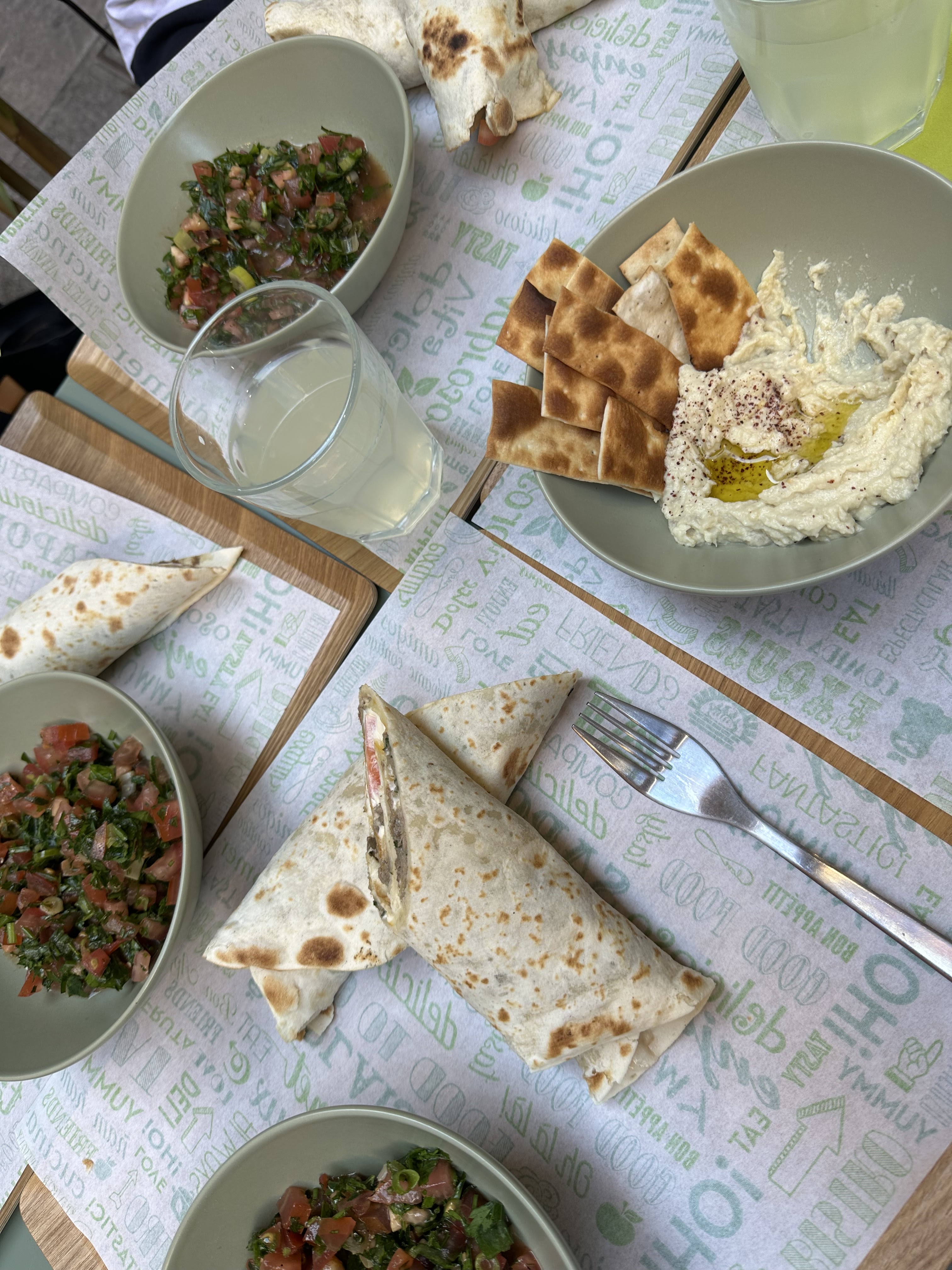Super expérience, j'ai adoré le halloumi ! Meilleur aliment. Le houmous est délicieux et le service est très agréable. Je conseille ce restaurant calme et bon marché (alors que très bon).