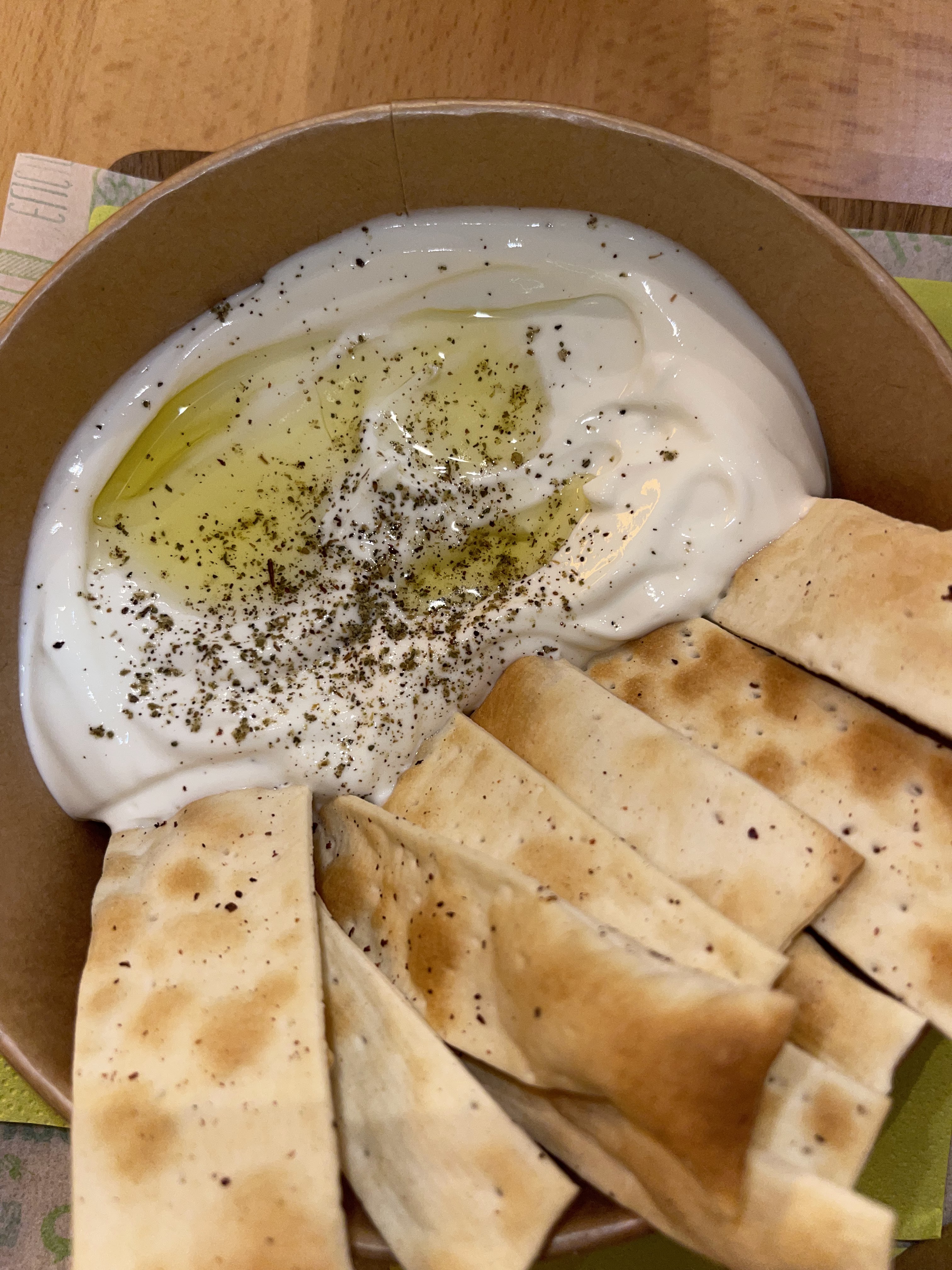 Je m’y suis rendu pour la première fois en début de semaine avec une amie, on avait été “influencés” par de très bons retour sur divers réseaux sociaux et l’adresse semblait sympathique vue de l’extérieur, nous avons été déçus. La cuisine est effectivement bonne mais le ratio quantité/prix est désastreux. Brièvement, pour 11€, en menu donc, j’ai eu l’équivalent d’une grande entrée. Ma photo donne l’impression que c’est plus grand que ce que c’est. Je n’ai pas goûté le labneh mais selon mon amie, il était trop lisse, plus proche du yogourt. Le moutabbal était bon. Pour les manakeesh, bon mais les faire plus grands ou en mettre deux serait plus intéressant pour des portions adultes. La citronnade était sympa. L’ambiance musicale était ok. Je conseillerais tout de même de ne pas s’assoir à côté de la porte d’entré si la météo est venteuse. Je rajoute avoir trouve dommage d’avoir été servis dans des plats jetables et non de la vaisselle lavable Finalement, je ne pense pas y retourner, la qualité du repas ne rattrape pas le reste.