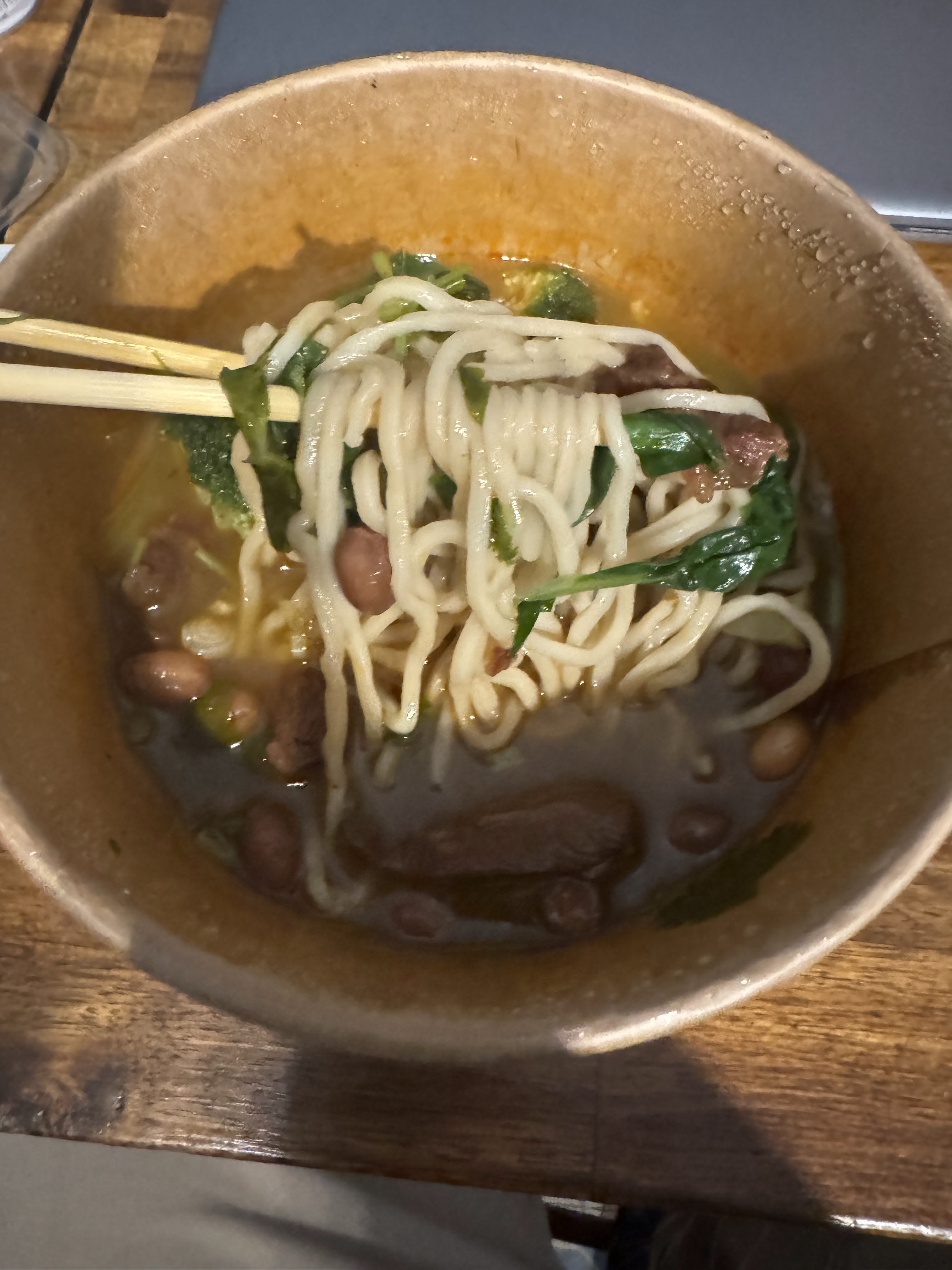 J'ai commandé un plat à emporter. Nouilles au bœuf. Les nouilles basique sans goûts, pas mieux que des nouilles à 0,60€ dans le commerce. Le bœuf 90% de gras et un goût de cantine. Dommage, mais comme souvent trop de plats à la carte = produit de moindre qualité en cuisine.