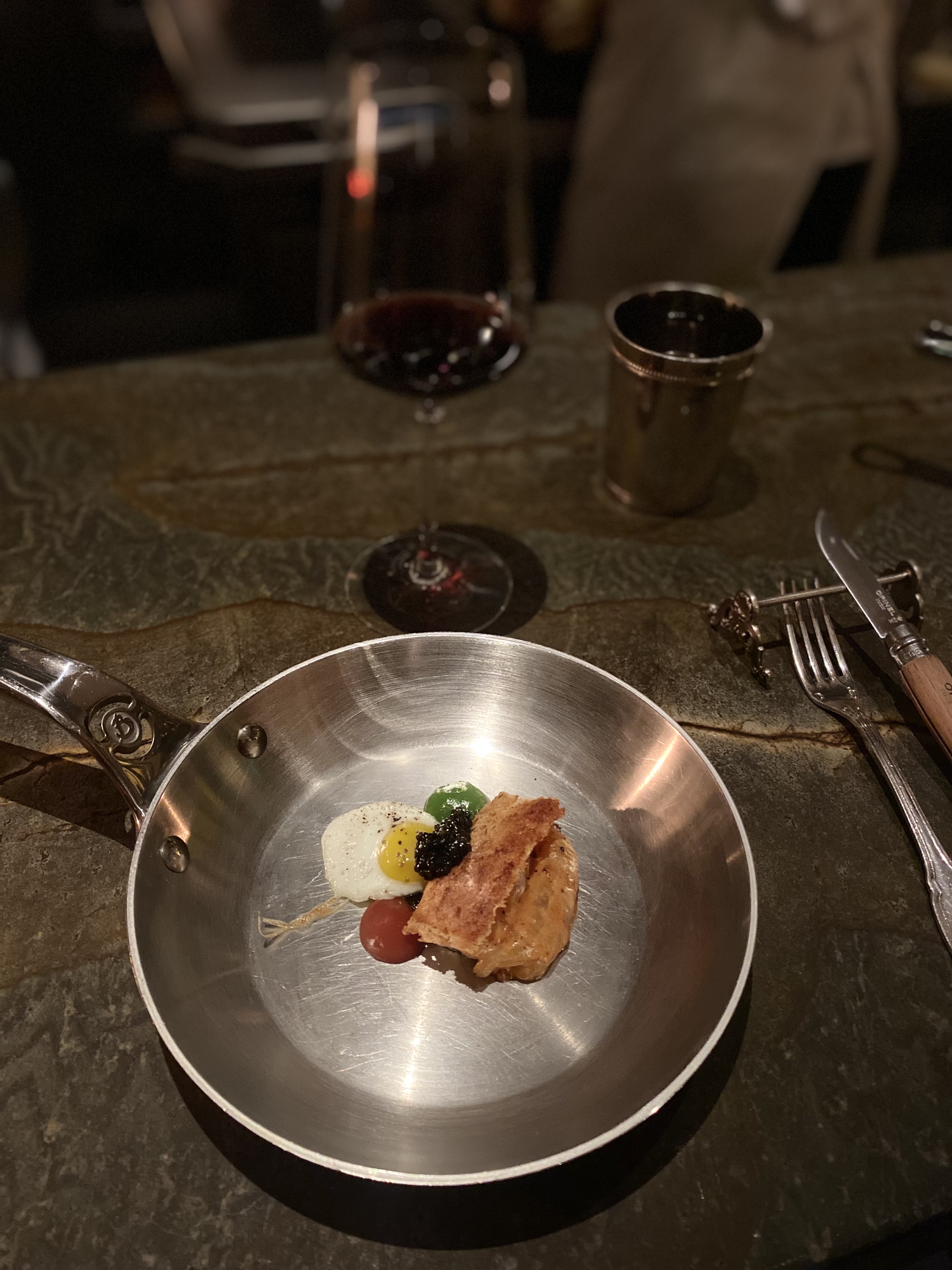 Superbe expérience. Décor travaillé et insolite. Service attentionné et professionnel (mention spéciale pour les oui chef exclamés en choeur) Chaque plat est de qualité et a son histoire. Le restaurant vaut l'attente de réservation et mériterait une étoile au guide Michelin.