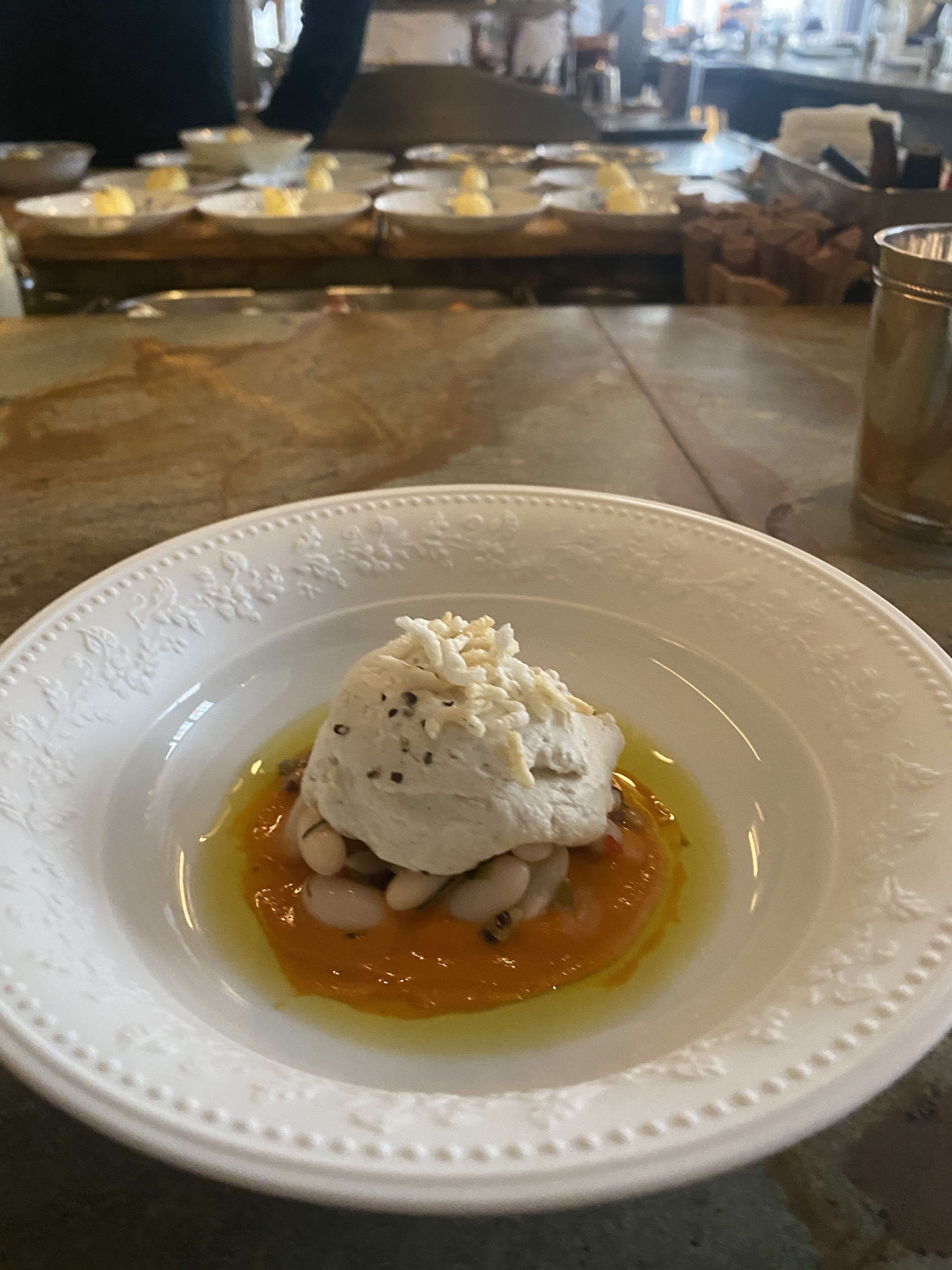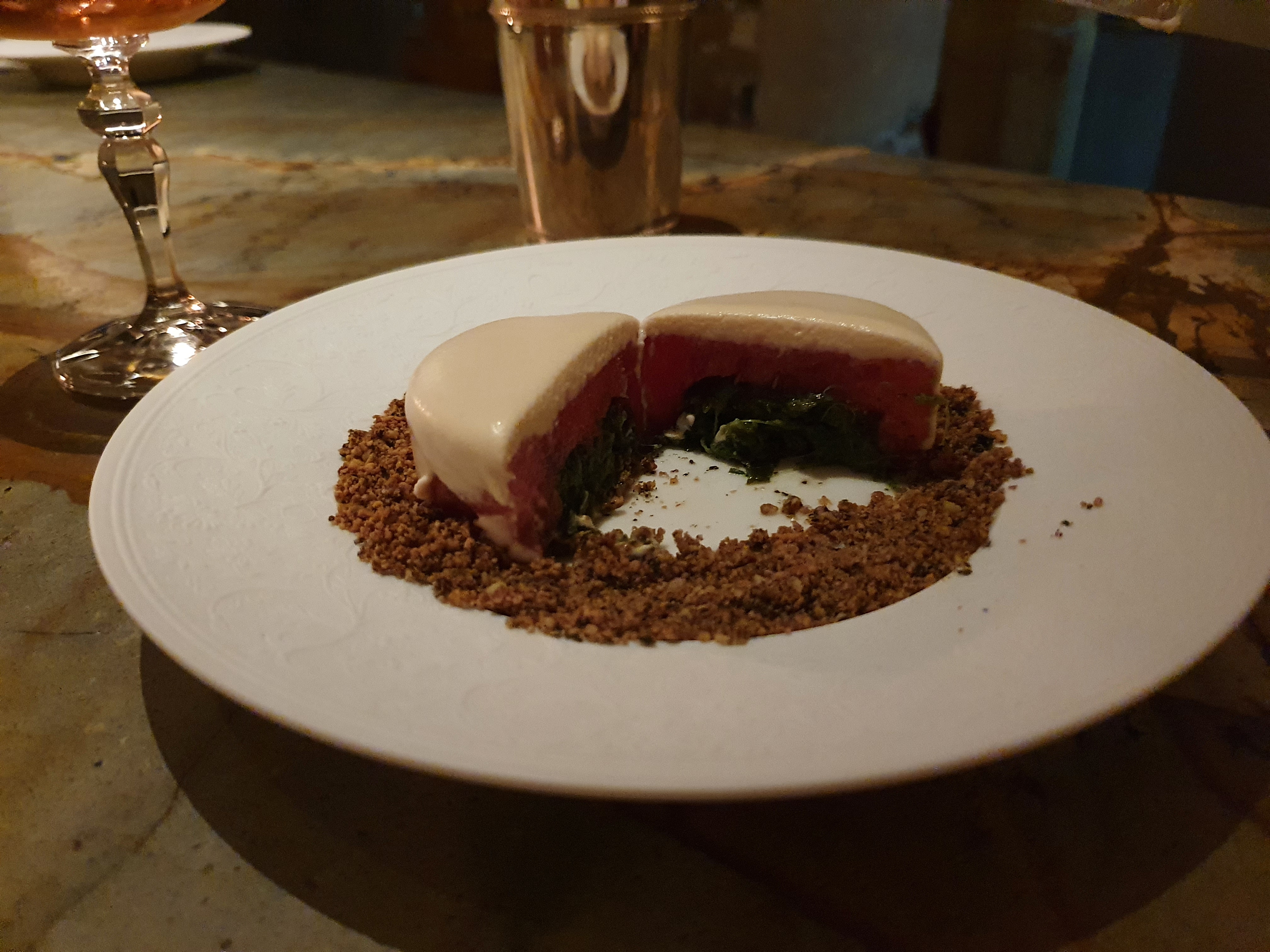 🔵🔵🔵⚪️⚪️⚪️ Nul doute, on est ici très bien reçu. L’agencement autour des chefs est plaisant. La mise en scène, les petites histoires autour des plats, la présentation de quelques ingrédients bruts est très bien amenées. Une promesse gustative enchanteresse à venir. Et pourtant chaque plat dont la composition me faisait tant envie, s’est révélé être en deçà de mes espérances. A aucun moment je ne fus subjugué, surpris ou conquis. Une expérience de voyage culinaire surtout visuelle et auditive.