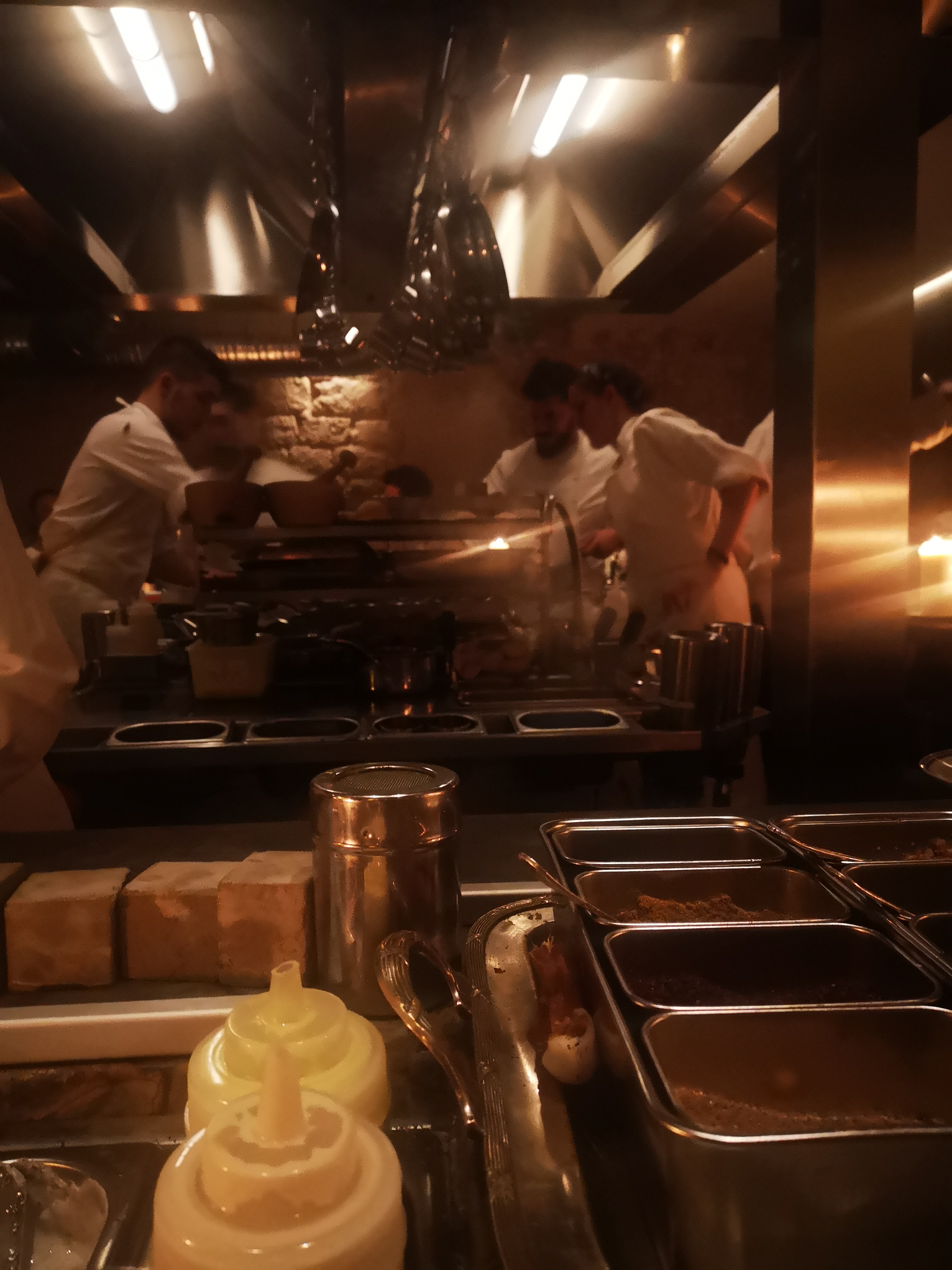 Un dîner exquis, un cadre hors du commun et absolument parfait, un personnel adorable qui, au moment de les servir, décrit la symbolique et la composition des plats de manière à nous emmener très loin au delà de l'assiette. Le tout agrémenté du ballet des cuisiniers. Bref une expérience unique et merveilleuse.