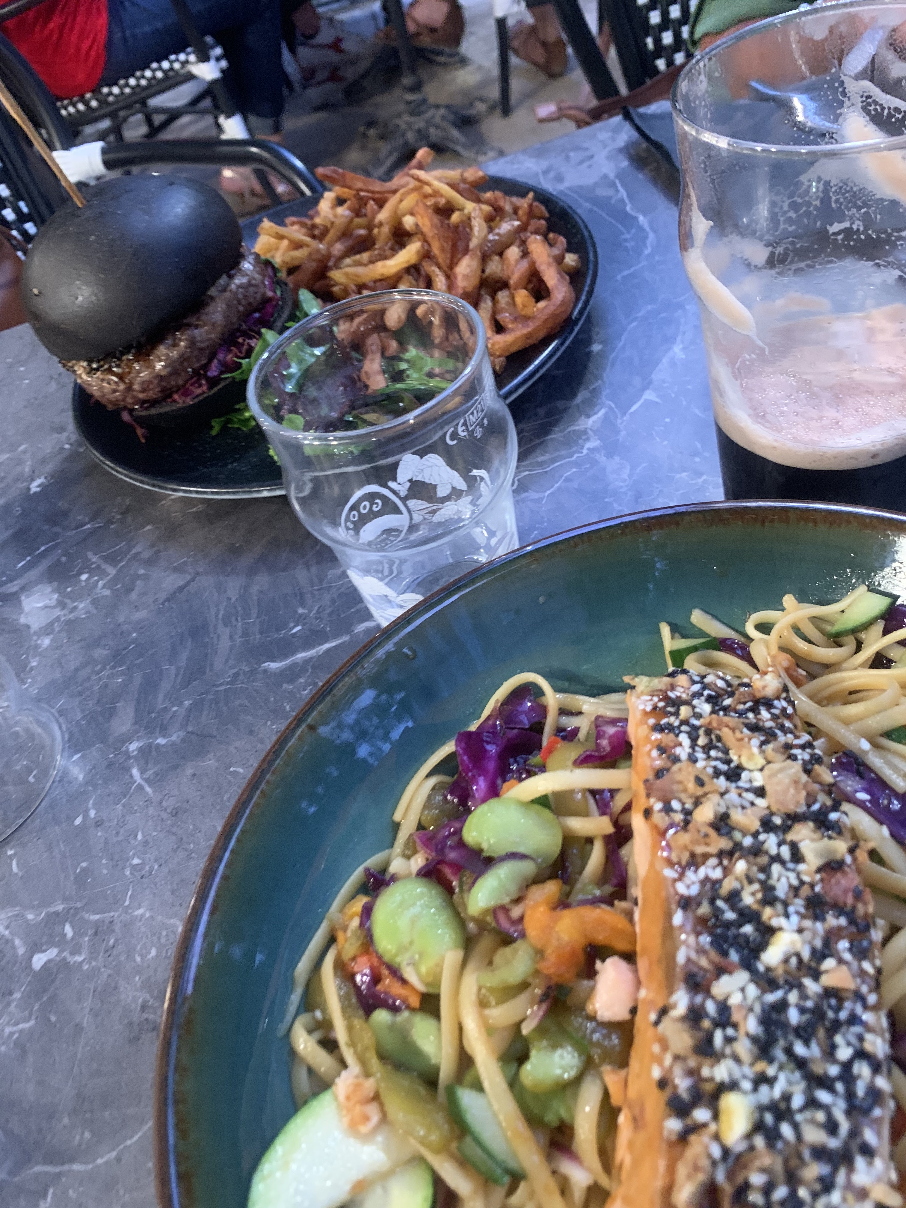 Nous sommes venus manger entre amies récemment. La prise de commande a été plutôt rapide, mais la serveuse devait débuter... Pas très souriante et semblait dépassée. Une deuxième serveuse est venue disant vouloir prendre notre commande, on lui dit que notre commande a déjà été passé.... Nous avons attendu exactement 35-40min avant d'avoir nos cocktails... Ils étaient toutefois bon heureusement ! Un autre serveur viens à notre table 5min après avoir eu le cocktail, car souhaite nous encaisser de suite ...on rappelle qu'on reste manger donc quo paiera + tard, le serveur est reparti. Il n'y a pas vraiment de communication je crois .... Pour le repas c'est pareil nous avons encore attendu un petit moment avant d'être servies... Il y avait beaucoup de monde ce soir c'est peut-être lié à cela. Le burger et le wok étaient plutôt bon. Nous reviendrons certainement boire ou manger ici en espérant juste que le service soit plus rapide, plus souriant !