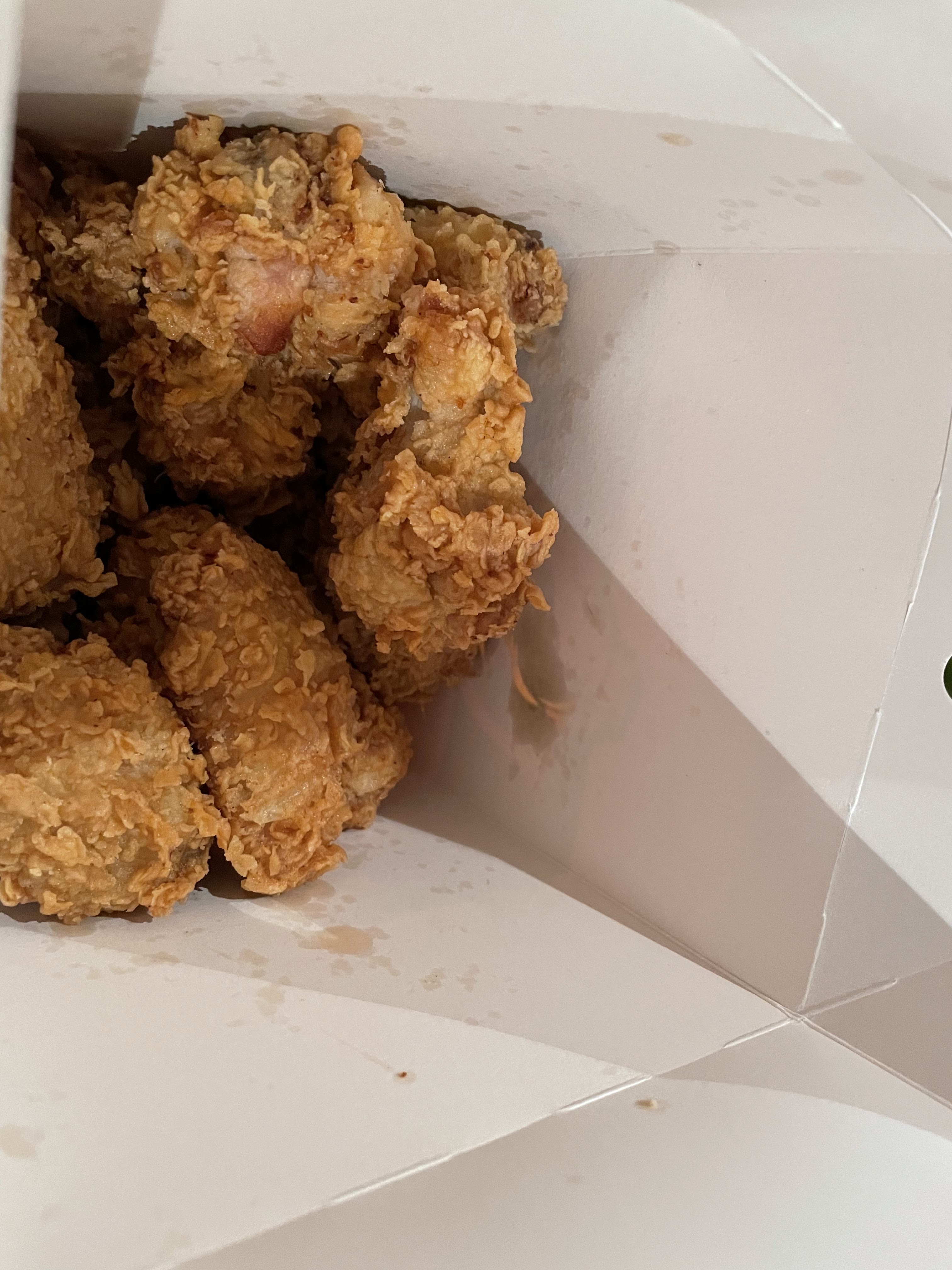 Un seau de poulet commandé était la chose la plus dégoûtante que j'ai jamais eue. Soit le poulet est pourri, soit c'est un chat mort.