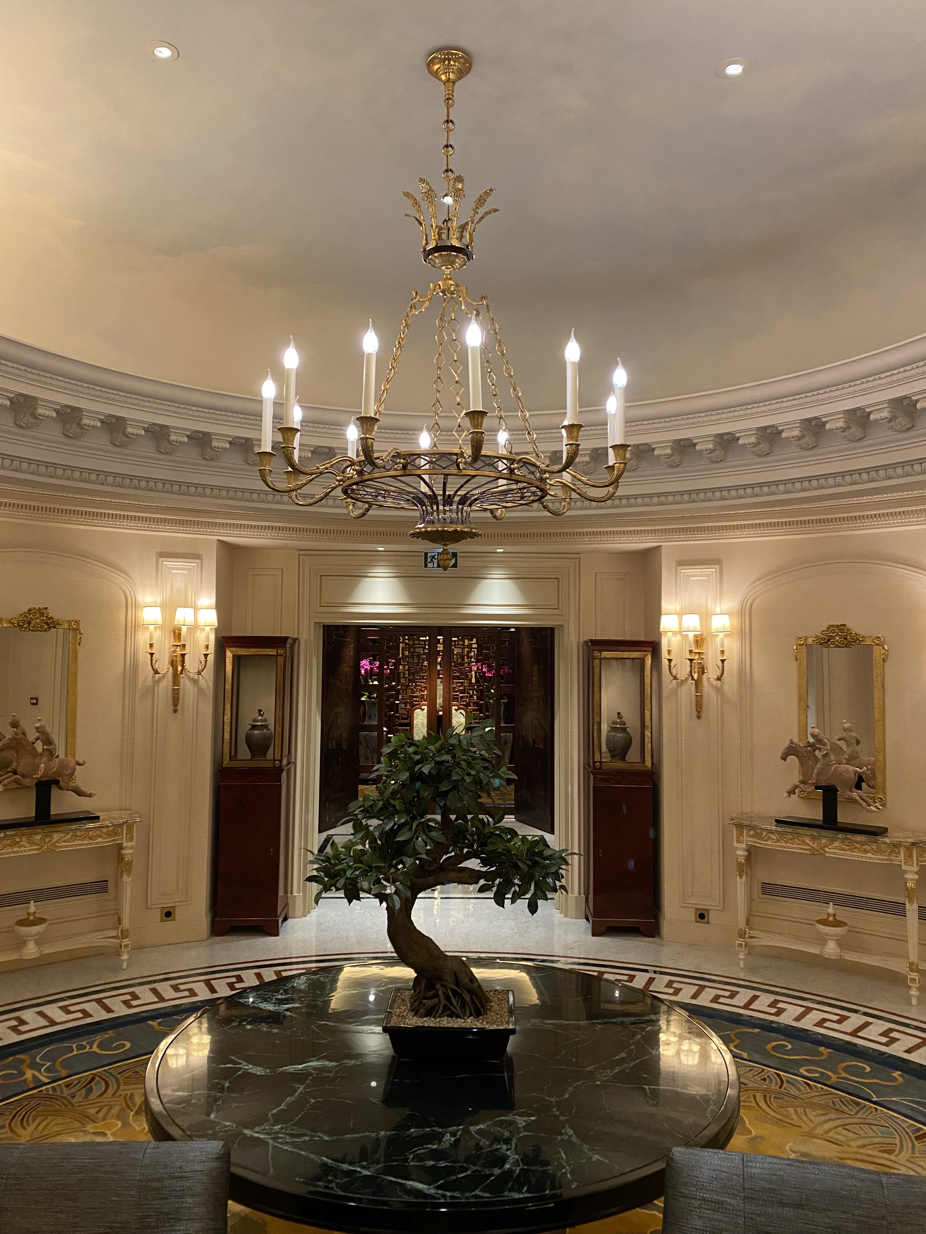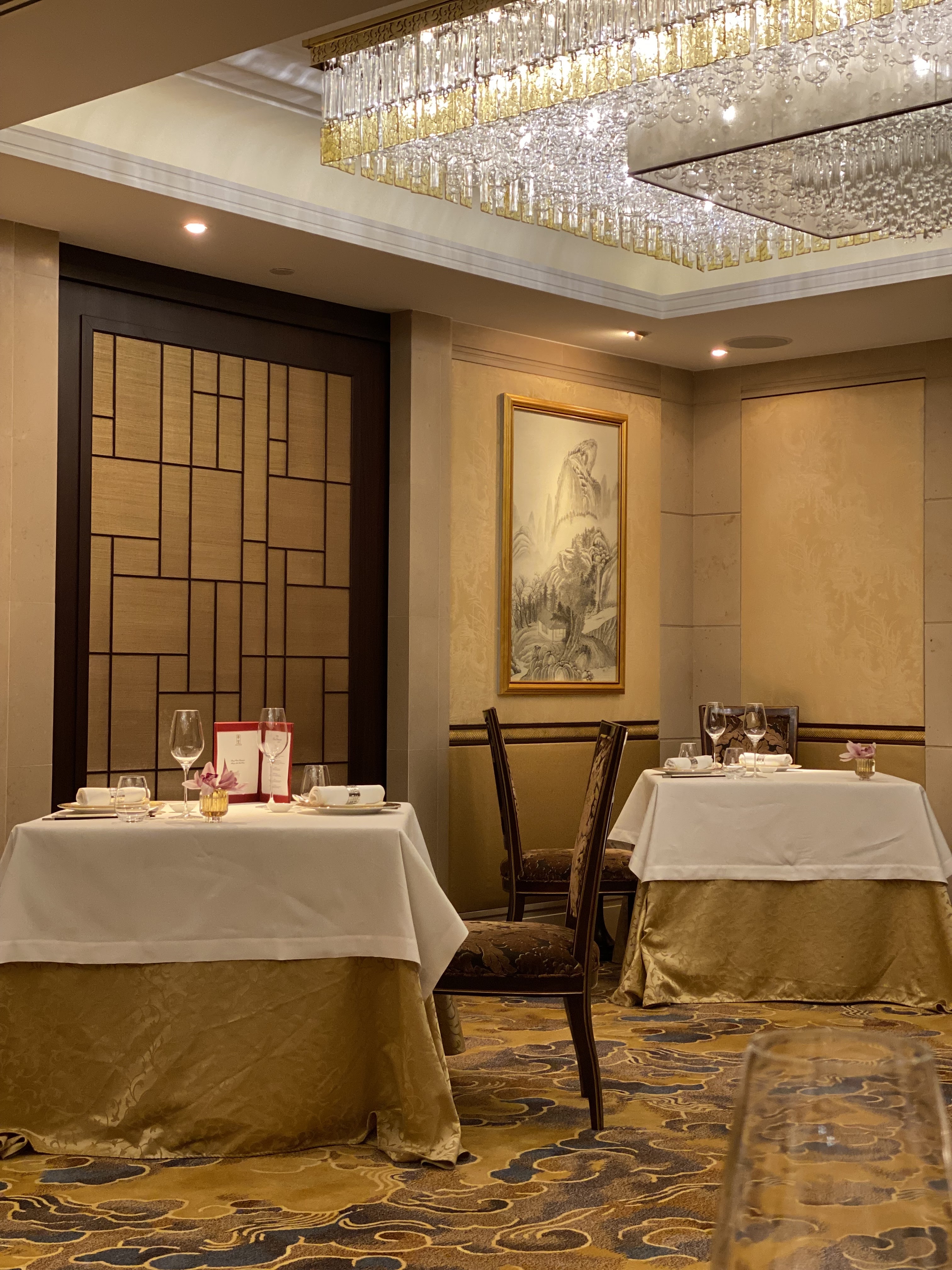 D’extérieur très beau palace, en revanche le restaurant shang ne semble pas être à la hauteur de son étoile. Homard fade sans goût, 2 bouillons dans le même menu (début et fin de repas), dessert sans intérêt, pas de fil conducteur (exception pour le canard qui était vraiment bon). L’hygiène est à revoir nous avons gardé la même cuillère tout le long du repas : 7 plats (pas de couverts pour ceux qui ne maîtrisent pas les baguettes), on nous amène les plats avant d’avoir débarrassé, à aucun moment la table n’a été nettoyée. Personne a l’accueil ni à l’entrée pour nous indiquer notre chemin. On me fait sortir dans la rue pour fumer une cigarette. Pas de bonjour ni d’au revoir. Dommage car le serveur et le sommelier étaient très a l’écoute. Bref vu le budget On y retournera pas :) amateurs de « Palace »nous sommes déçus !
