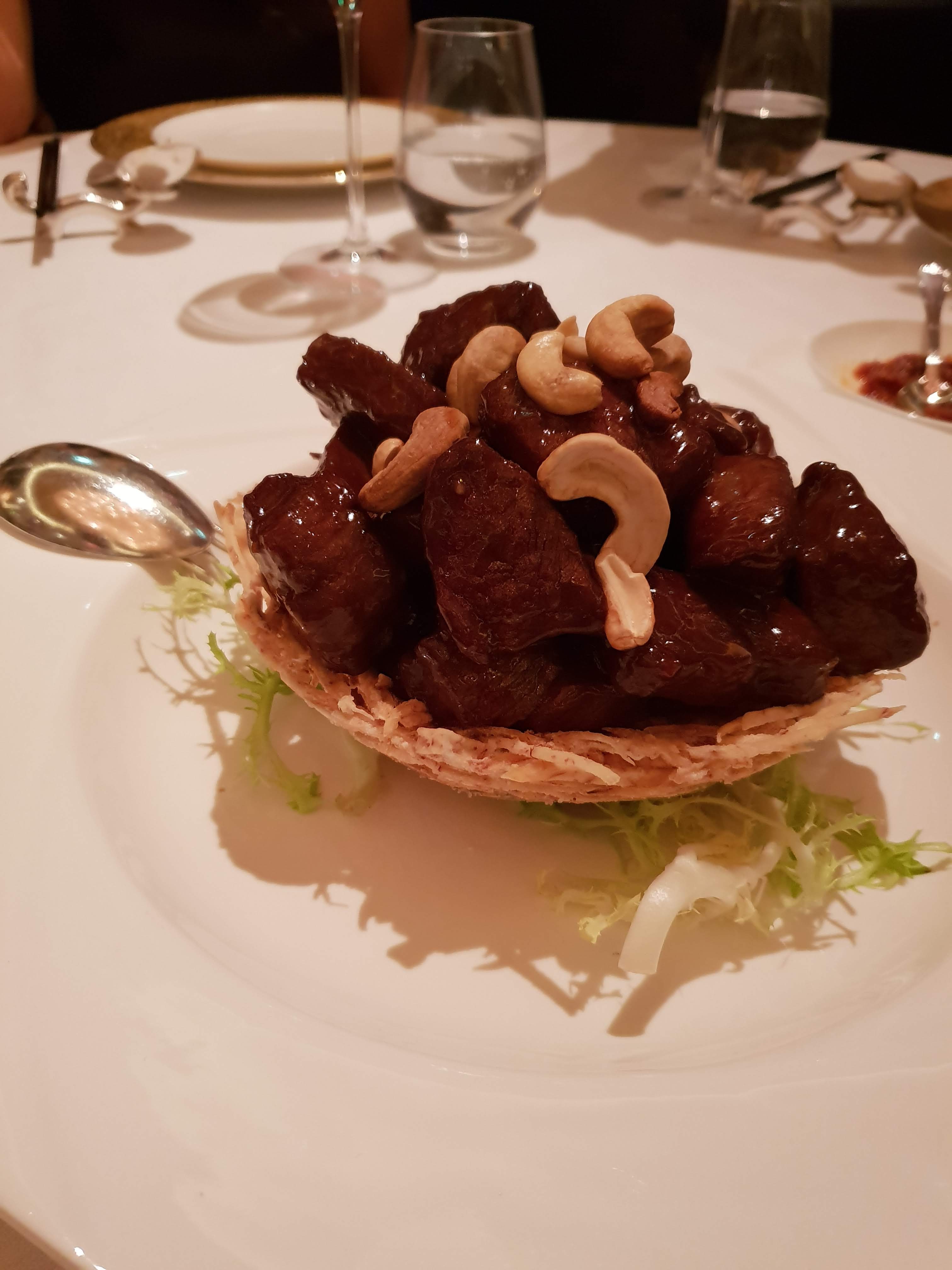 Ce n’est pas pour rien qu’il s’agit du seul restaurant chinois étoilé Michelin à Paris. Soyez accueilli avec le service le plus impeccable dès votre arrivée. La nourriture est exceptionnelle, presque comme si vous étiez transporté à Hong Kong avec le parfum et l'ambiance familiers qui sont typiquement Shangri-La. Le canard rôti était parfait, la peau est croustillante et la viande est succulente et juteuse, pas trop grasse. Les har gau (quenelles de crevettes à la peau de cristal) sont sans conteste les meilleures de Paris, des crevettes juteuses enveloppées dans une peau translucide cuite à la vapeur à la perfection. La soupe wonton est un autre délice. Et le foie gras sur du pain grillé croustillant était la quintessence de la rencontre de l'Orient et de l'Occident. Le tofu braisé était incroyablement doux et j'ai été surpris qu'il existe ici à Paris. Un régal certainement délicieux si vous voulez uniquement le meilleur de la cuisine chinoise servie au cœur de Paris.