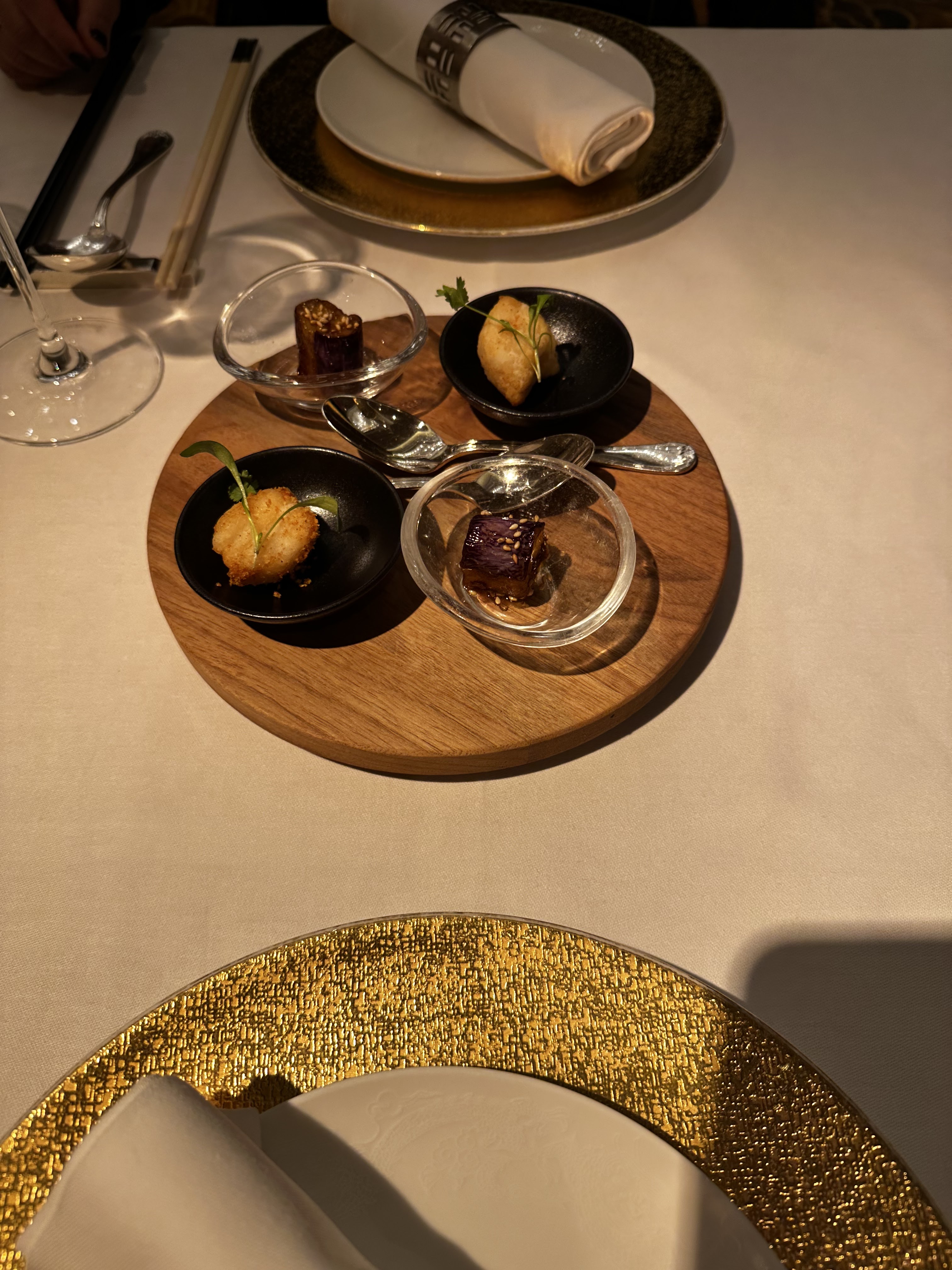 L'expérience globale a été plutôt bonne, mais je m'attendrais à mieux du seul chef chinois étoilé au guide Michelin et d'un établissement du Shangri La. *** Nourriture : les plats étaient globalement d'inspiration chinoise et japonaise. Les ingrédients étaient de très bonne qualité mais la transformation manquait de créativité/sophistication et les portions étaient minuscules. *** Service : les serveurs étaient très attentifs à nos besoins et nous expliquaient chaque plat. Je m'attendrais cependant à un peu plus de formalité et de « chinoisité » pour la tenue vestimentaire et le comportement (c'était trop « occidental » et pas assez professionnel à mon avis) **** Cadre : le décorum est à la fois très chinois mais contemporain et élégant PS : j'y suis allé pour le menu dégustation Émeraude à 150 €.