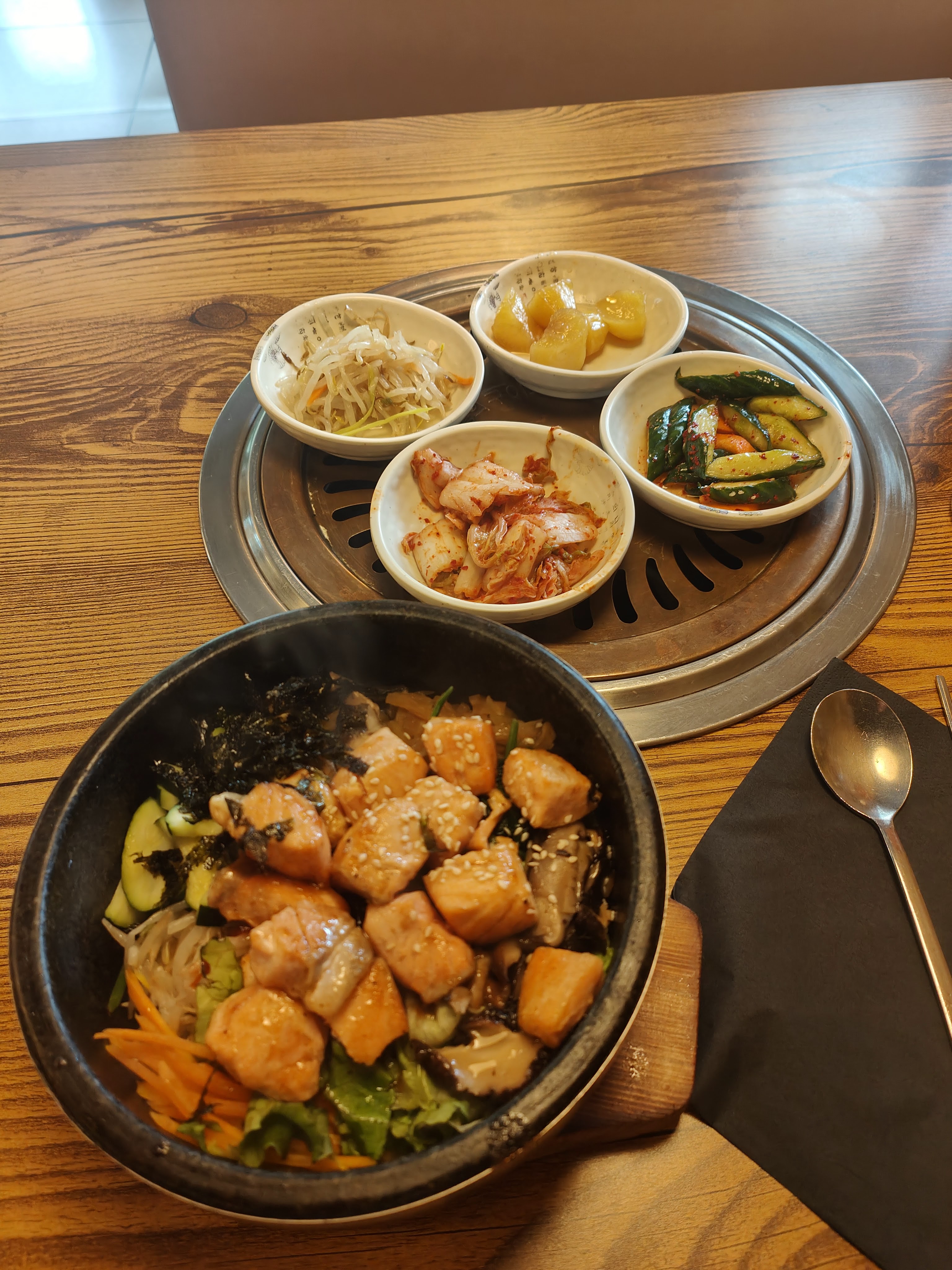 Un très bon restaurant coréen mais très brillant. Un bibimbap au bœuf très bon mais au saumon un peu sec.