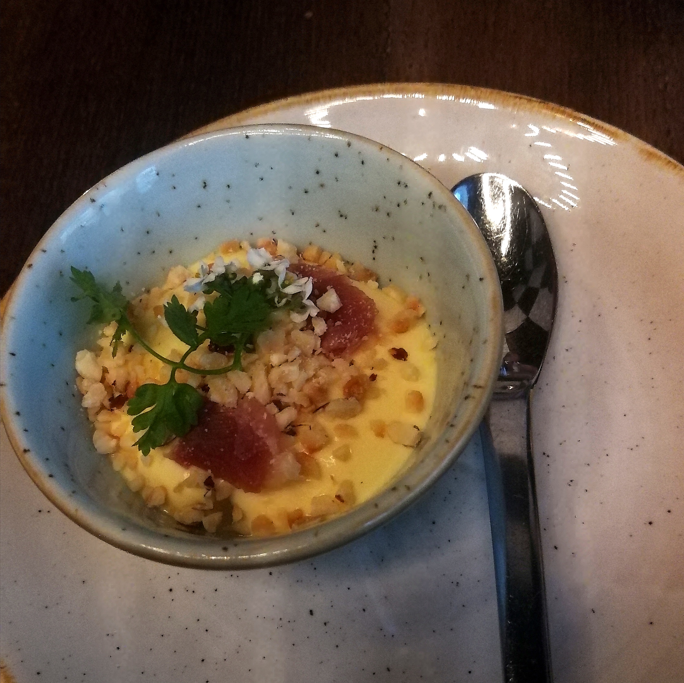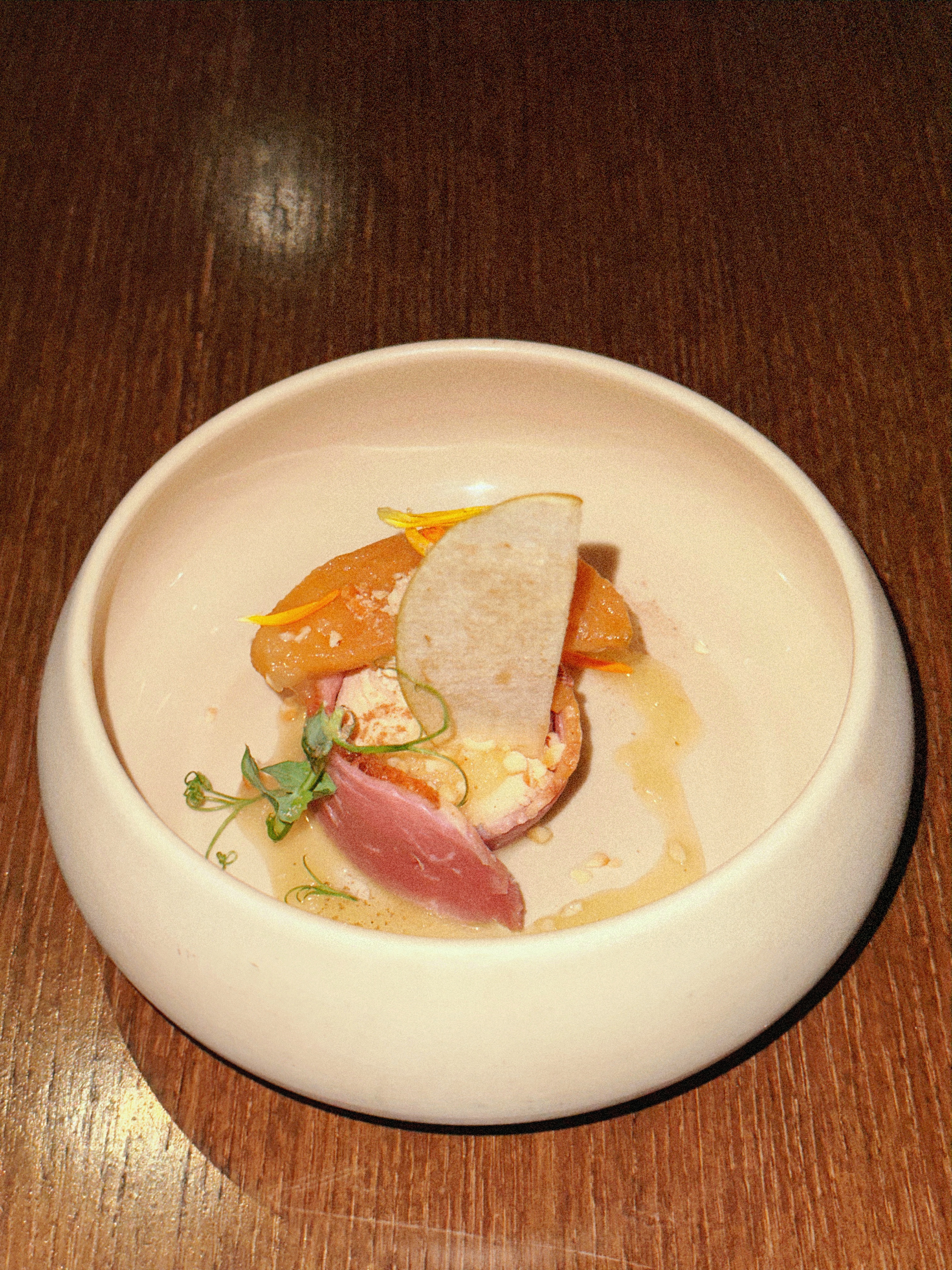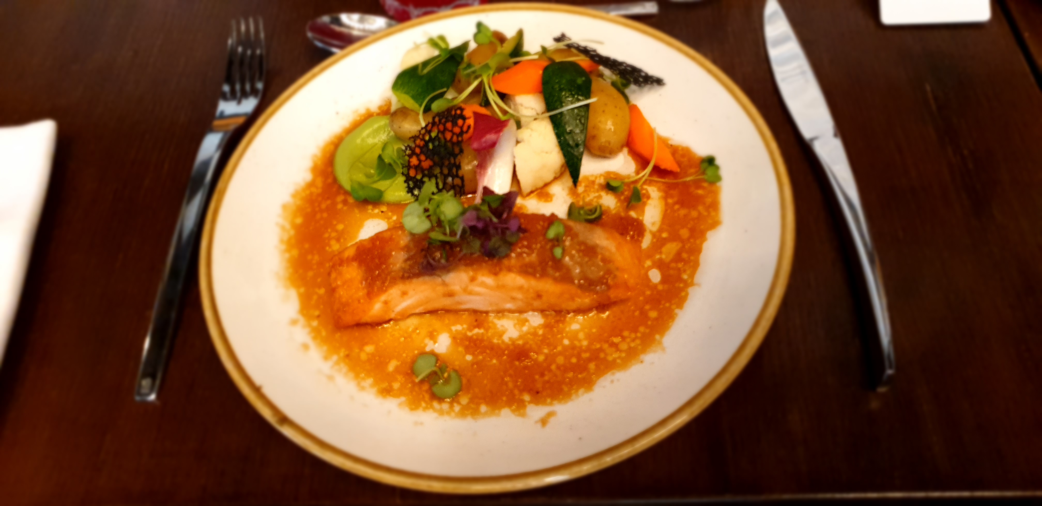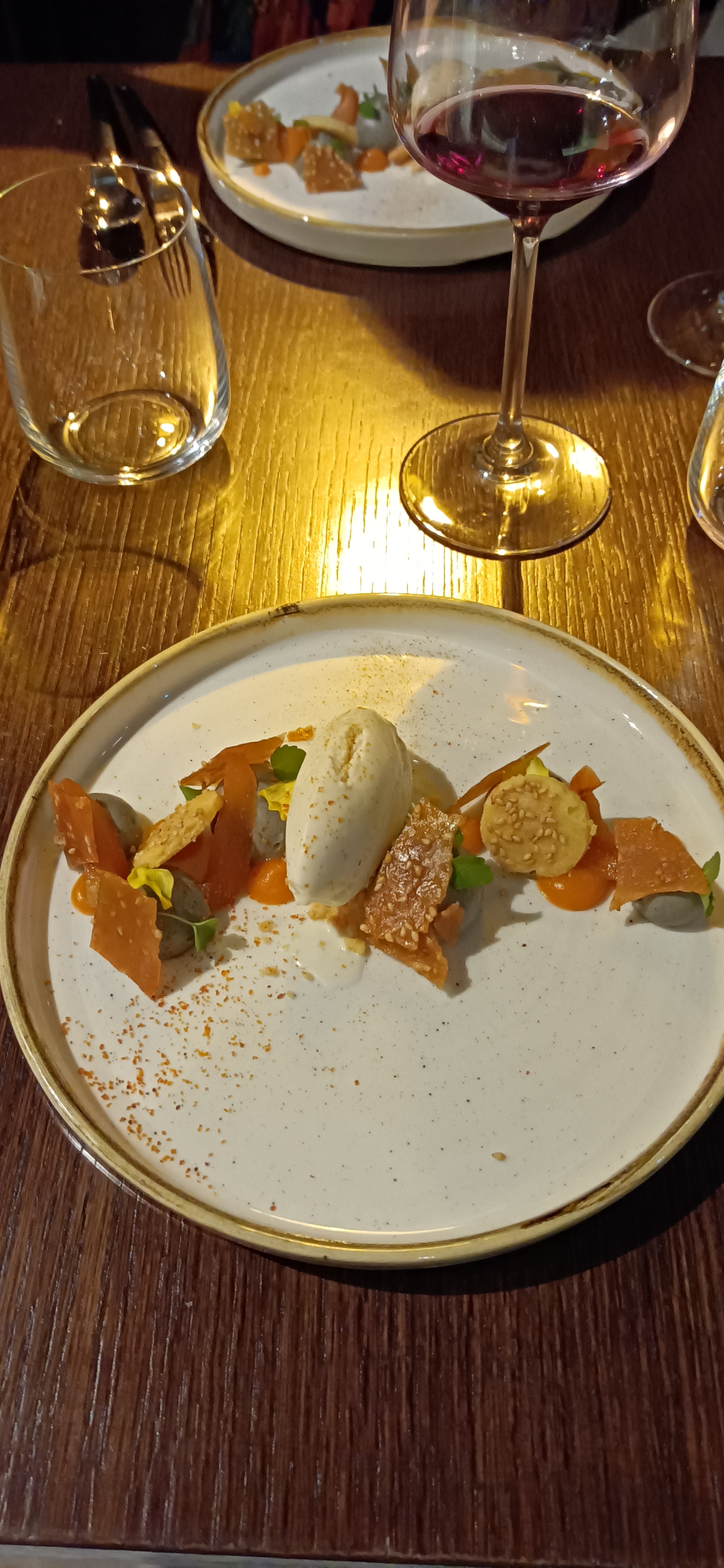 Des mélanges de saveurs, pleins de surprises dans la bouche 😃 La sauce du plat principal est un peu salée, j’en ai pas mis beaucoup. Le reste est vraiment parfait. Je vous le recommande !