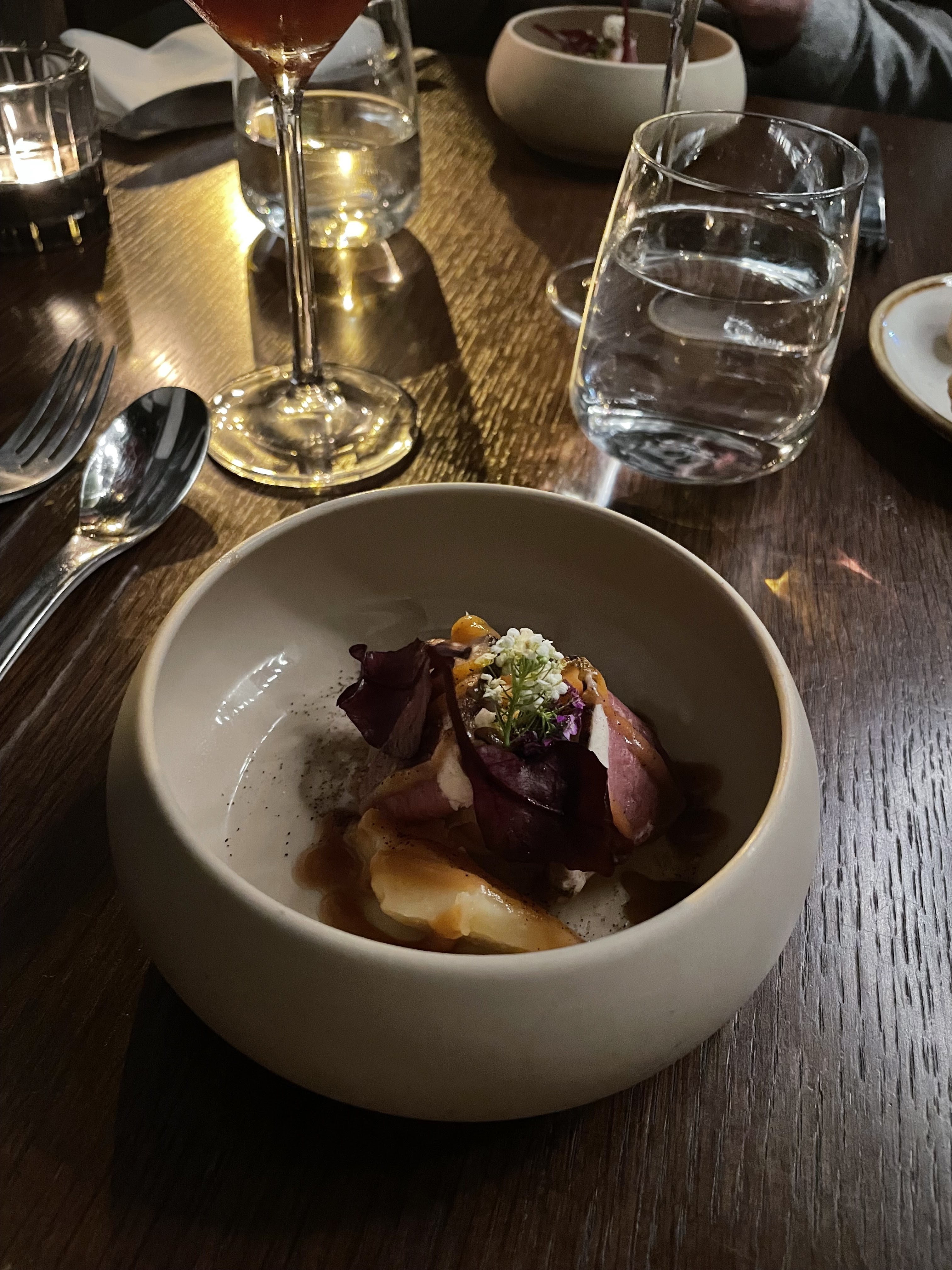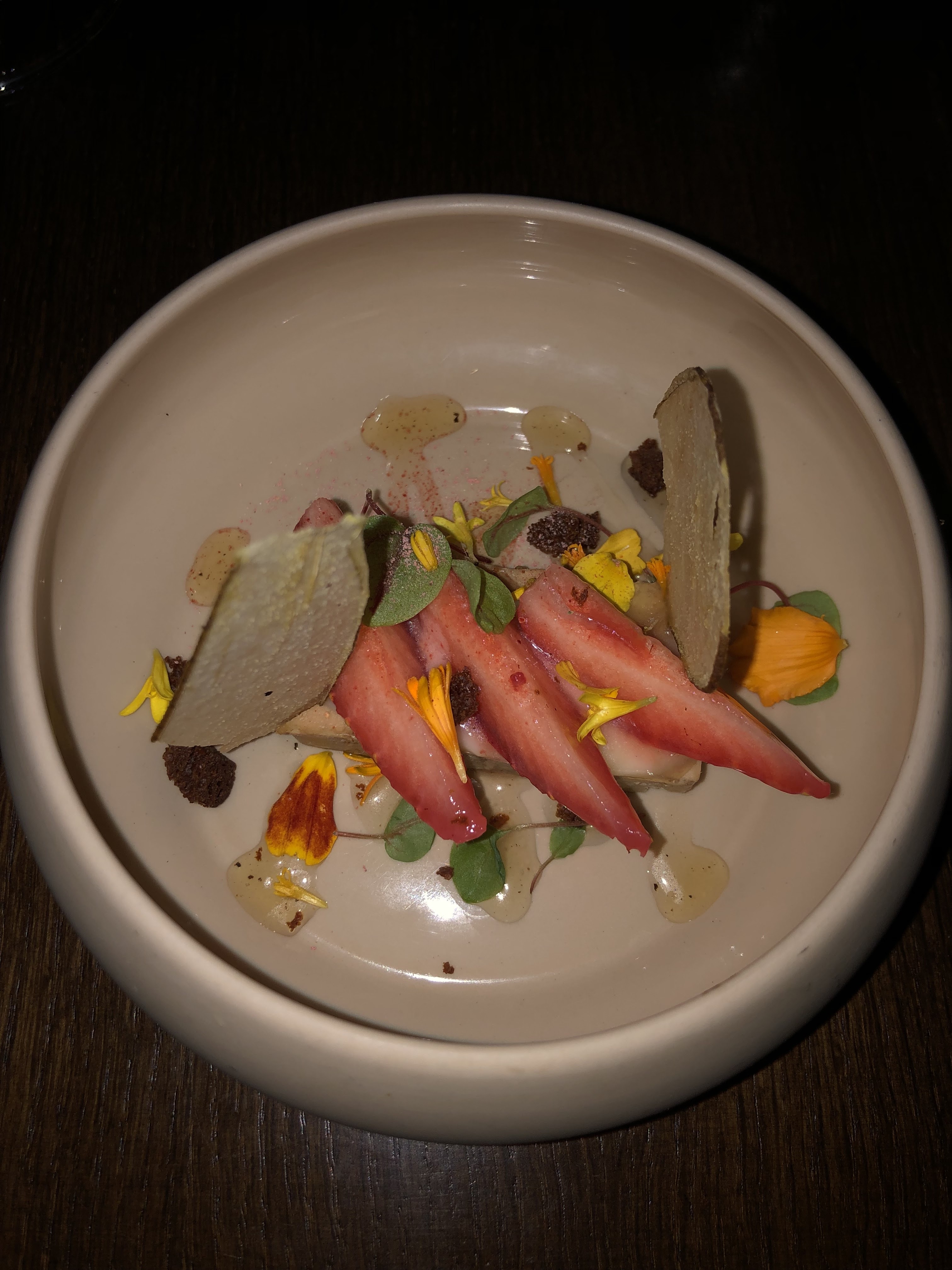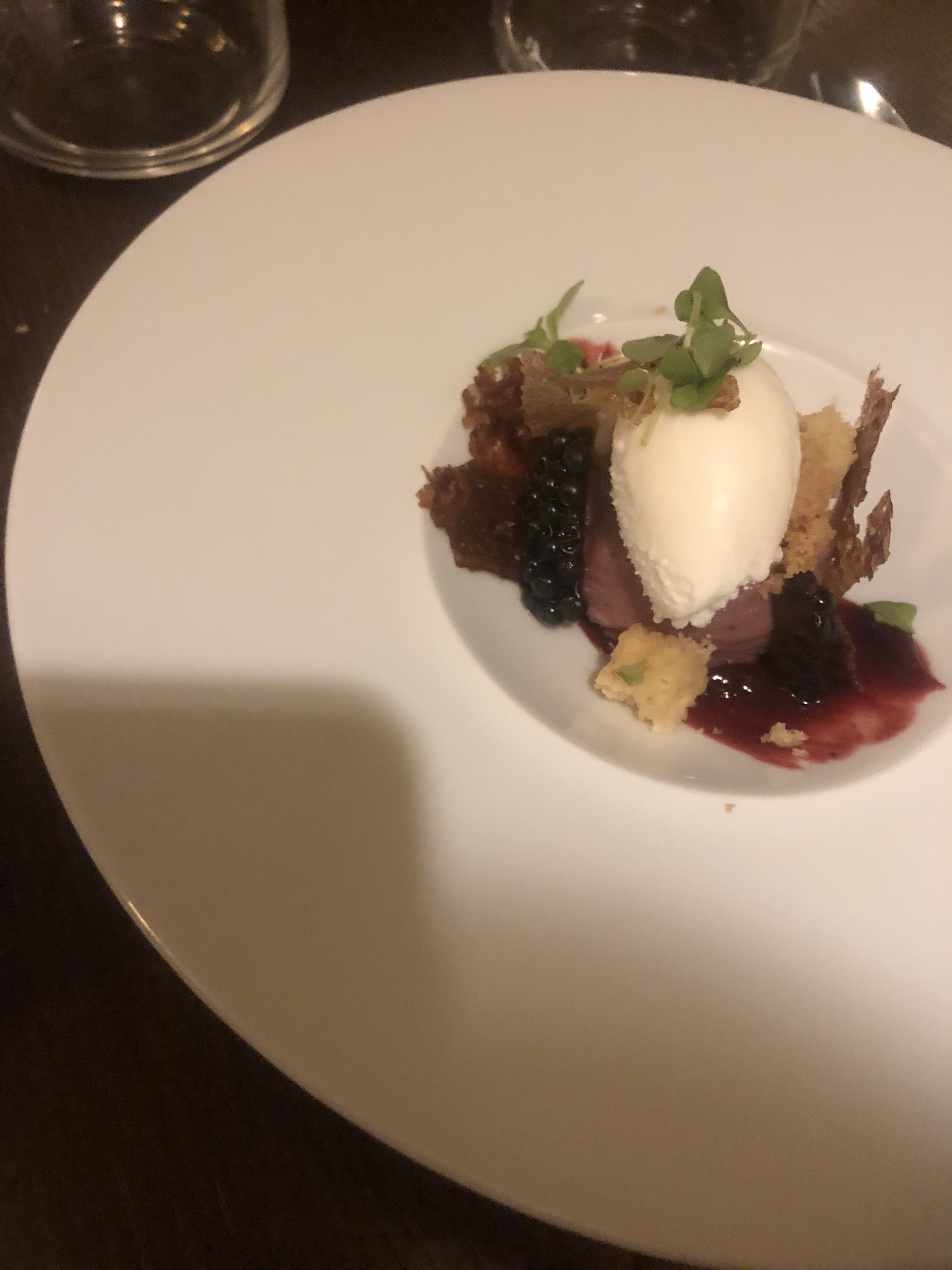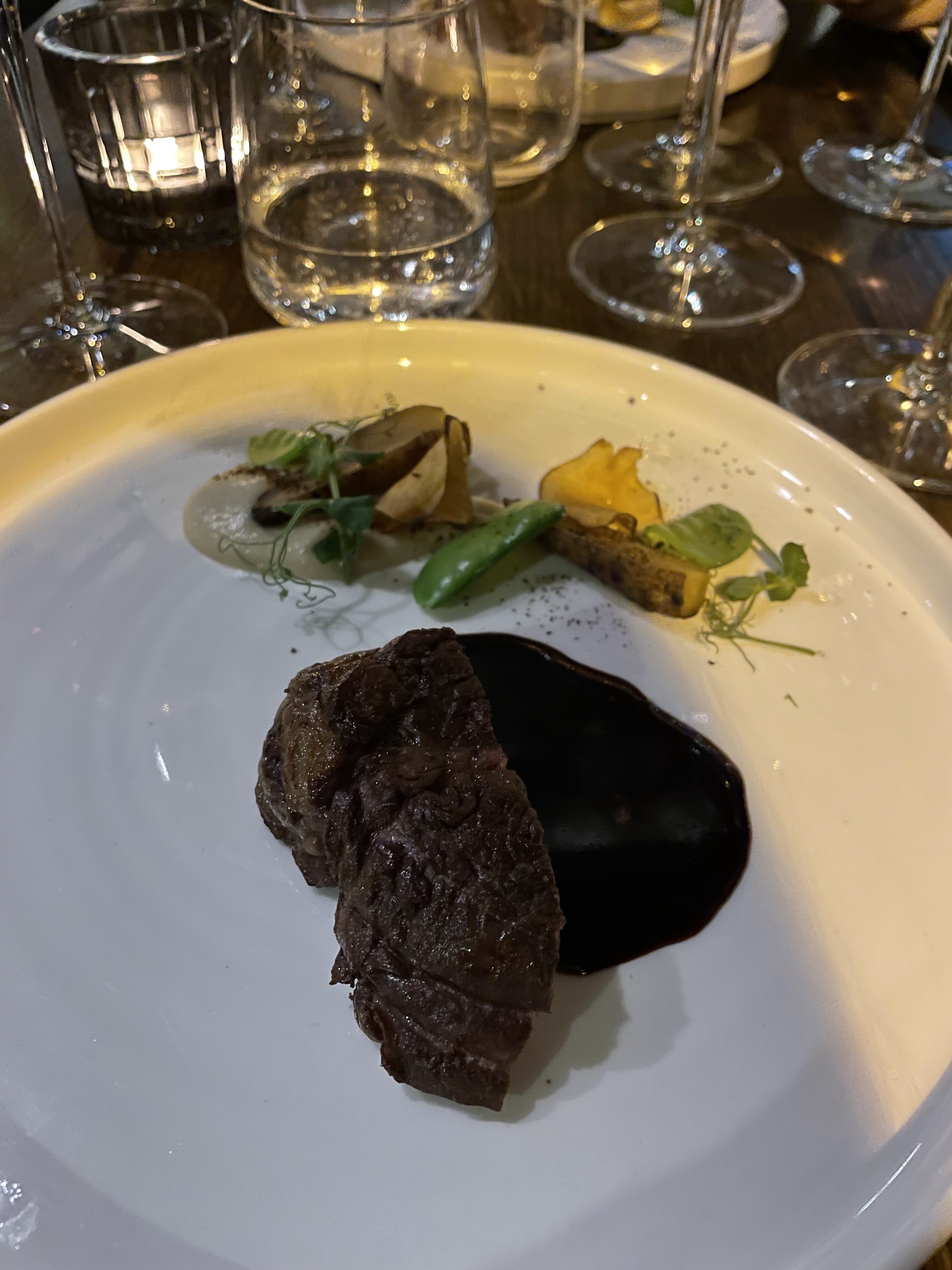 Superbe dîner dans ce restaurant aux lumières tamisées. Nous avions pris le menu 7 services qui était excellent : surprenant, très fin, cuissons parfaites ! Seul bémol : 40 minutes d'attente pour le premier plat, et beaucoup d'attente entre les services, jusqu'à ce que notre charmant serveur (Edan ?) s'arrange pour accélérer les derniers services (baby sitter oblige...), un grand merci